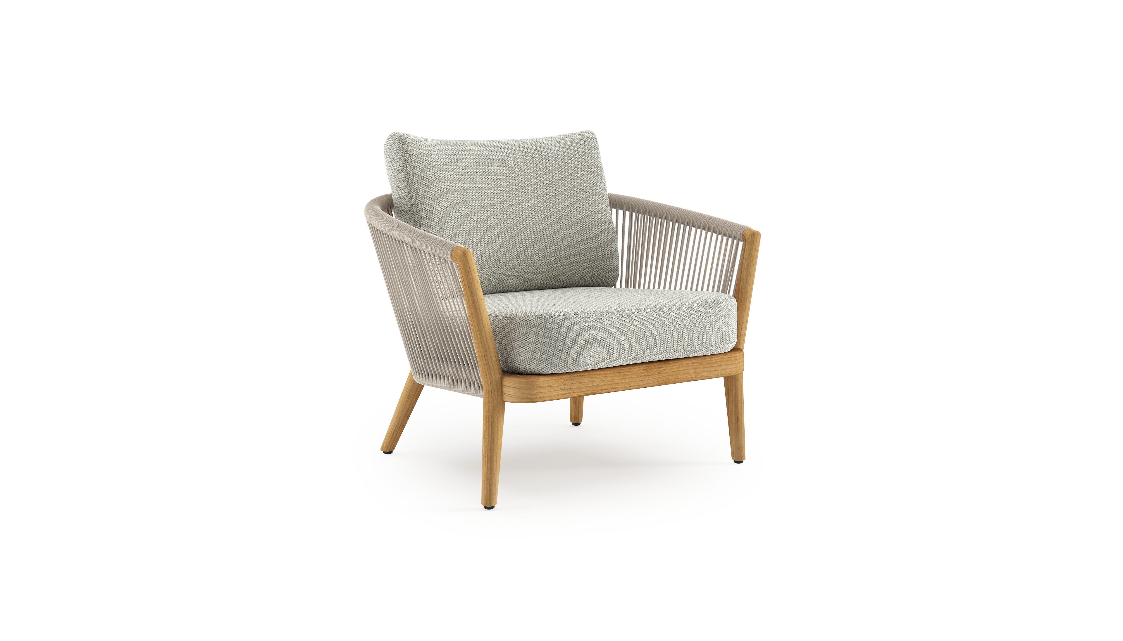 Fauteuil de jardin Orso en tecken corde ronde tissée verticalement beige et coussins en all weather sunbrella® luxe Lopi Bud | Exterioo mobilier de jardin