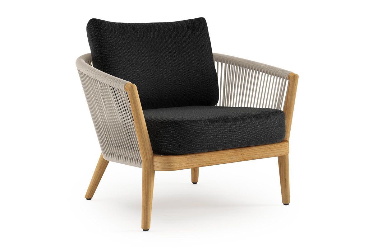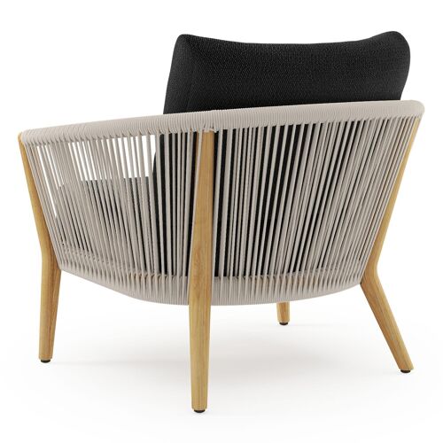Fauteuil de jardin Orso en tecken corde ronde tissée verticalement beige et coussins en all weather sunbrella® luxe Lopi Baribal | Exterioo