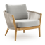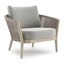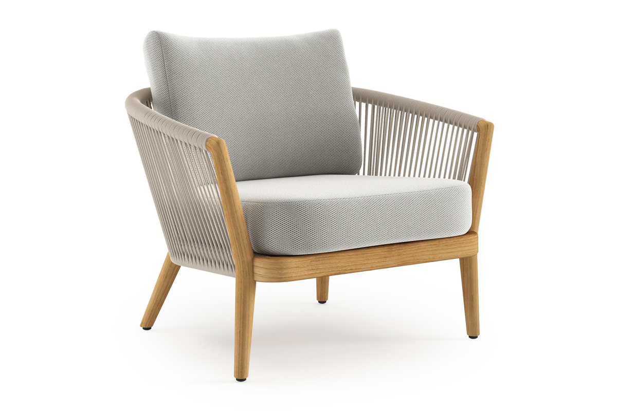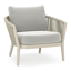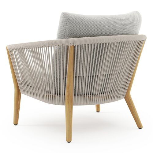 Fauteuil de jardin Orso en tecken corde ronde tissée verticalement beige et coussins en all weather sunbrella® luxe Lopi Ash | Exterioo