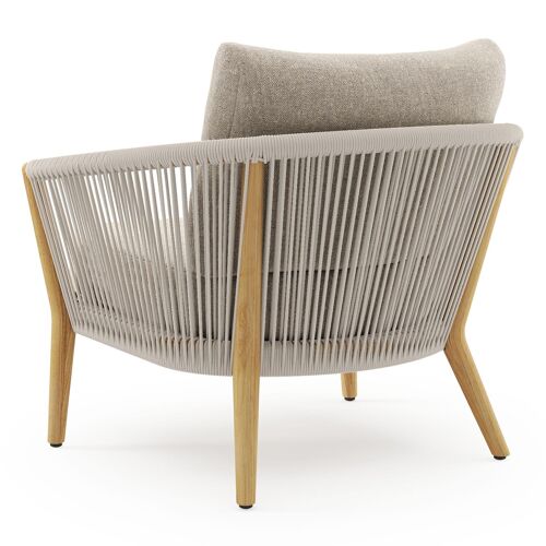 Fauteuil de jardin Orso en tecken corde ronde tissée verticalement beige et coussins en all weather sunbrella® luxe Chartres Pewter | Exterioo