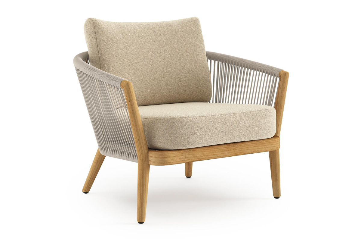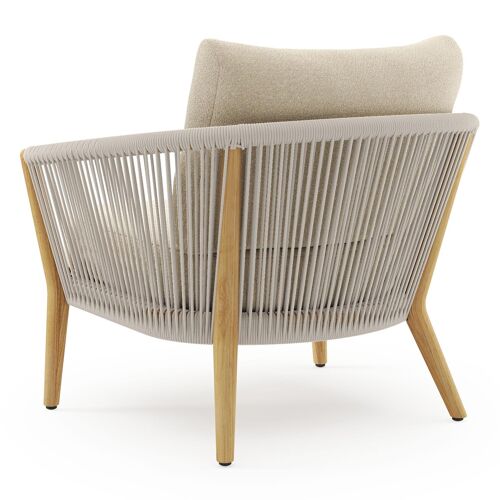 Fauteuil de jardin Orso en tecken corde ronde tissée verticalement beige et coussins en all weather solica Soul Papyrus | Exterioo