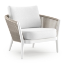 Fauteuil de jardin Orso en tecken corde ronde tissée verticalement beige et coussins en all weather solica Ego Birch | Exterioo mobilier de jardin