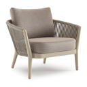 Fauteuil de jardin Orso en aluminium vert en corde ronde tissée verticalement vert et coussins en all weather sunbrella® luxe Wander Manioc | Exterioo mobilier de jardin