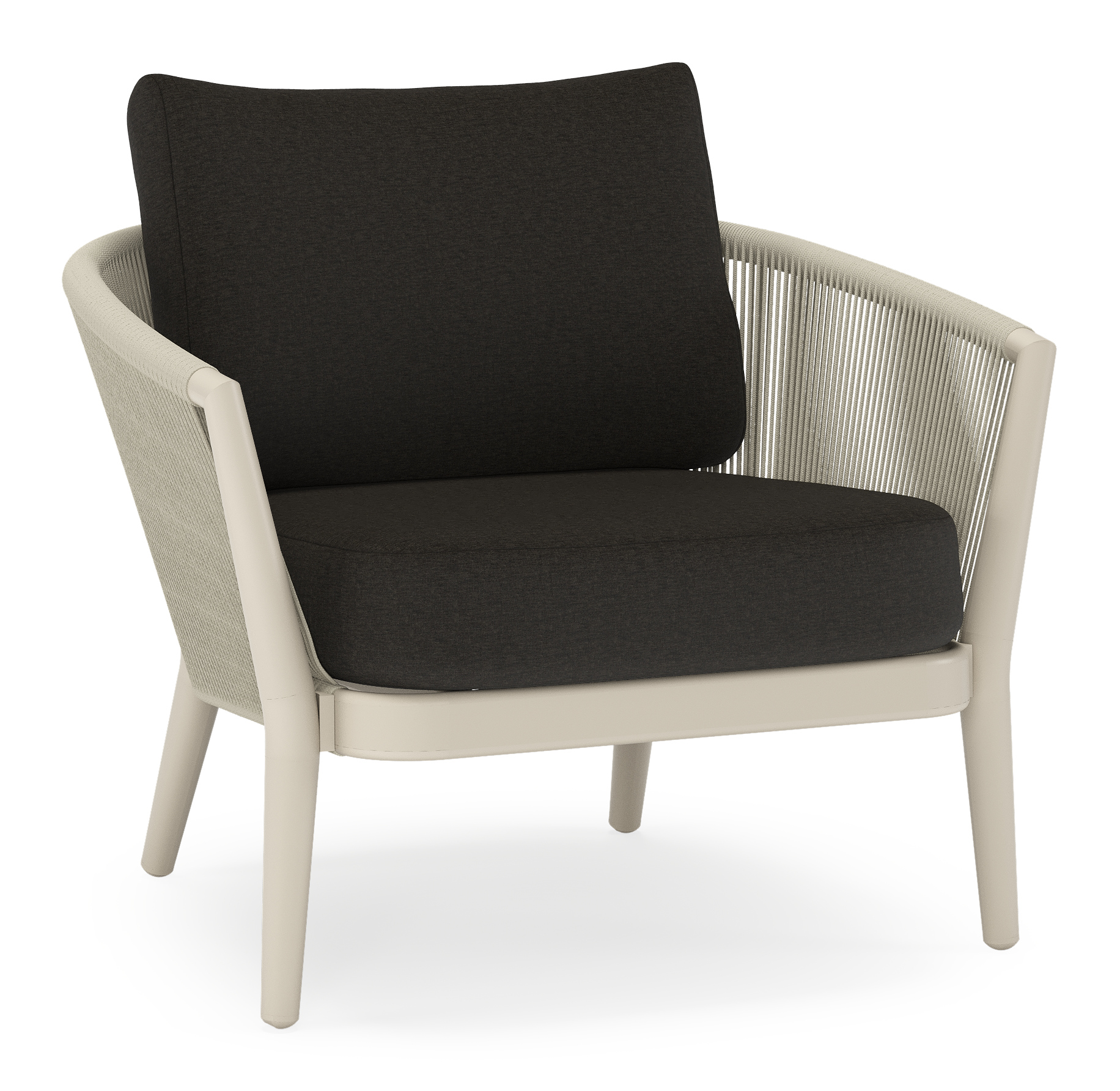Fauteuil de jardin Orso en aluminium beige en corde ronde tissée verticalement beige et coussins en all weather sunbrella® luxe Heritage char | Exterioo mobilier de jardin