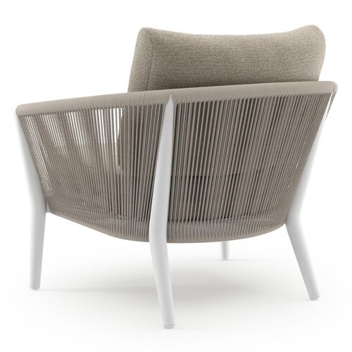 Fauteuil de jardin Orso en aluminium blanc en corde ronde tissée verticalement beige et coussins en all weather cosytica Catania Sand | Exterioo