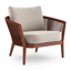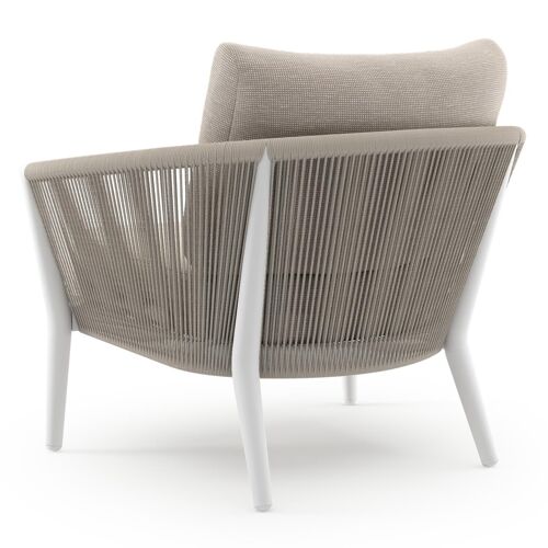 Fauteuil de jardin Orso en aluminium blanc en corde ronde tissée verticalement beige et coussins en all weather sunbrella® luxe Slow Farafra | Exterioo