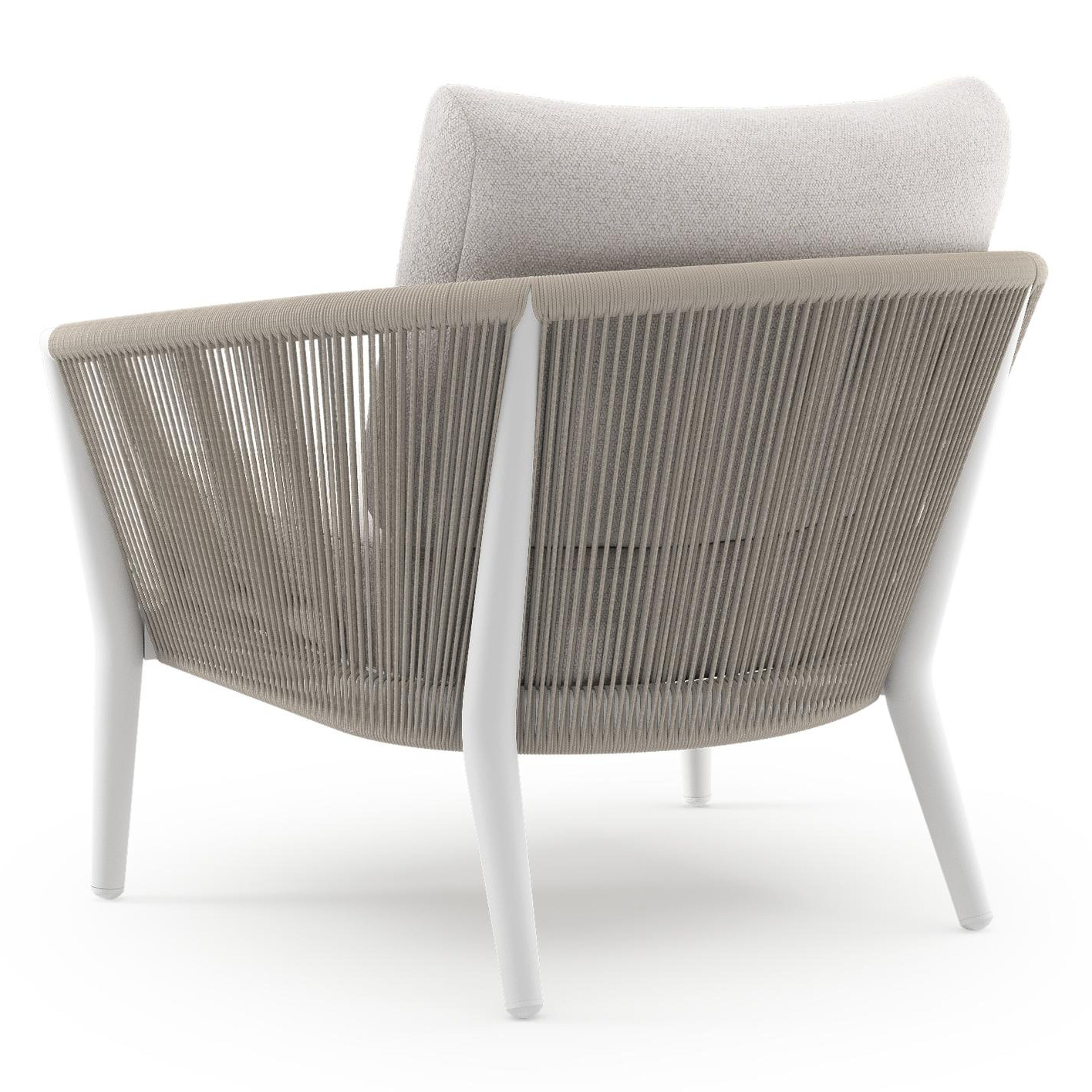 Fauteuil de jardin Orso en aluminium blanc en corde ronde tissée verticalement beige et coussins en all weather solica Ego Eggshell | Exterioo mobilier de jardin