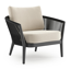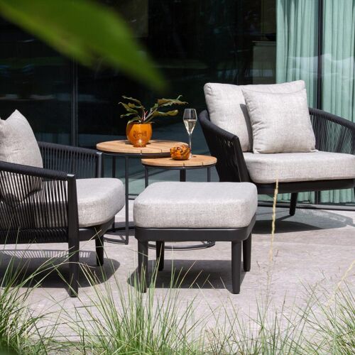 Fauteuil de jardin Orso en aluminium noir en corde ronde tissée verticalement noir et coussins en all weather cosytica Althea Off White | Exterioo