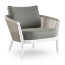 Fauteuil de jardin Orso en aluminium noir en corde ronde tissée verticalement noir et coussins en all weather sunbrella® luxe Slow Fern | Exterioo mobilier de jardin