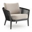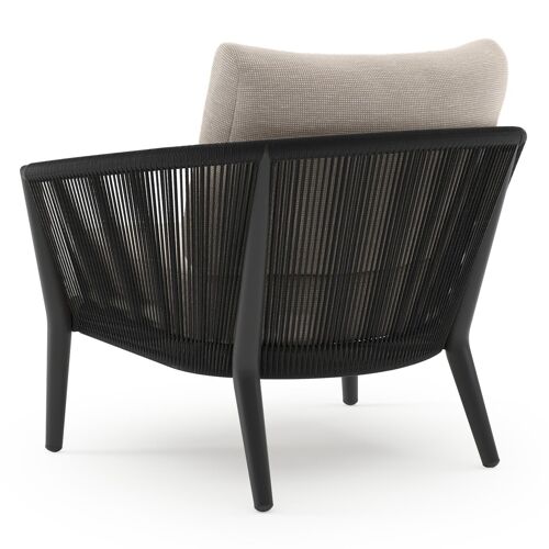 Fauteuil de jardin Orso en aluminium noir en corde ronde tissée verticalement noir et coussins en all weather sunbrella® luxe Slow Farafra | Exterioo