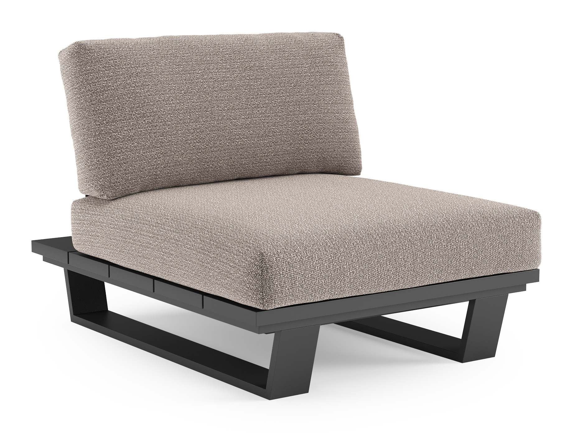 Fauteuil de jardin Pagino en aluminium noir et coussins en all weather sunbrella® luxe wander granite | Exterioo mobilier de jardin
