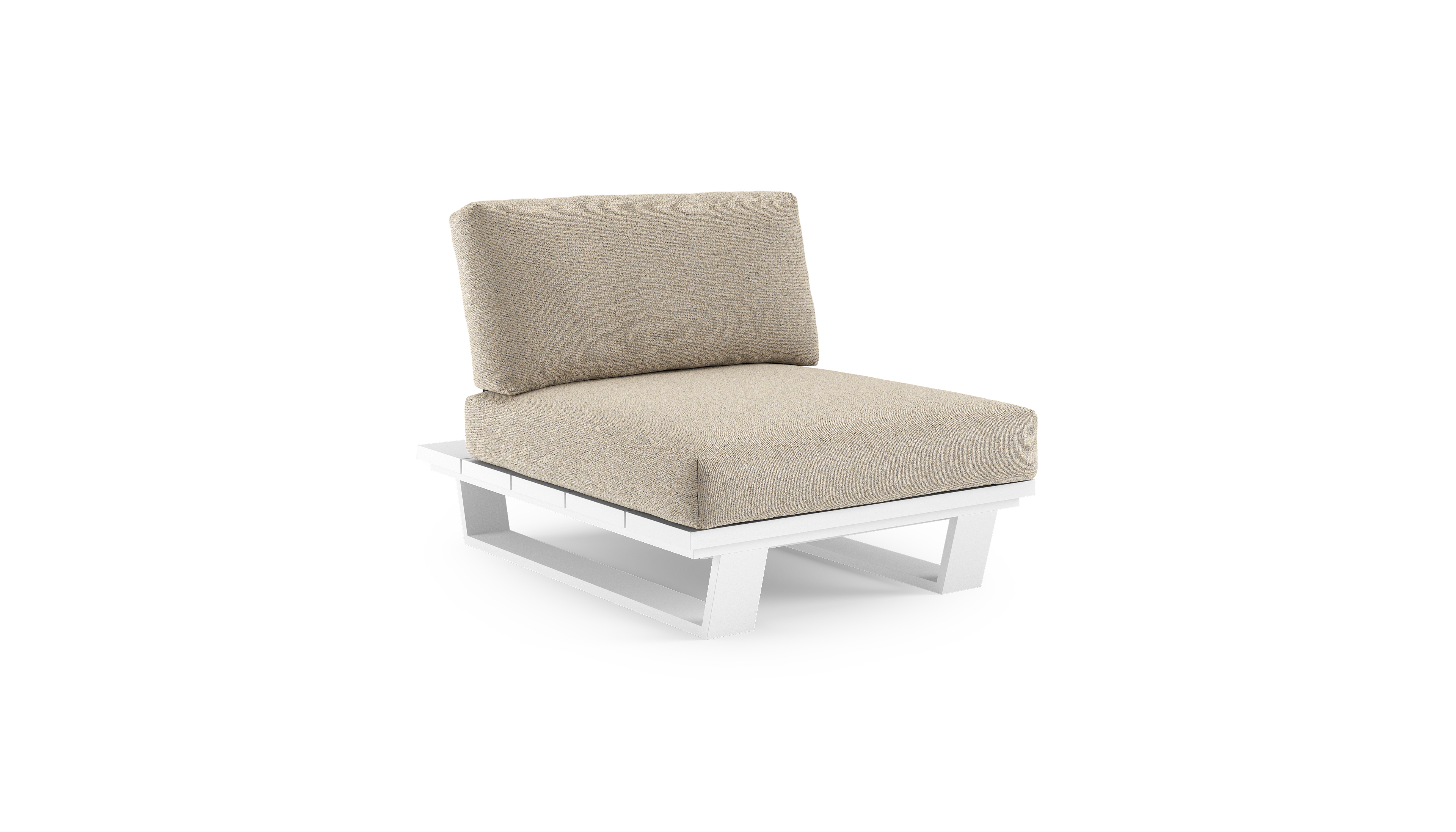 Fauteuil de jardin Pagino en aluminium blanc et coussins en all weather cosytica marbella beige | Exterioo mobilier de jardin