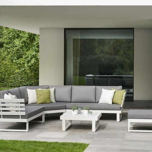 Fauteuil de jardin Rosarno pièce intermédiaire en aluminium blanc avec coussin en weather+ softtouch gris | Exterioo