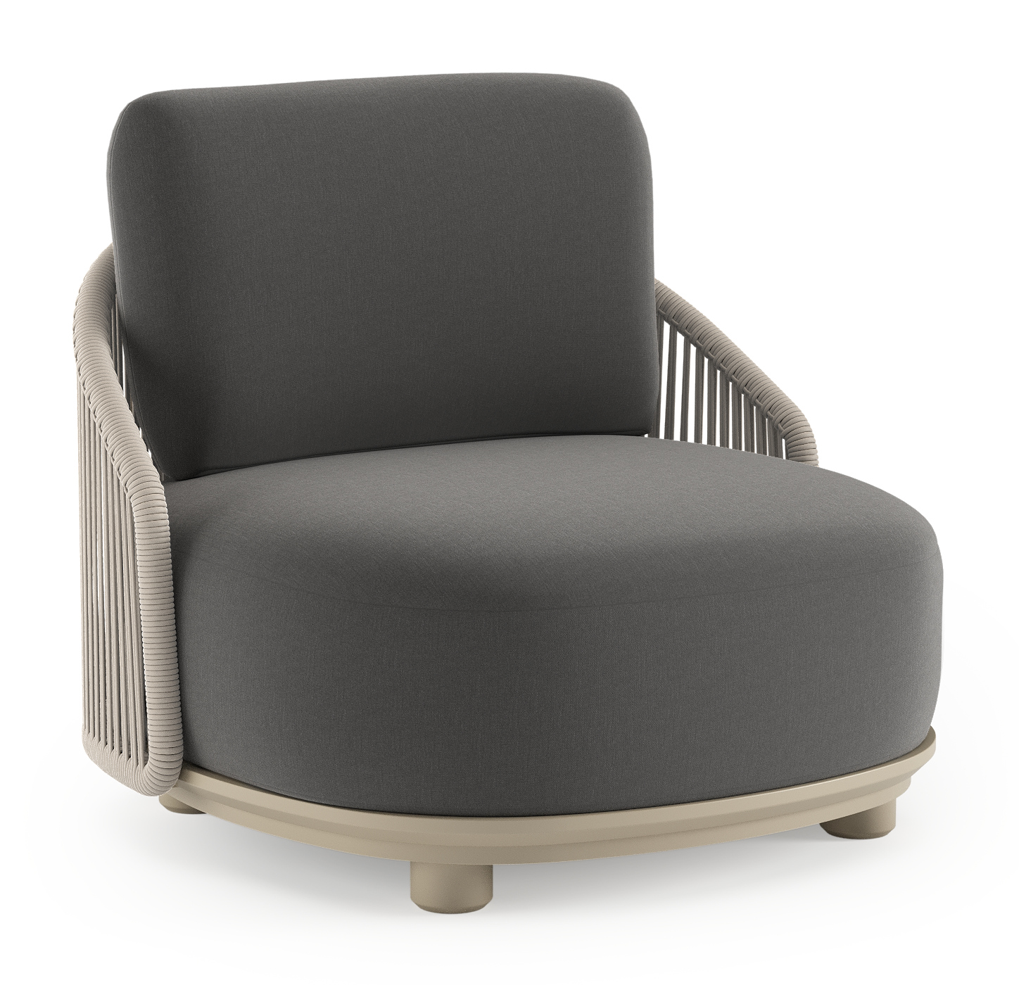 Fauteuil de jardin Vadelo en aluminium beige et corde ronde tissée verticalement beige et coussins en all weather sunbrella® luxe natte charcoal chine | Exterioo mobilier de jardin
