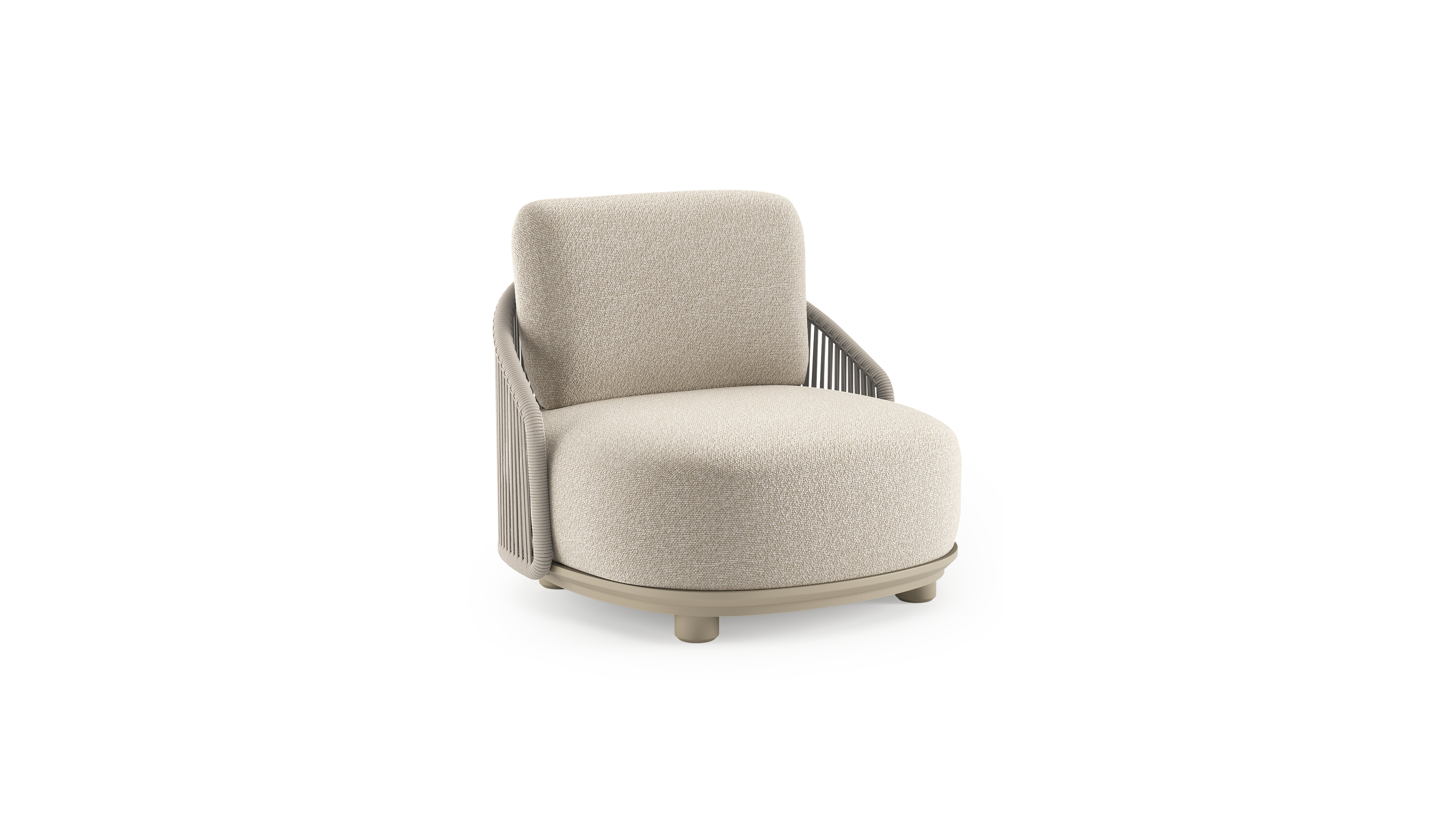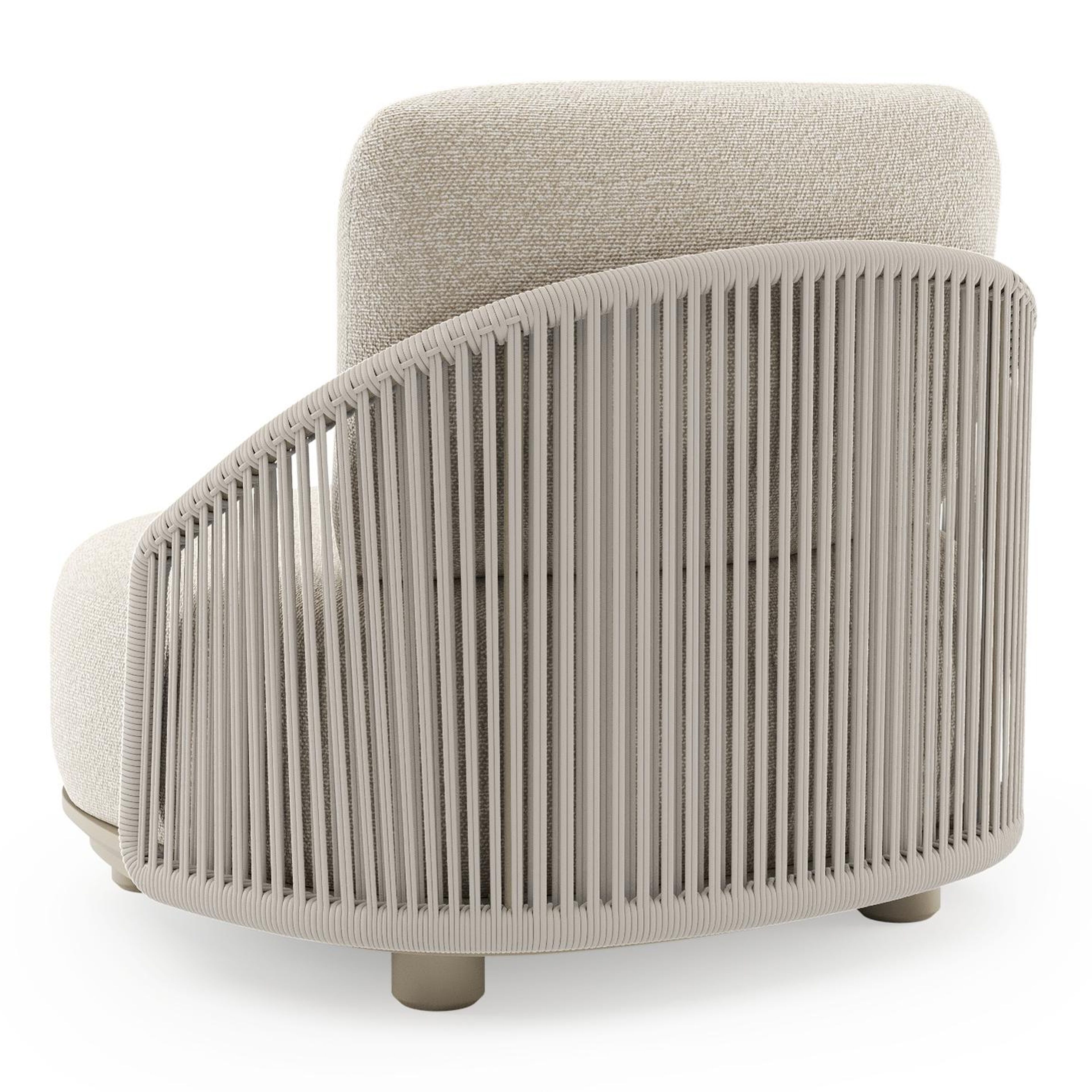 Fauteuil de jardin Vadelo en aluminium beige et corde ronde tissée verticalement beige et coussins en all weather cosytica marbella ecru | Exterioo mobilier de jardin