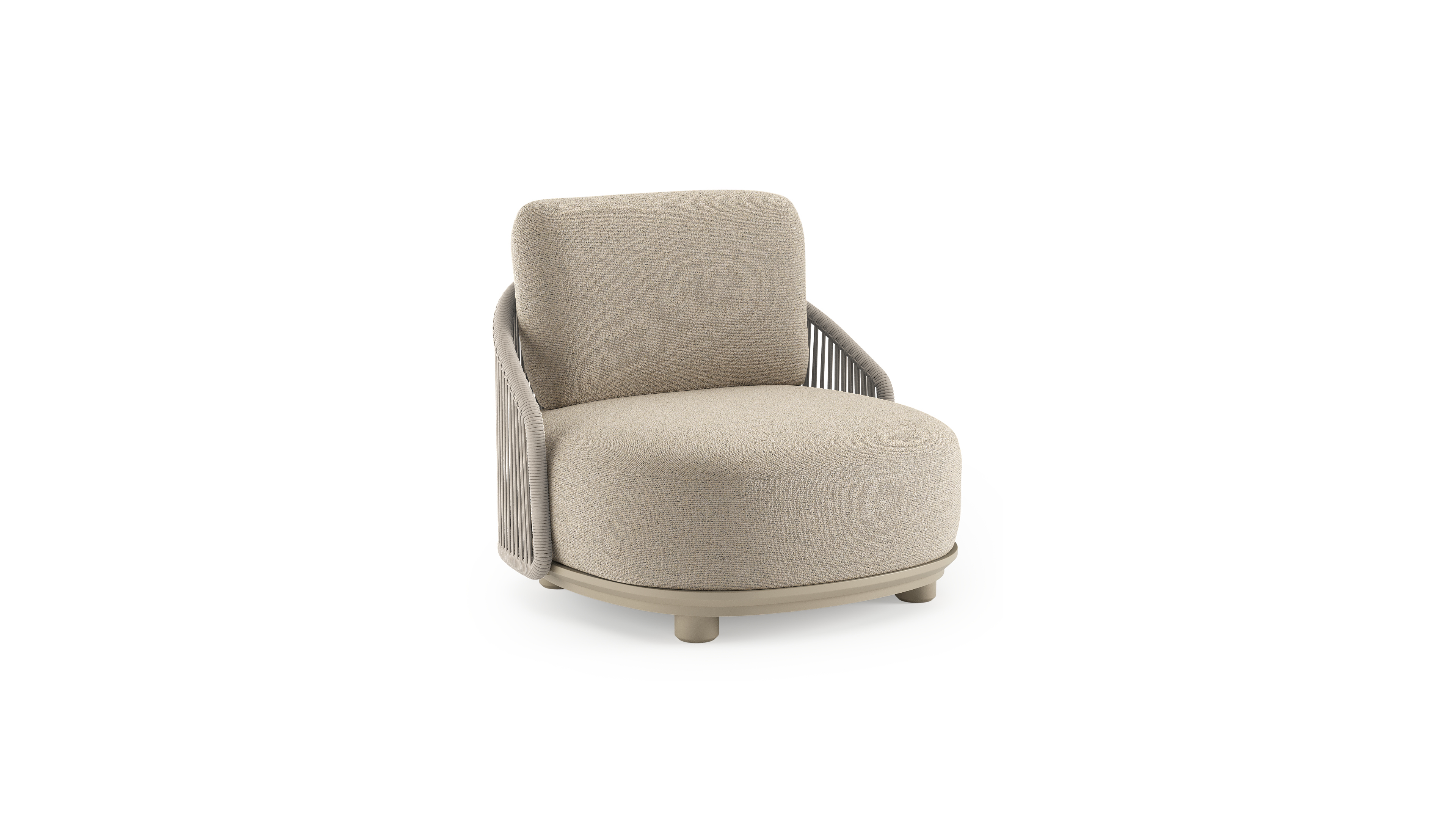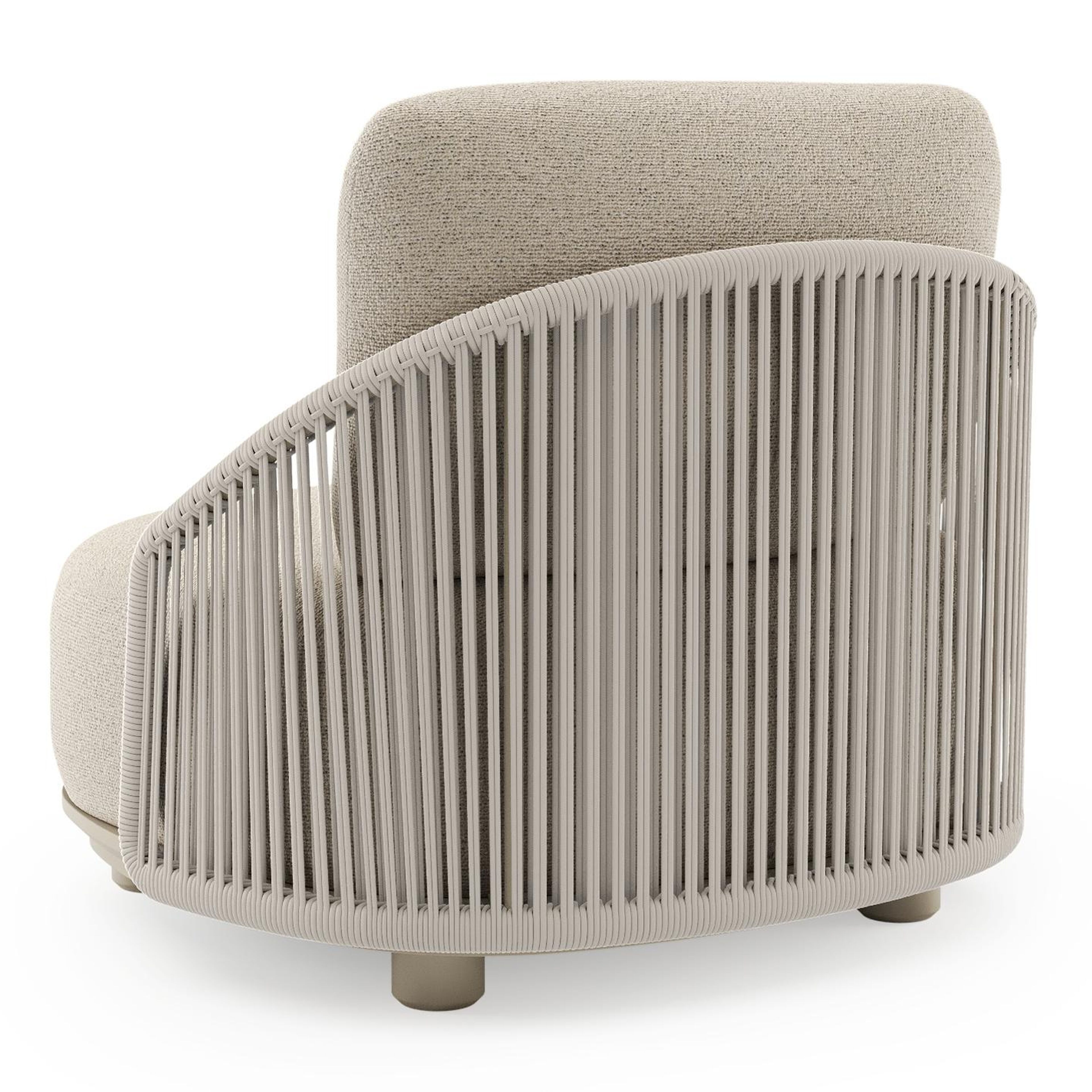 Fauteuil de jardin Vadelo en aluminium beige et corde ronde tissée verticalement beige et coussins en all weather cosytica marbella beige | Exterioo mobilier de jardin