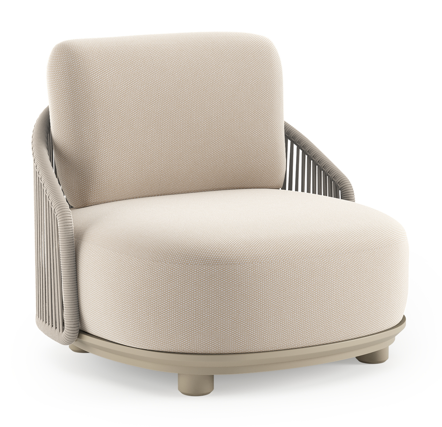 Fauteuil de jardin Vadelo en aluminium beige et corde ronde tissée verticalement beige et coussins en all weather sunbrella® luxe lopi antique | Exterioo mobilier de jardin