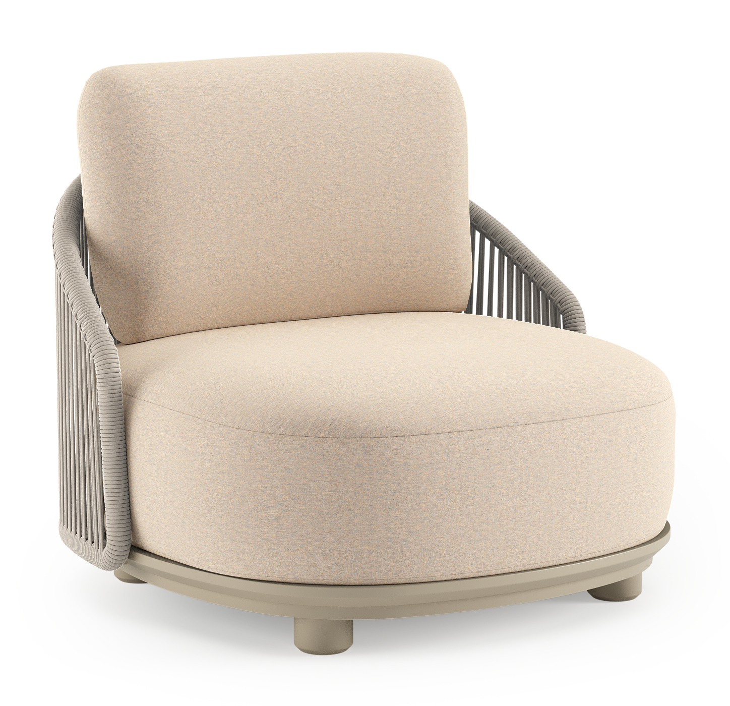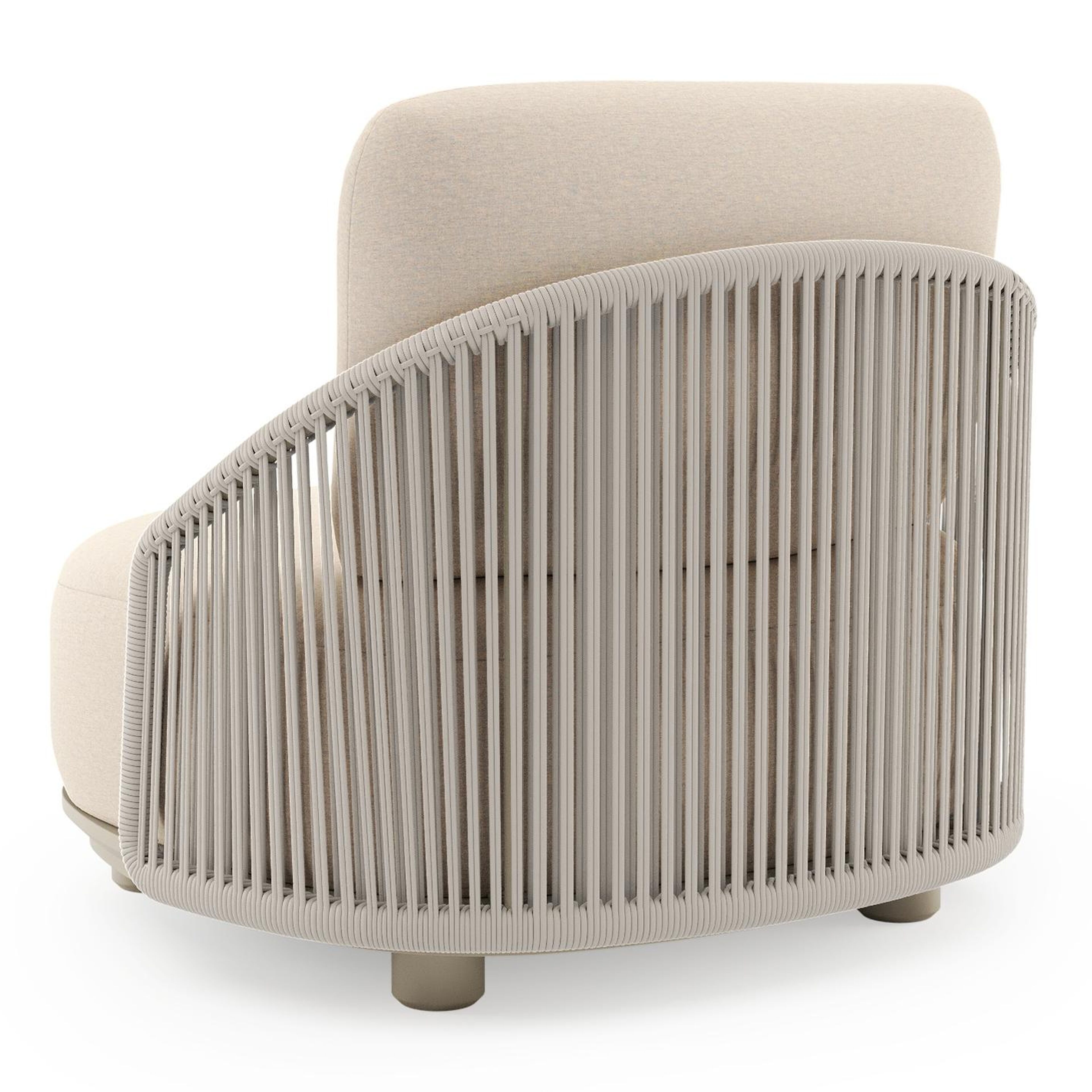 Fauteuil de jardin Vadelo en aluminium beige et corde ronde tissée verticalement beige et coussins en all weather sunbrella® luxe heritage papyrus | Exterioo mobilier de jardin