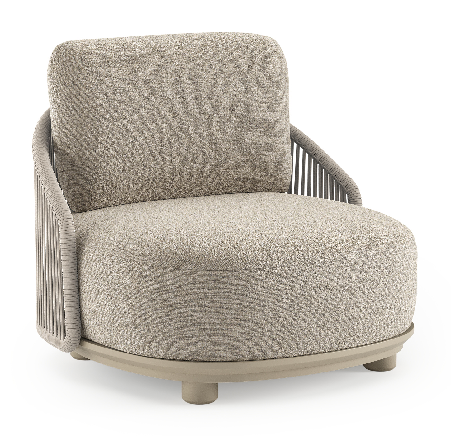Fauteuil de jardin Vadelo en aluminium beige et corde ronde tissée verticalement beige et coussins en all weather cosytica catania sand | Exterioo mobilier de jardin