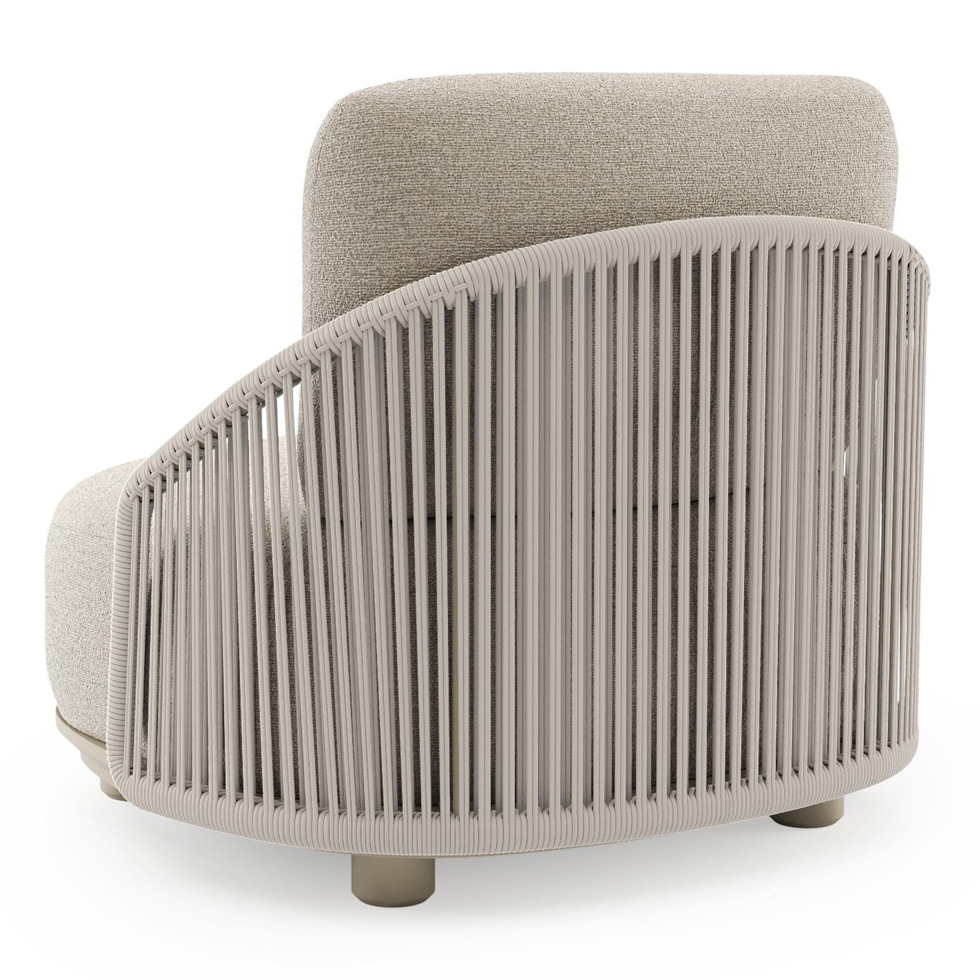 Fauteuil de jardin Vadelo en aluminium beige et corde ronde tissée verticalement beige et coussins en all weather cosytica catania greige | Exterioo mobilier de jardin