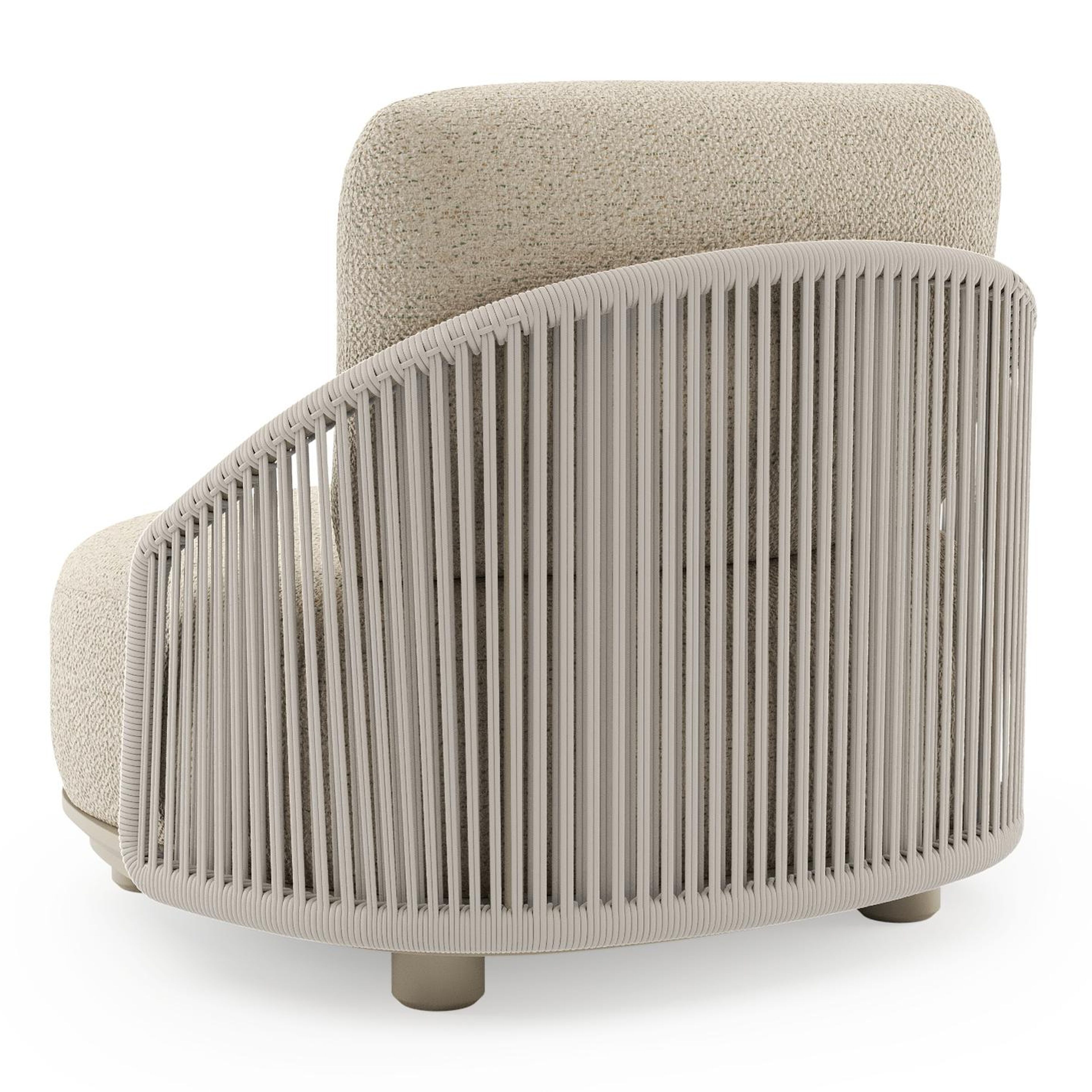 Fauteuil de jardin Vadelo en aluminium beige et corde ronde tissée verticalement beige et coussins en all weather cosytica bora forest | Exterioo mobilier de jardin