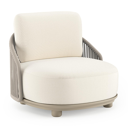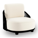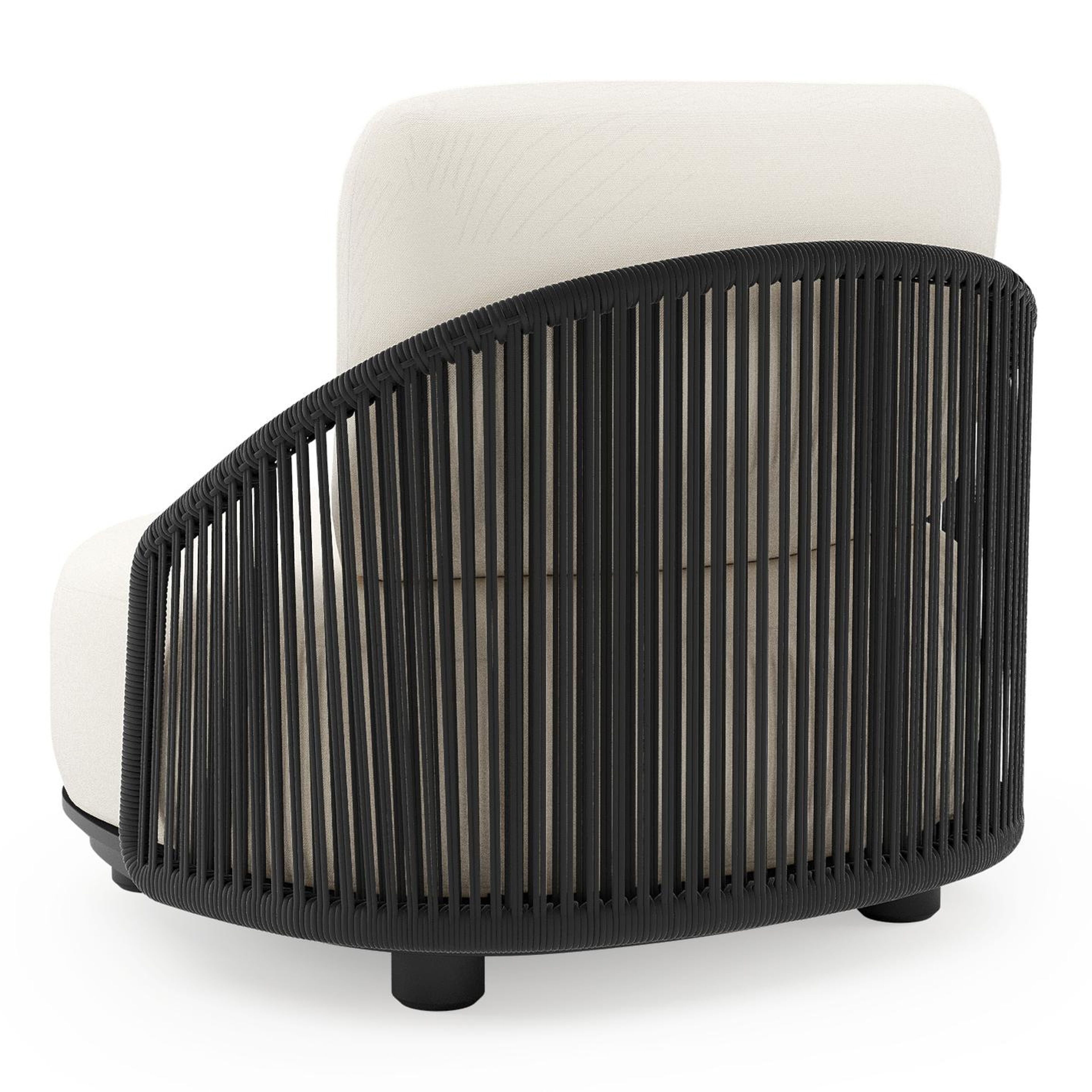 Fauteuil de jardin Vadelo en aluminium noir et corde ronde tissée verticalement noir et coussins en all weather sunbrella® luxe natte white | Exterioo mobilier de jardin