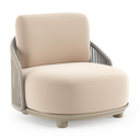 Fauteuil de jardin Vadelo en aluminium noir et corde ronde tissée verticalement noir et coussins en all weather sunbrella® luxe natte linen chalk | Exterioo mobilier de jardin