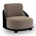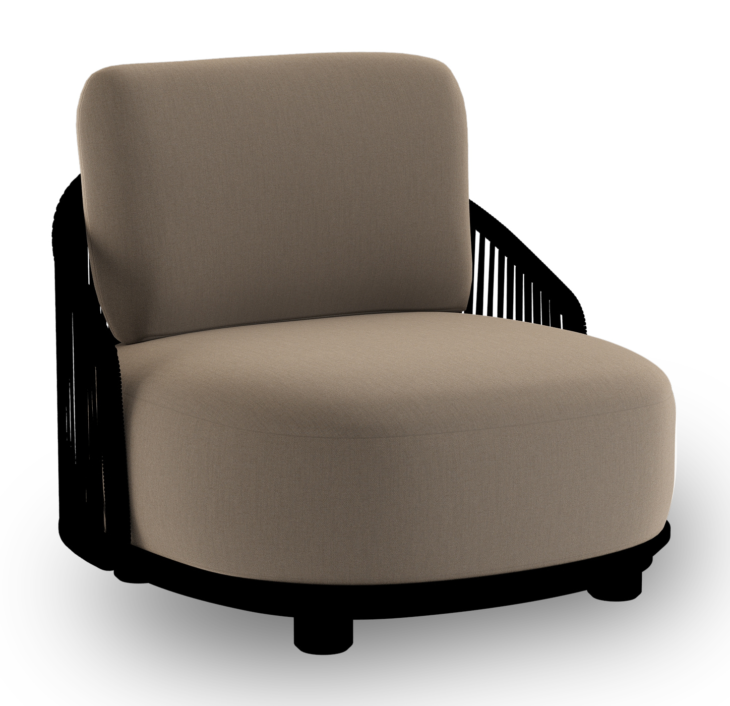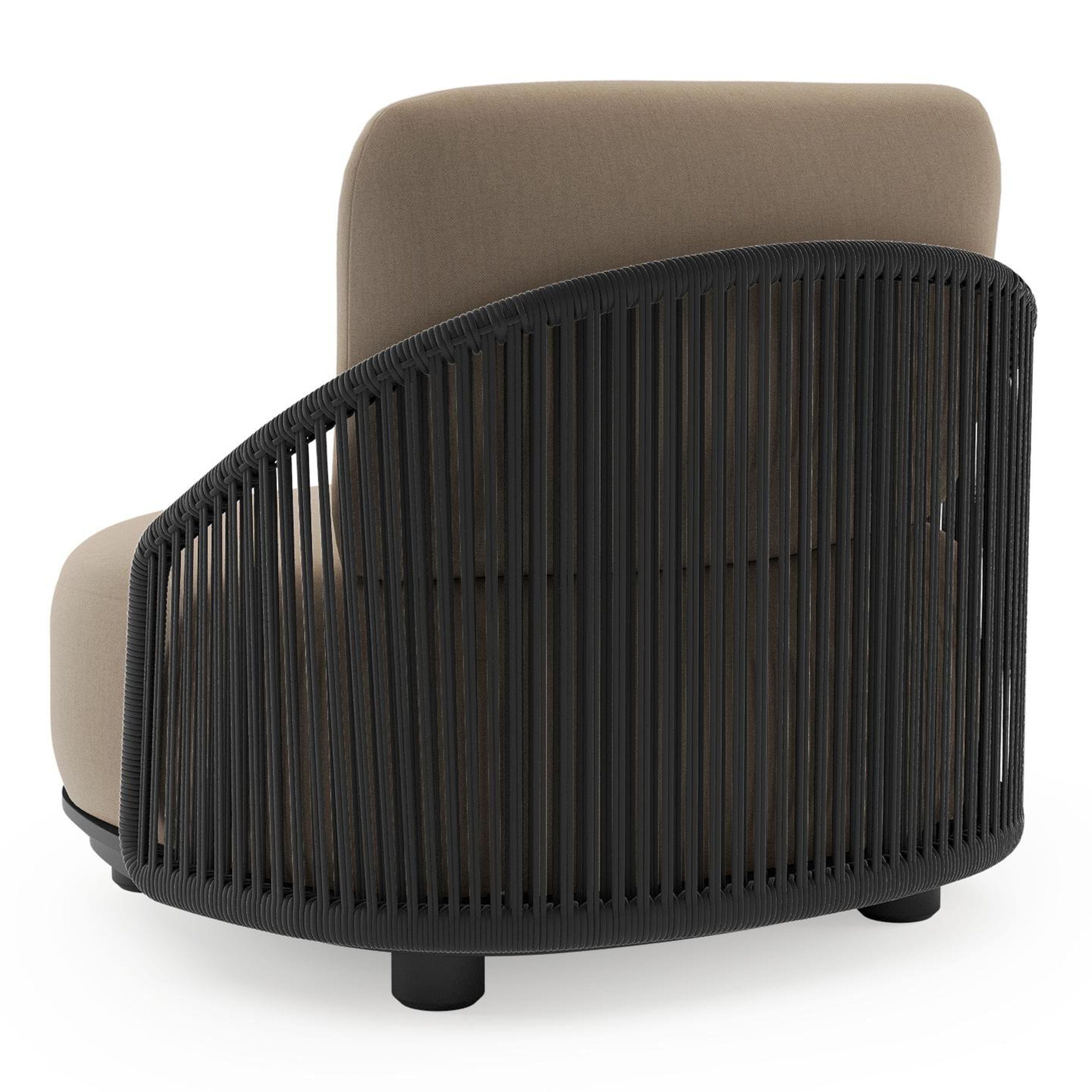 Fauteuil de jardin Vadelo en aluminium noir et corde ronde tissée verticalement noir et coussins en all weather sunbrella® luxe natte heather grey | Exterioo mobilier de jardin