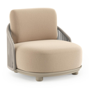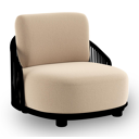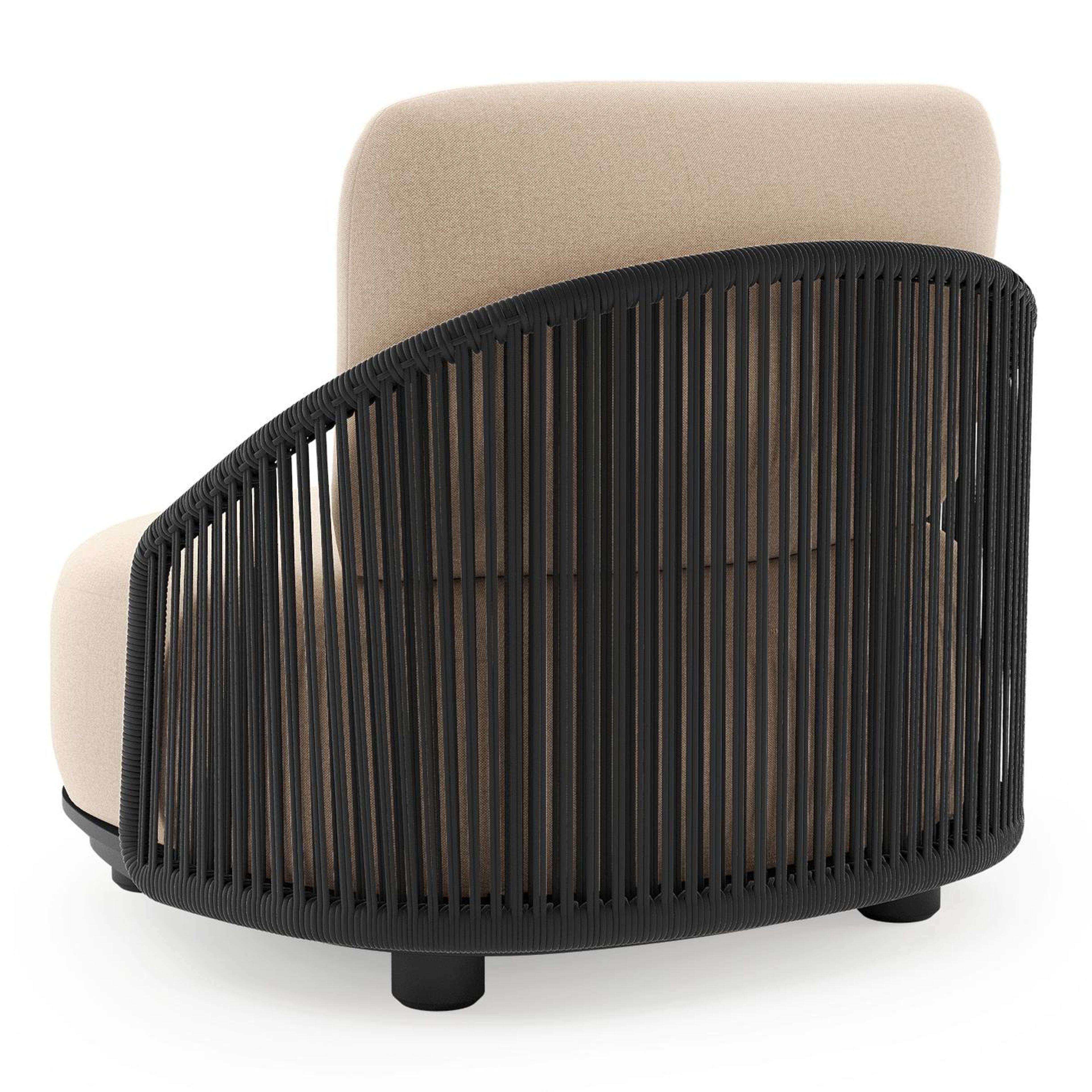 Fauteuil de jardin Vadelo en aluminium noir et corde ronde tissée verticalement noir et coussins en all weather sunbrella® luxe natte heather beige | Exterioo mobilier de jardin