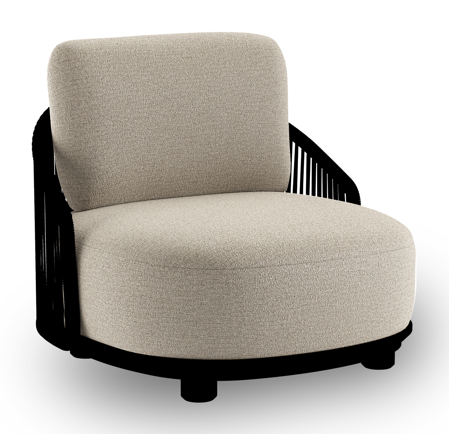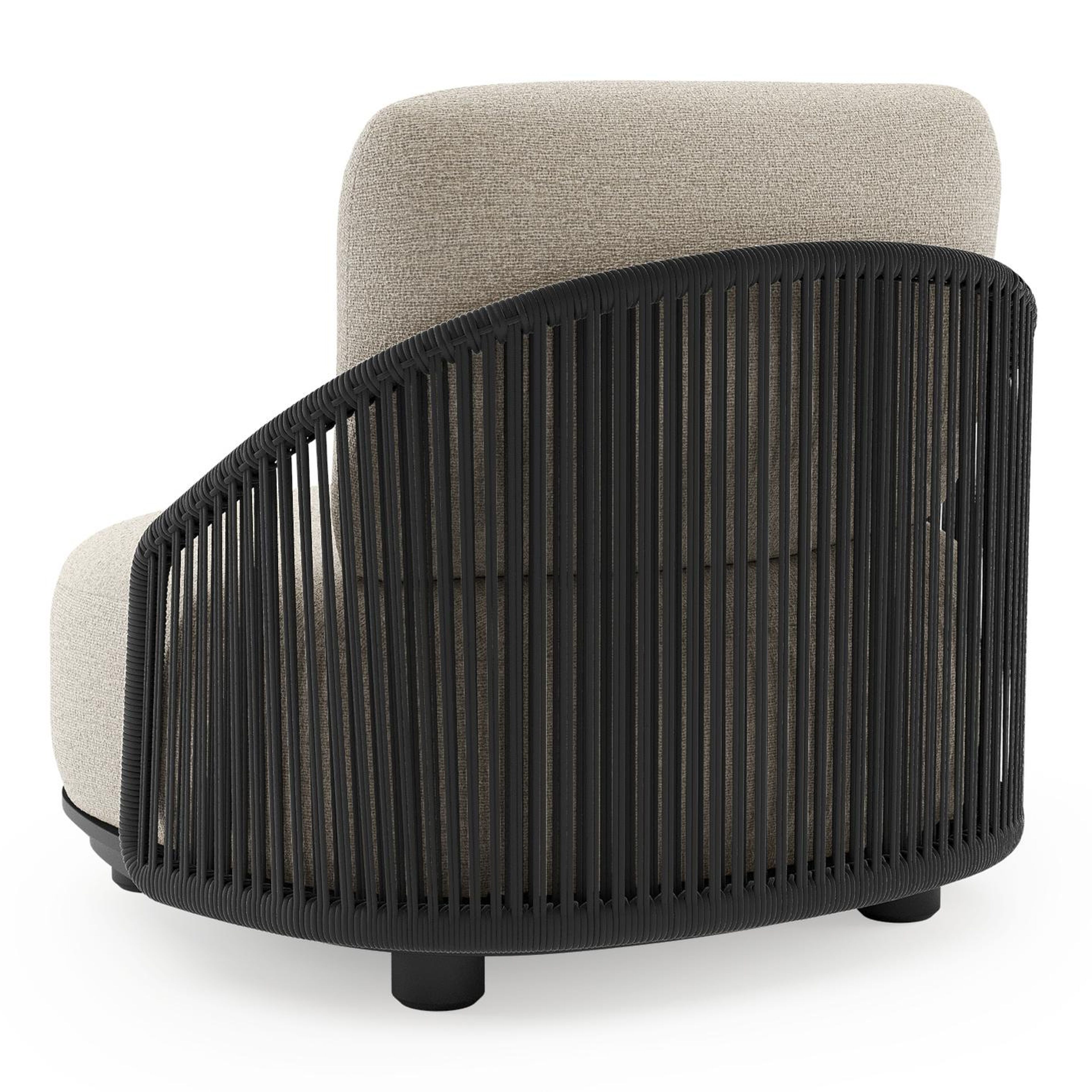 Fauteuil de jardin Vadelo en aluminium noir et corde ronde tissée verticalement noir et coussins en all weather cosytica catania sand | Exterioo mobilier de jardin