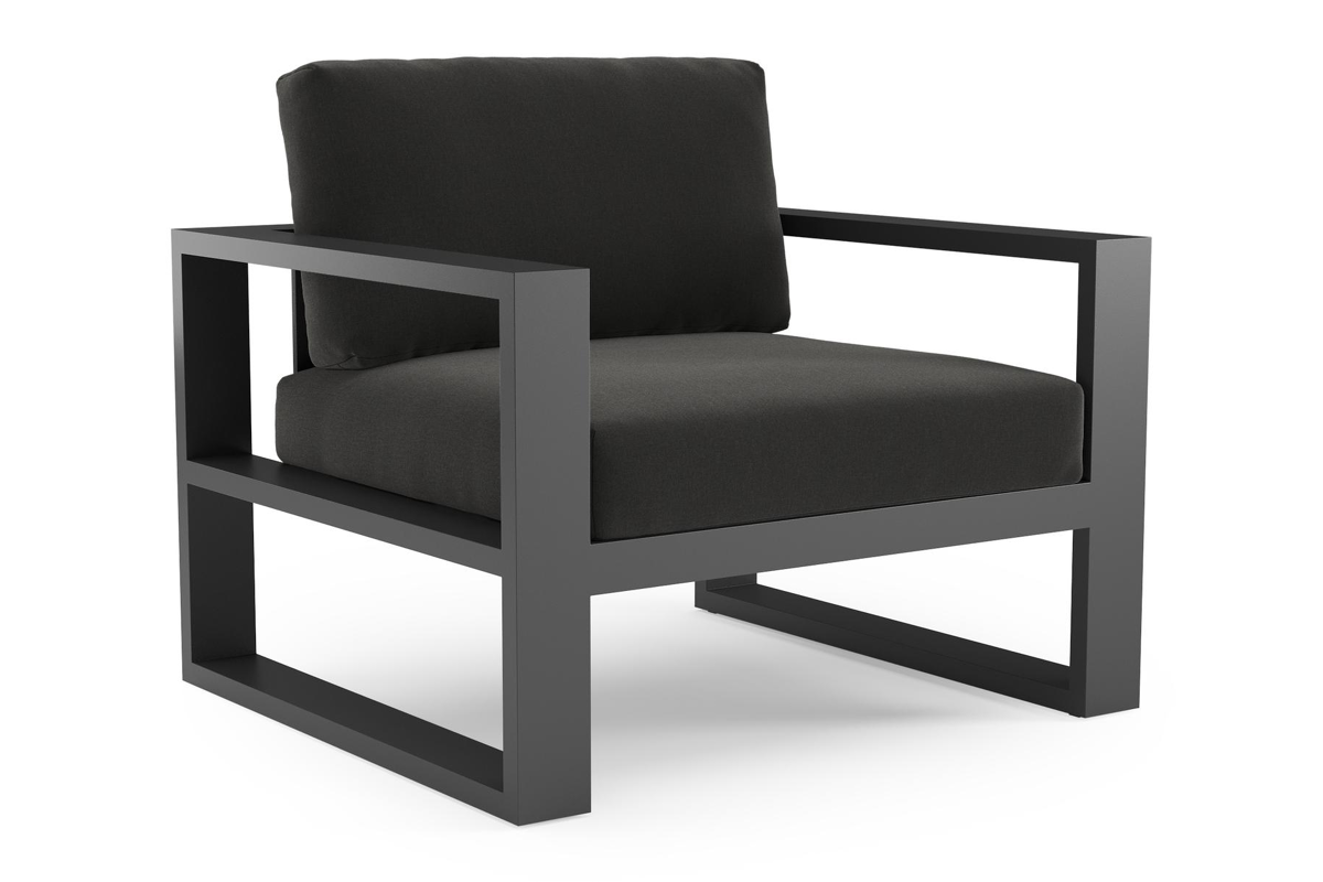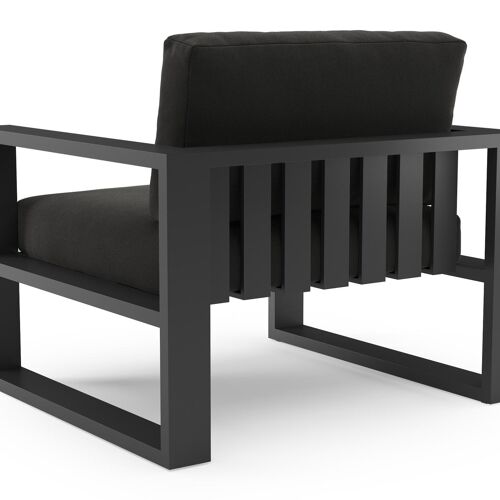 Fauteuil de jardin Verato en aluminium noir et coussins en all weather sunbrella® luxe natte sooty | Exterioo
