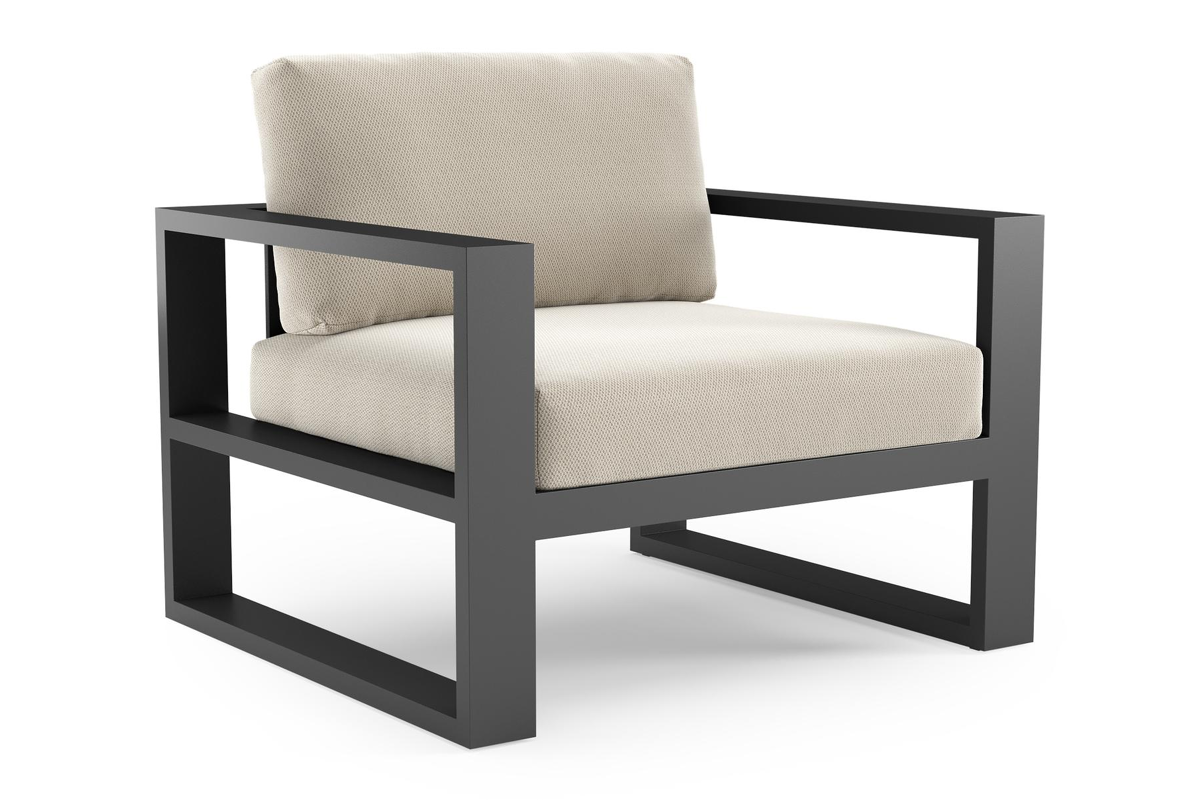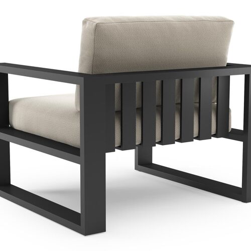 Fauteuil de jardin Verato en aluminium noir et coussins en all weather sunbrella® luxe lopi marble | Exterioo