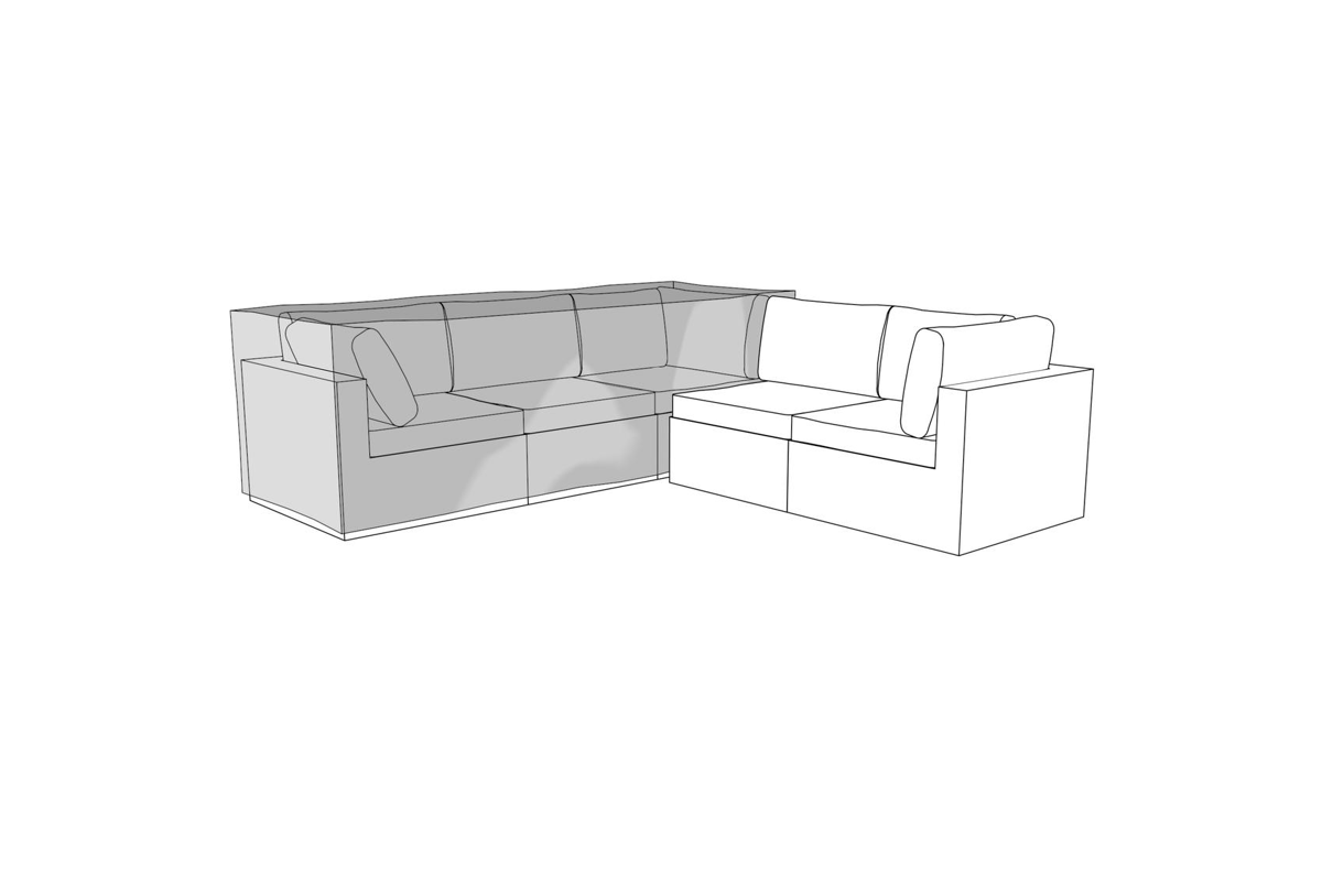 Convient pour lounge Amari 2 x angle + 1 x médian. Polyester 270 gr/m² avec coating PVC. Avec fermeture éclair, cordon de tension et bande de ventilation. Dimensions totales : Lg91 x L247 x H65 cm.