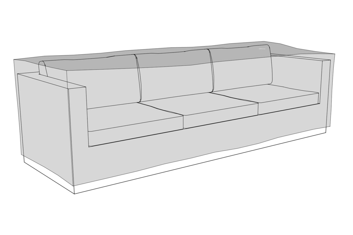 Housse de protection pour sofa 2 places lounge Canna avec coin ou sofa 3 places avec 2 accoudoirs. En polyester 250 g/m² avec revêtement PA. Avec fermeture éclair, cordon de tension et bande de ventilation. Dimension totale : Lg 269 x P 93 x H 70 cm.