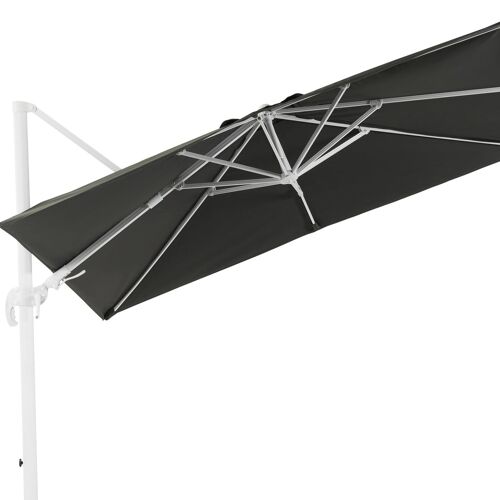 La Parasol pendant Avola est un parasol pendant facile à utiliser. Le mât est en aluminium blanc. Le matériau de la toile du parasol est du polyester gris. Le parasol est réglable en hauteur et peut pivoter à 360° autour de son axe. L'éclairage LED du parasol sont vendus séparément. Les dimensions sont les suivantes: Lg. 1: 200 x Lg. 2: 300 cm.