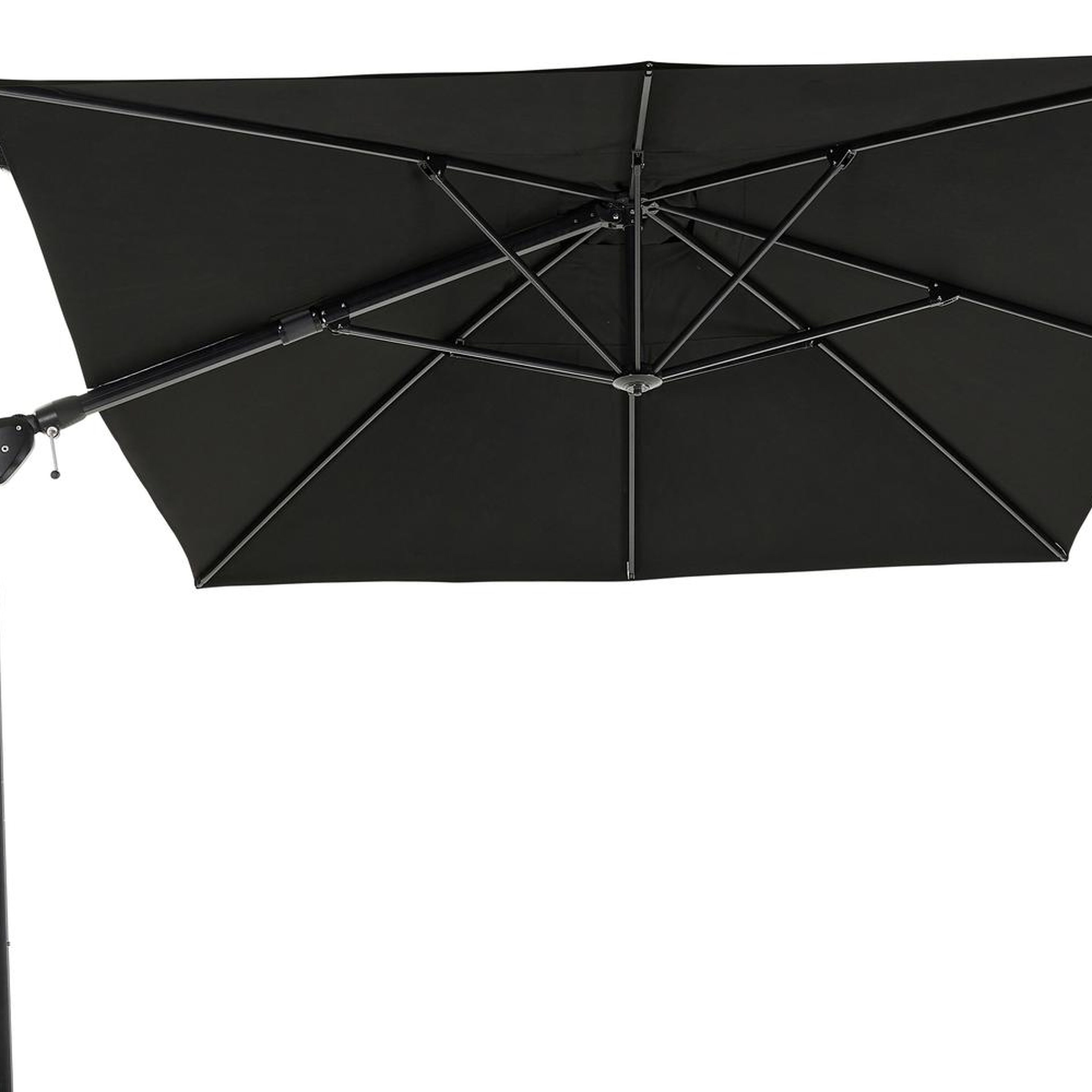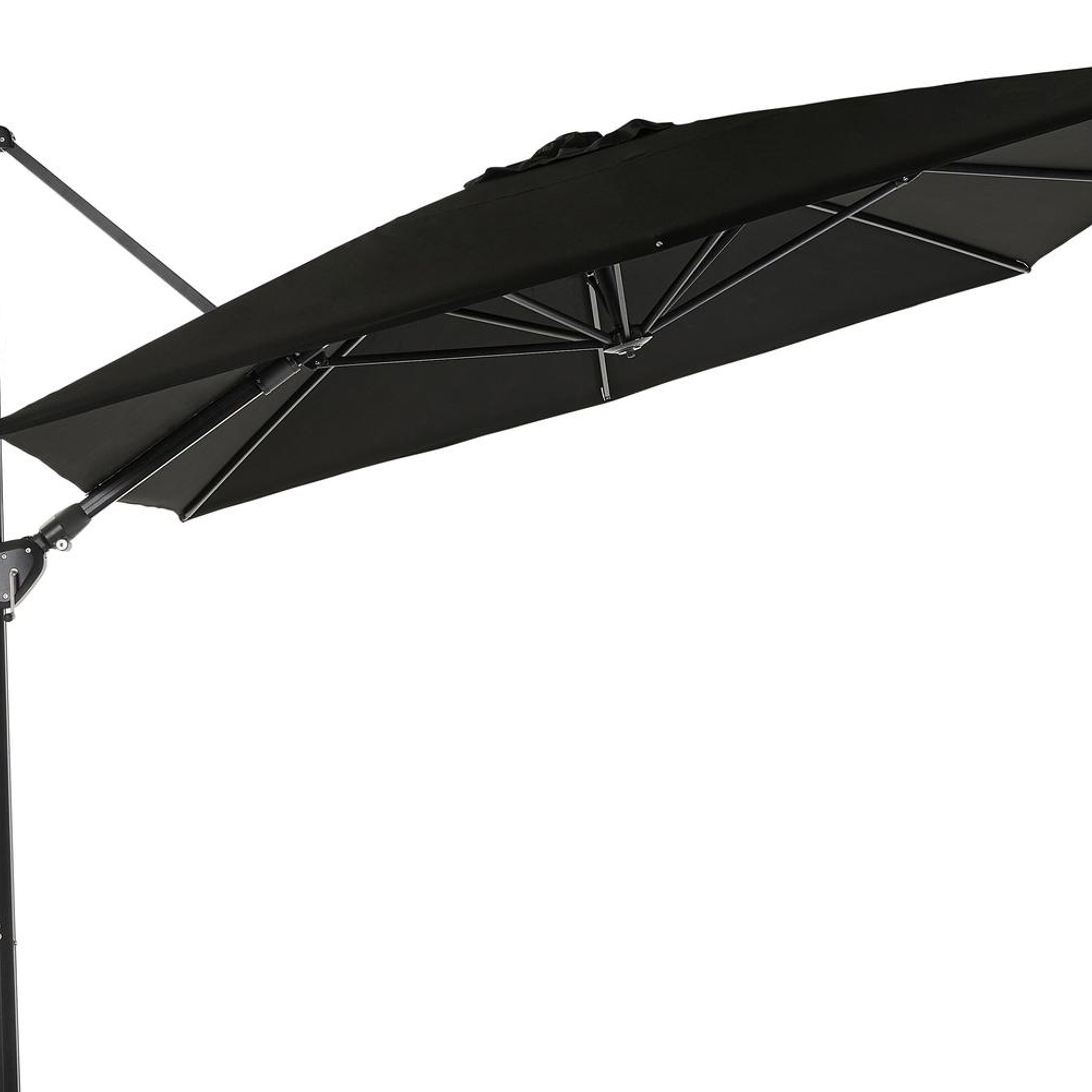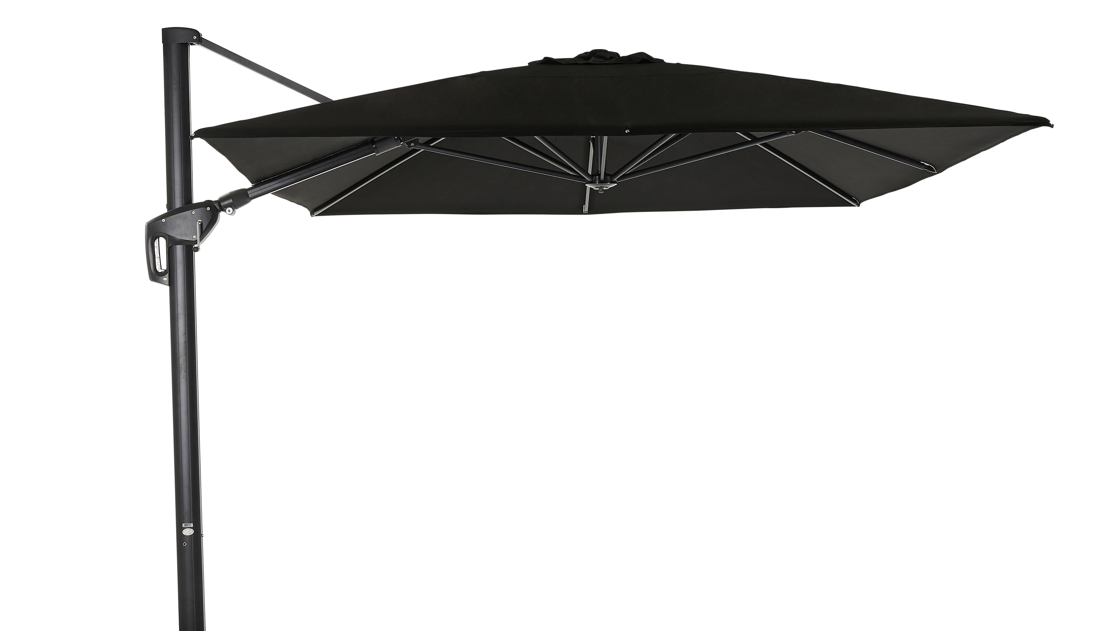 .L'armature du parasol est en aluminium inoxydable, un matériau solide mais léger et facile à déplacer. La surface a une finition lisse, ce qui signifie qu'elle n'attire pas la saleté et est facile à entretenir. Le revêtement en poudre assure la résistance aux UV et aux intempéries de votre mobilier.La toile du parasol est en tissu Sunbrella® Premium. Celui-ci est tissé avec une fibre colorée jusqu'au cœur. Cela rend le coussin inaltérable et résistant à la lumière du soleil. En outre, le tissu est également hydrofuge, résistant à l'usure, anti-salissures et résistant aux taches. Ce matériau est également utilisé par exemple pour le toit des cabriolets.