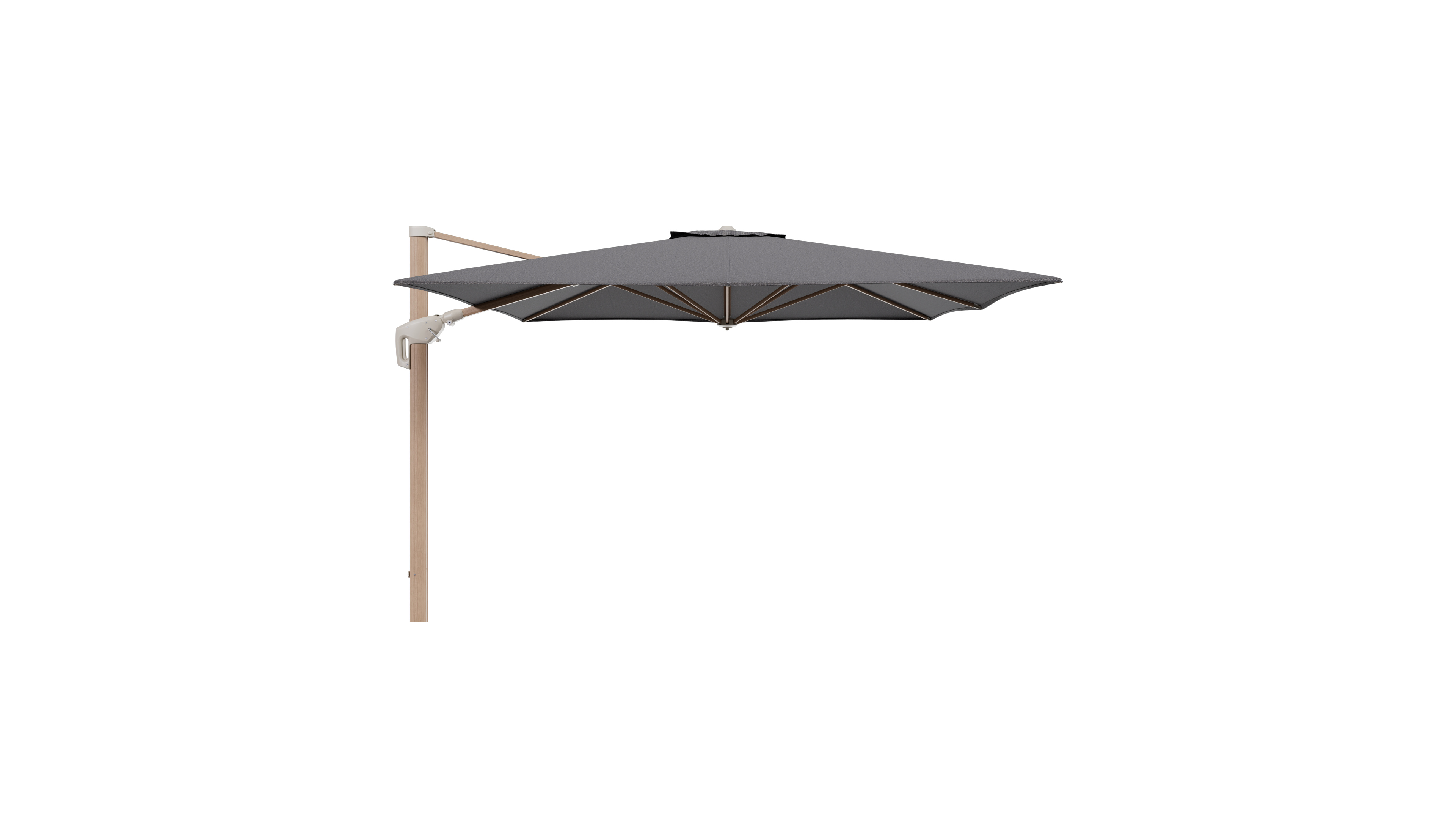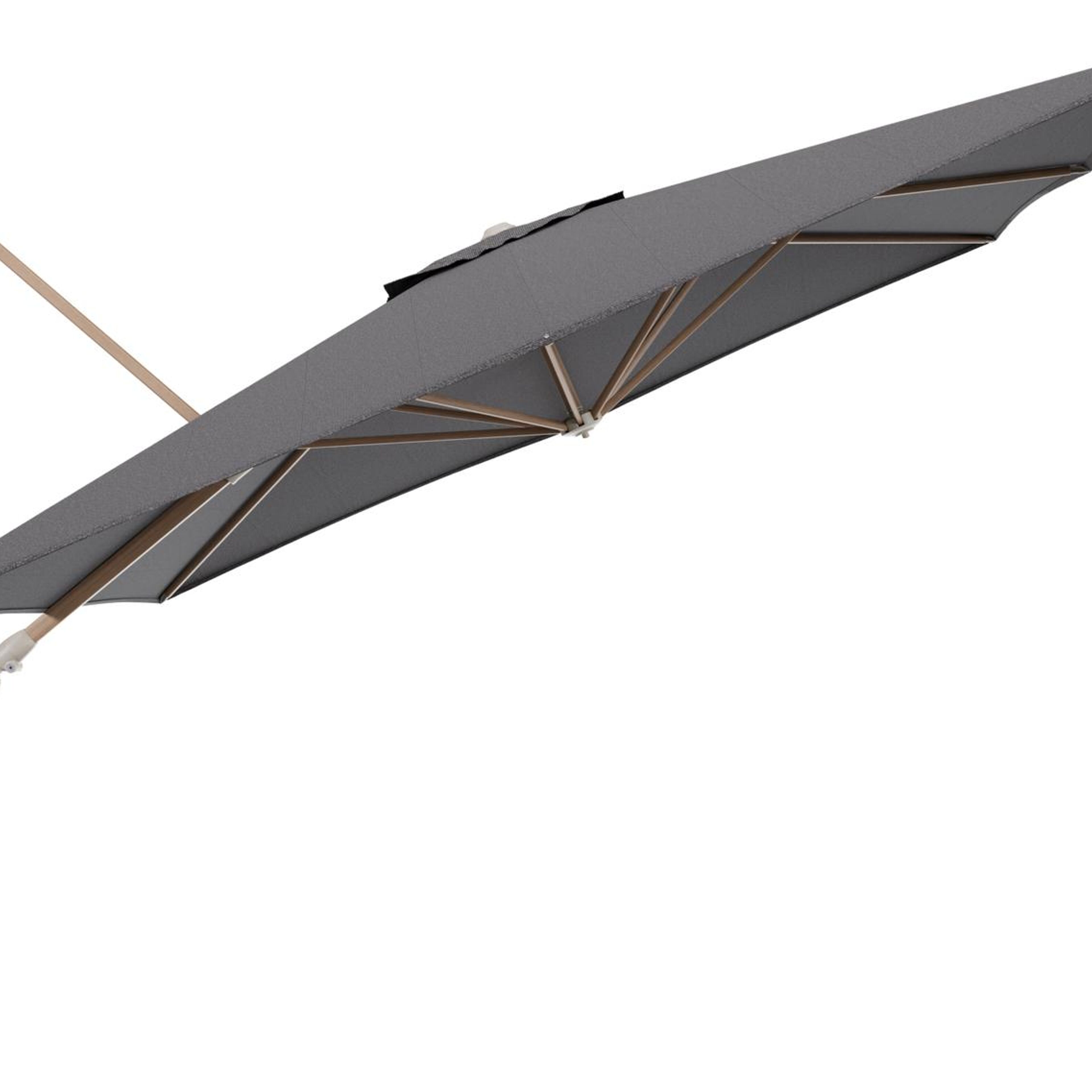 Parasol pendant Minore avec fonction tilt en aluminium aspect de bois et toile de parasol All Weather Solica Firenze Tunder - Lg.1 350 x Lg.2 350 cm (sans pied de parasol | Exterioo mobilier de jardin