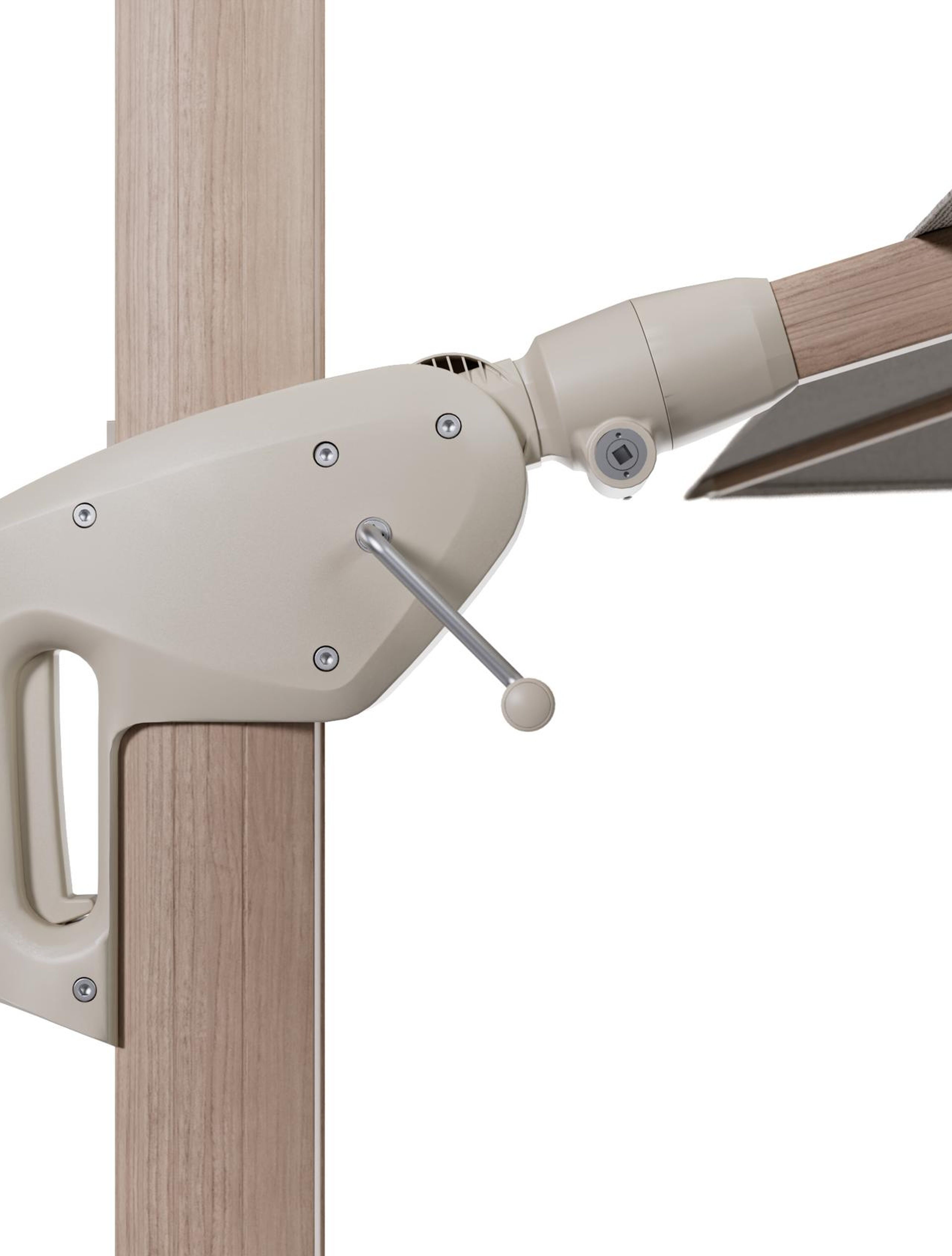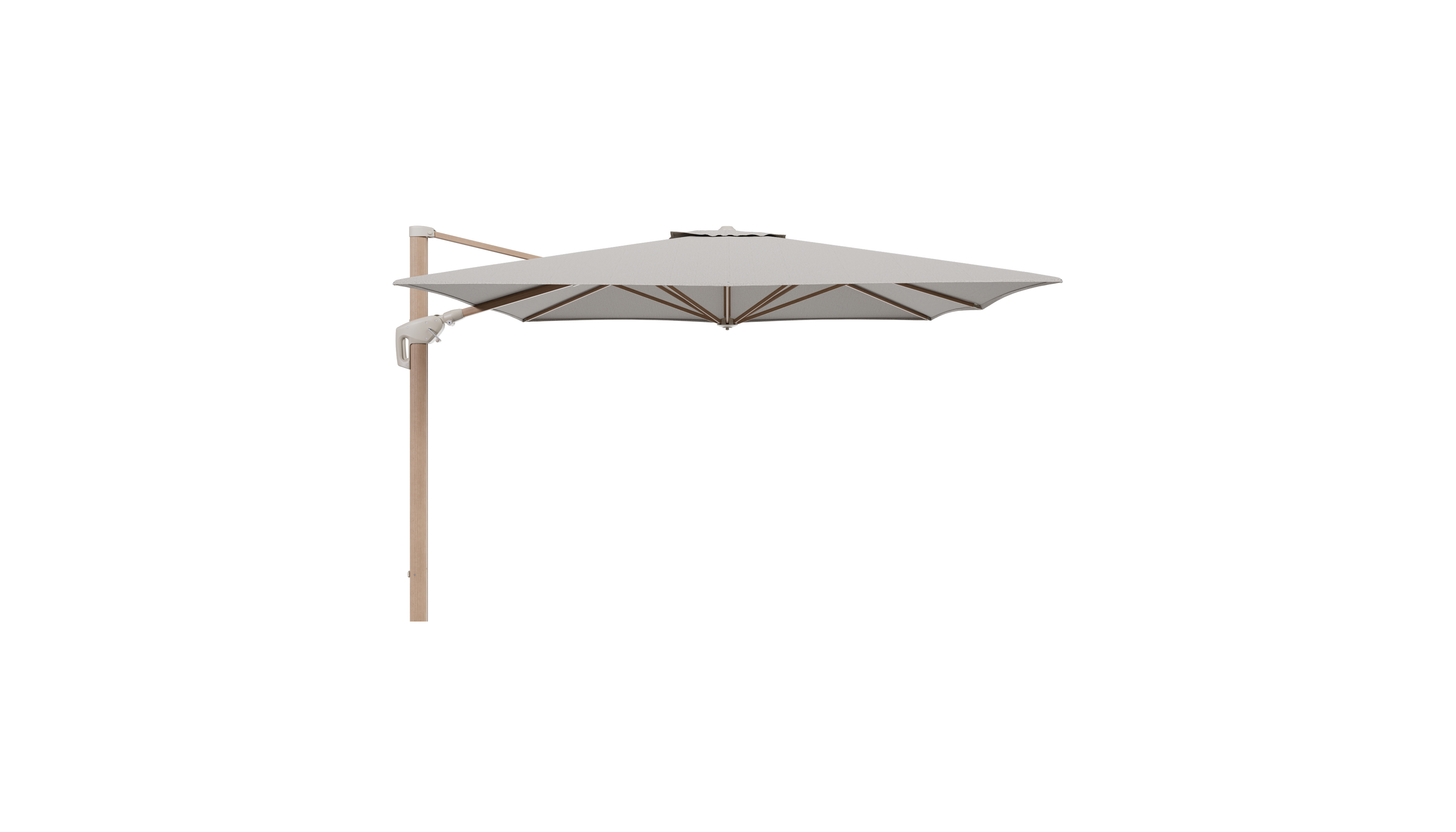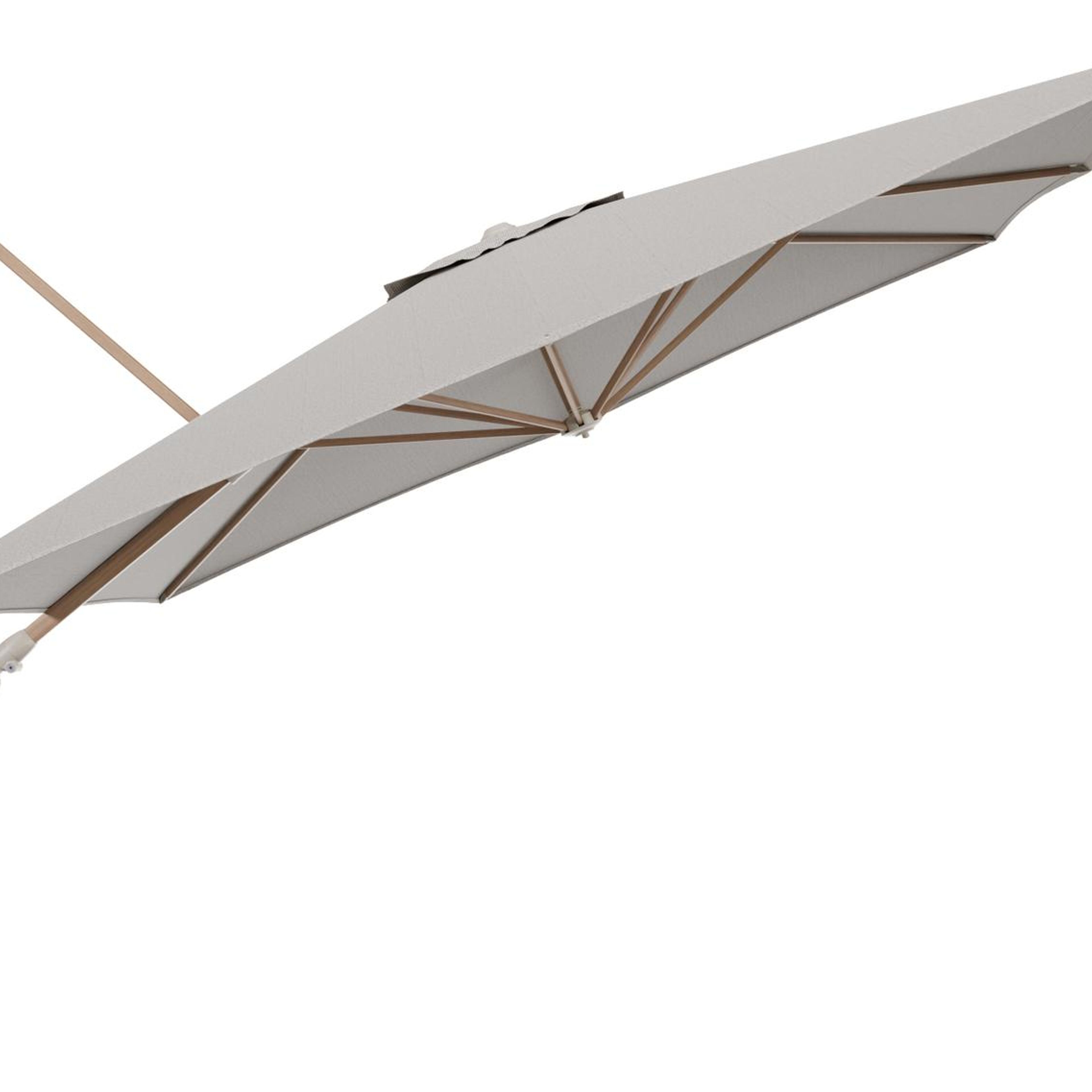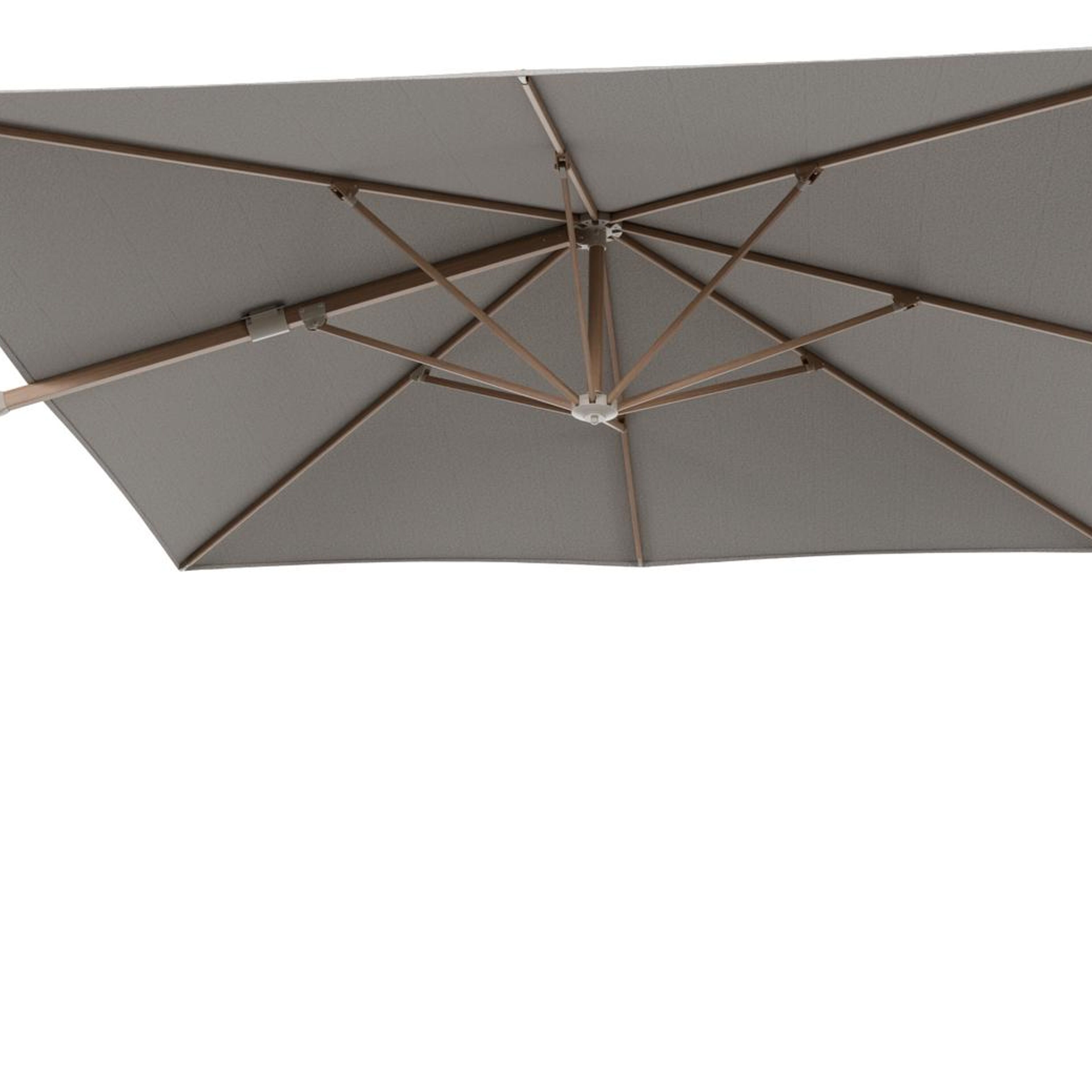 Parasol pendant Minore avec fonction tilt en aluminium aspect de bois et toile de parasol All Weather Solica Firenze Sand - Lg.1 350 x Lg.2 350 cm (sans pied de parasol | Exterioo mobilier de jardin