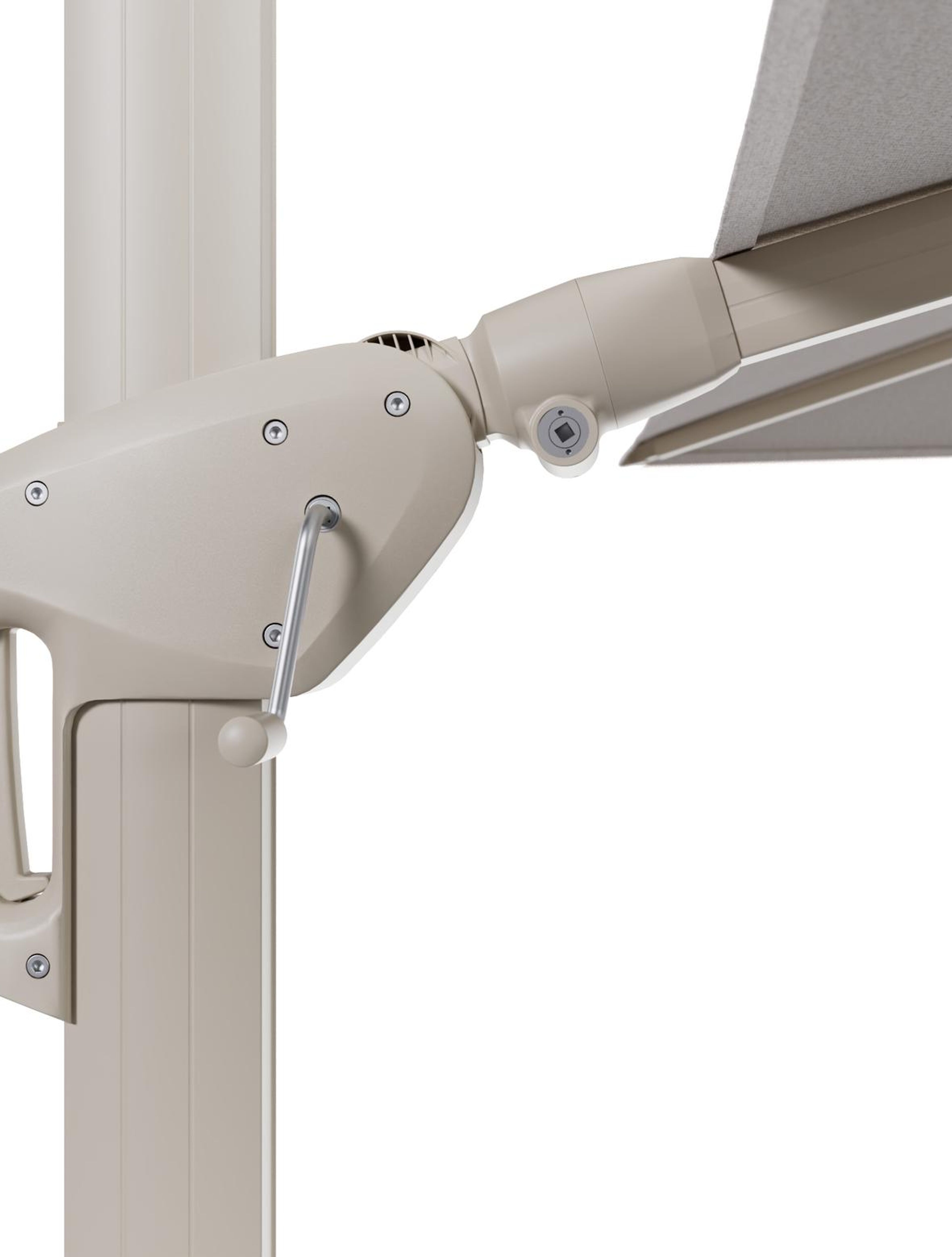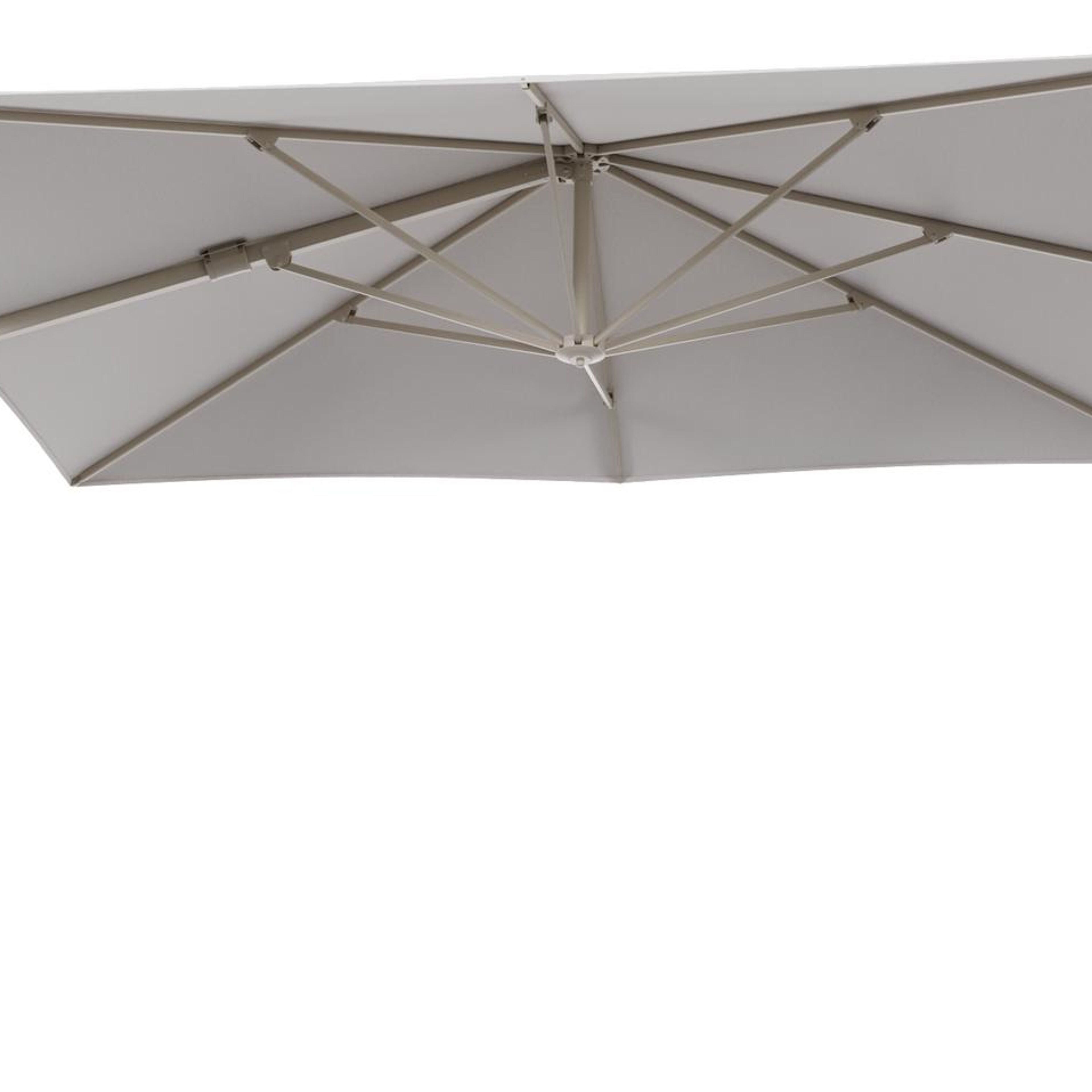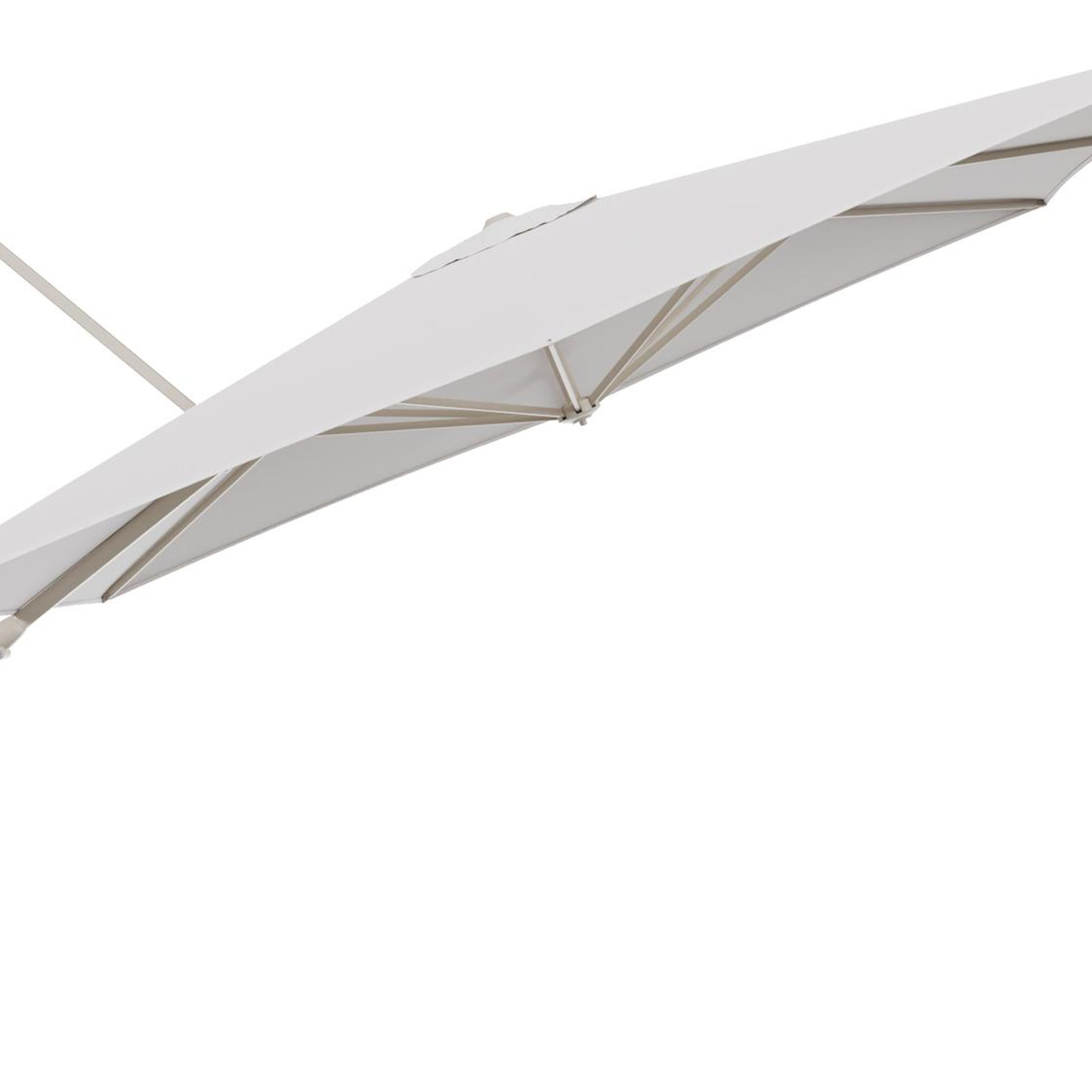 Parasol pendant Minore avec fonction tilt en aluminium beige et toile de parasol All Weather Solica Ego Eggshell - Lg.1 280 Lg.2 370 cm (sans pied de parasol) | Exterioo mobilier de jardin