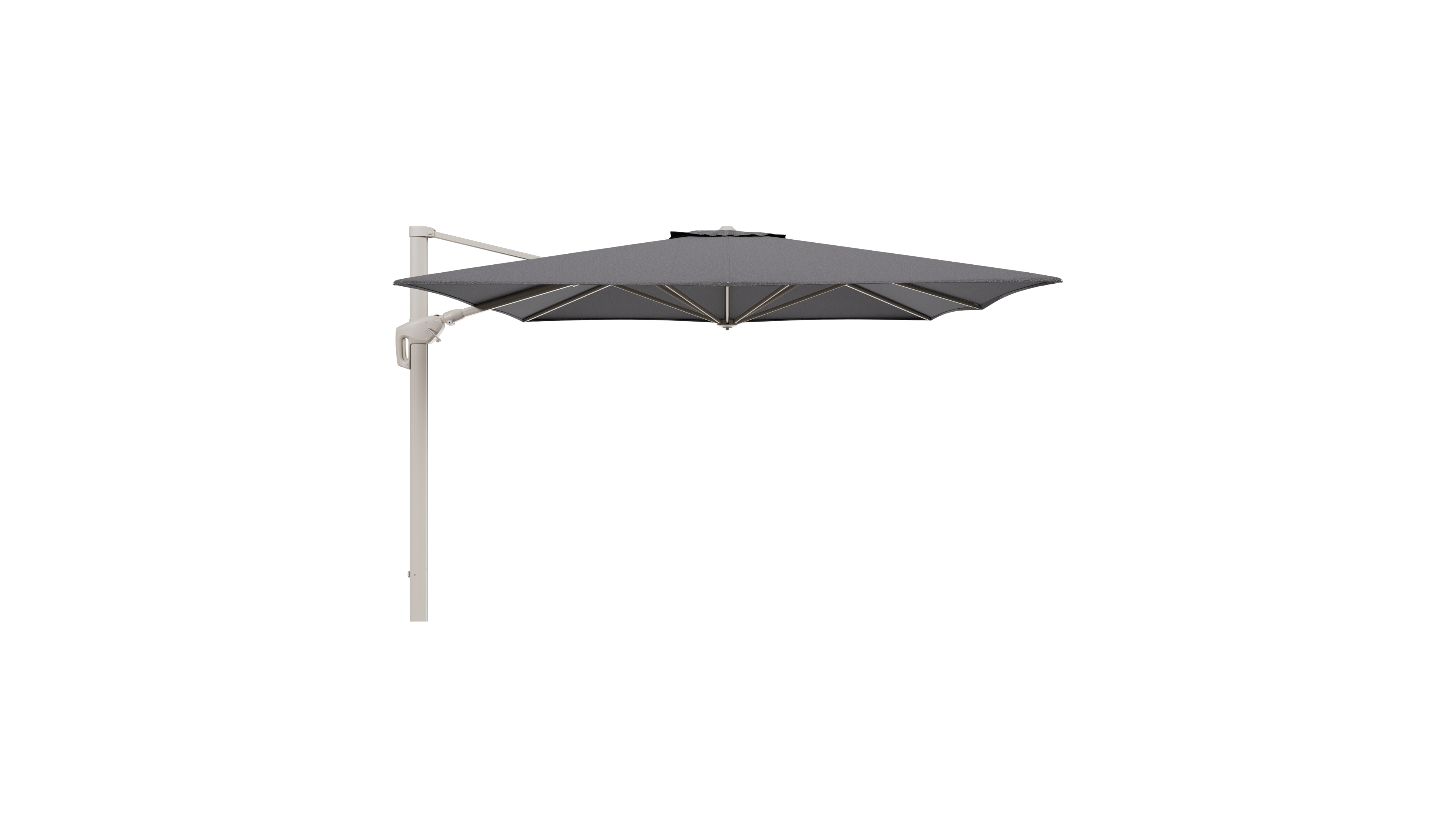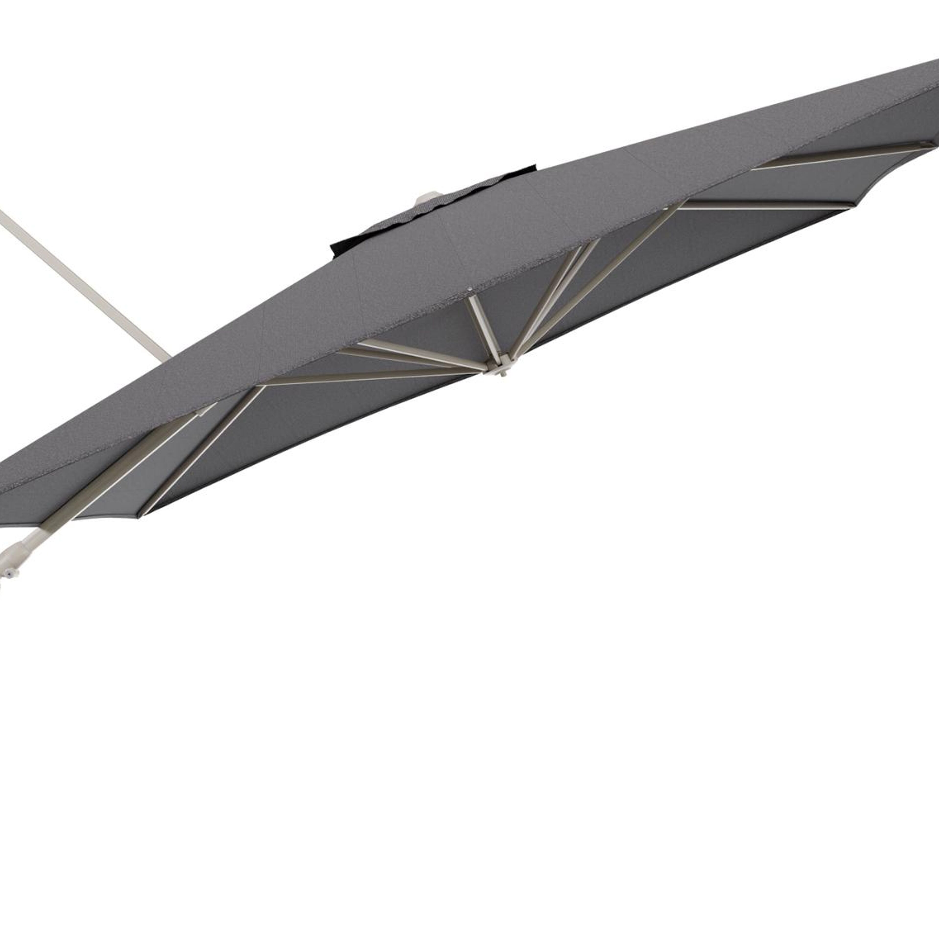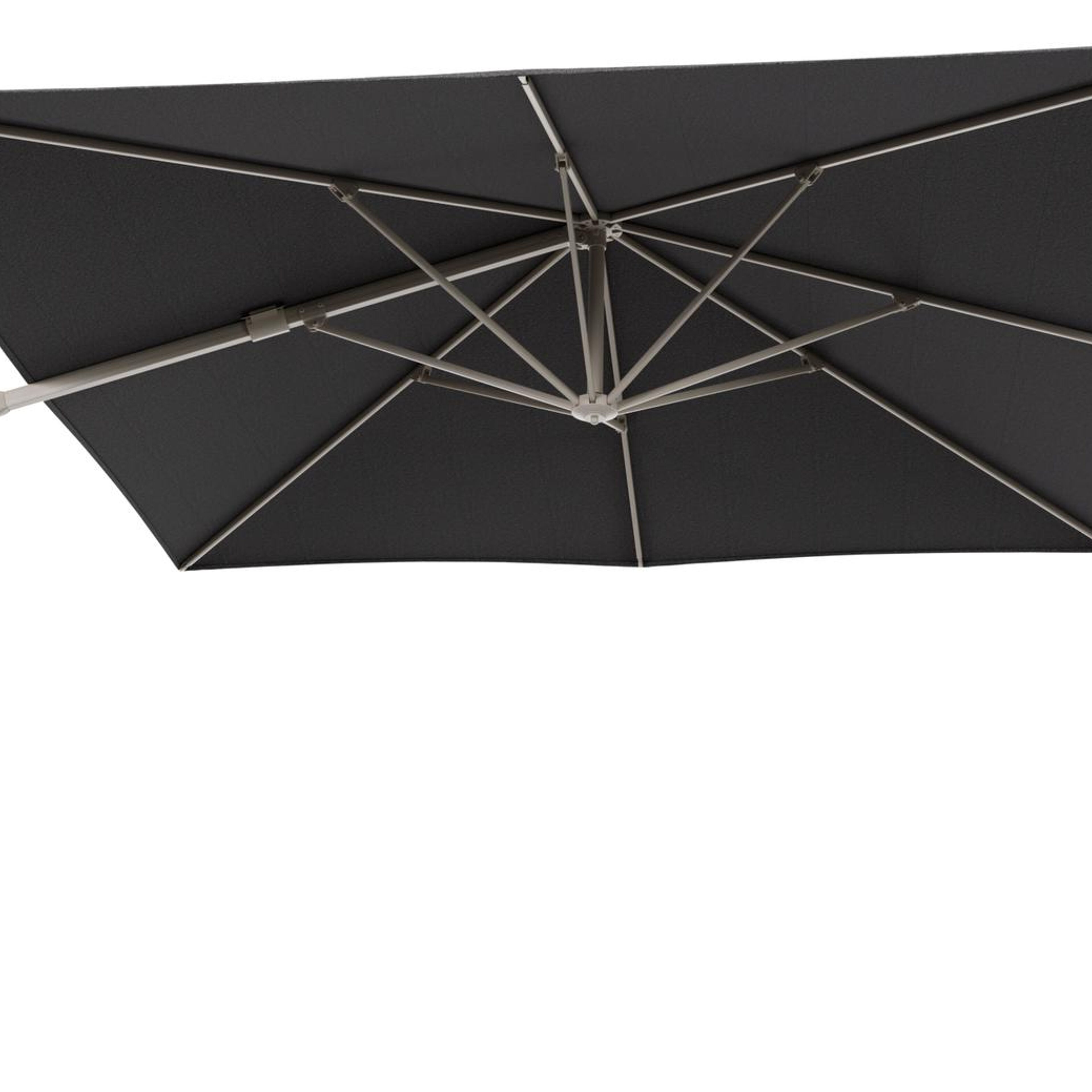 Parasol pendant Minore avec fonction tilt en aluminium beige et toile de parasol All Weather Solica Firenze Tunder - Lg.1 350 x Lg.2 350 cm (sans pied de parasol | Exterioo mobilier de jardin