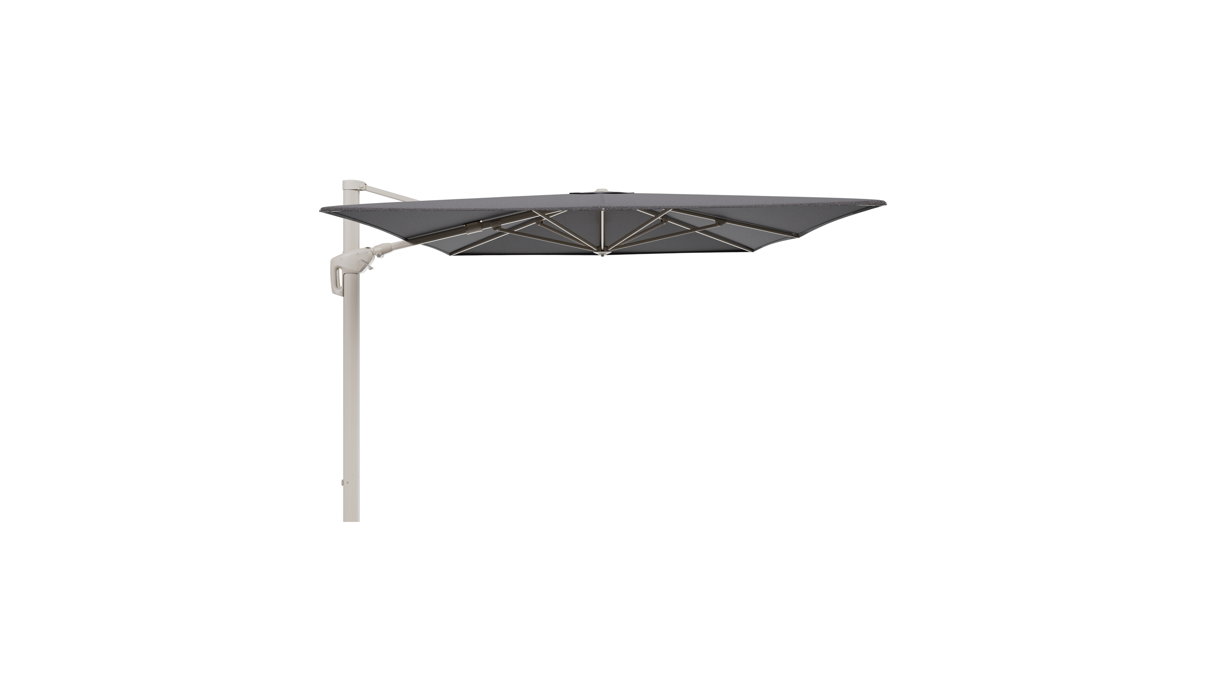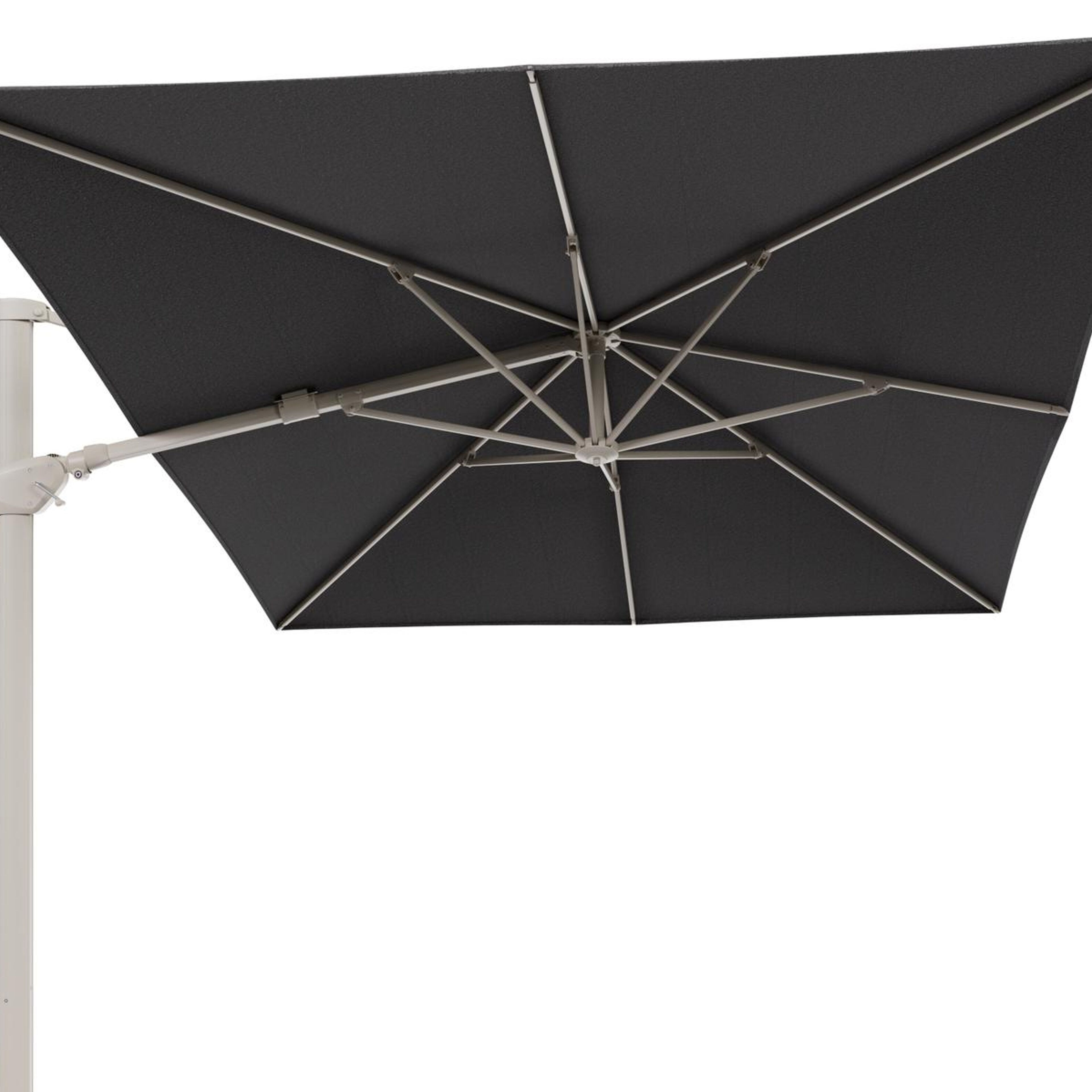 Parasol pendant Minore avec fonction tilt en aluminium beige et toile de parasol All Weather Solica Firenze Tunder - Lg.1 400 x Lg.2 300 cm (sans pied de parasol) | Exterioo mobilier de jardin
