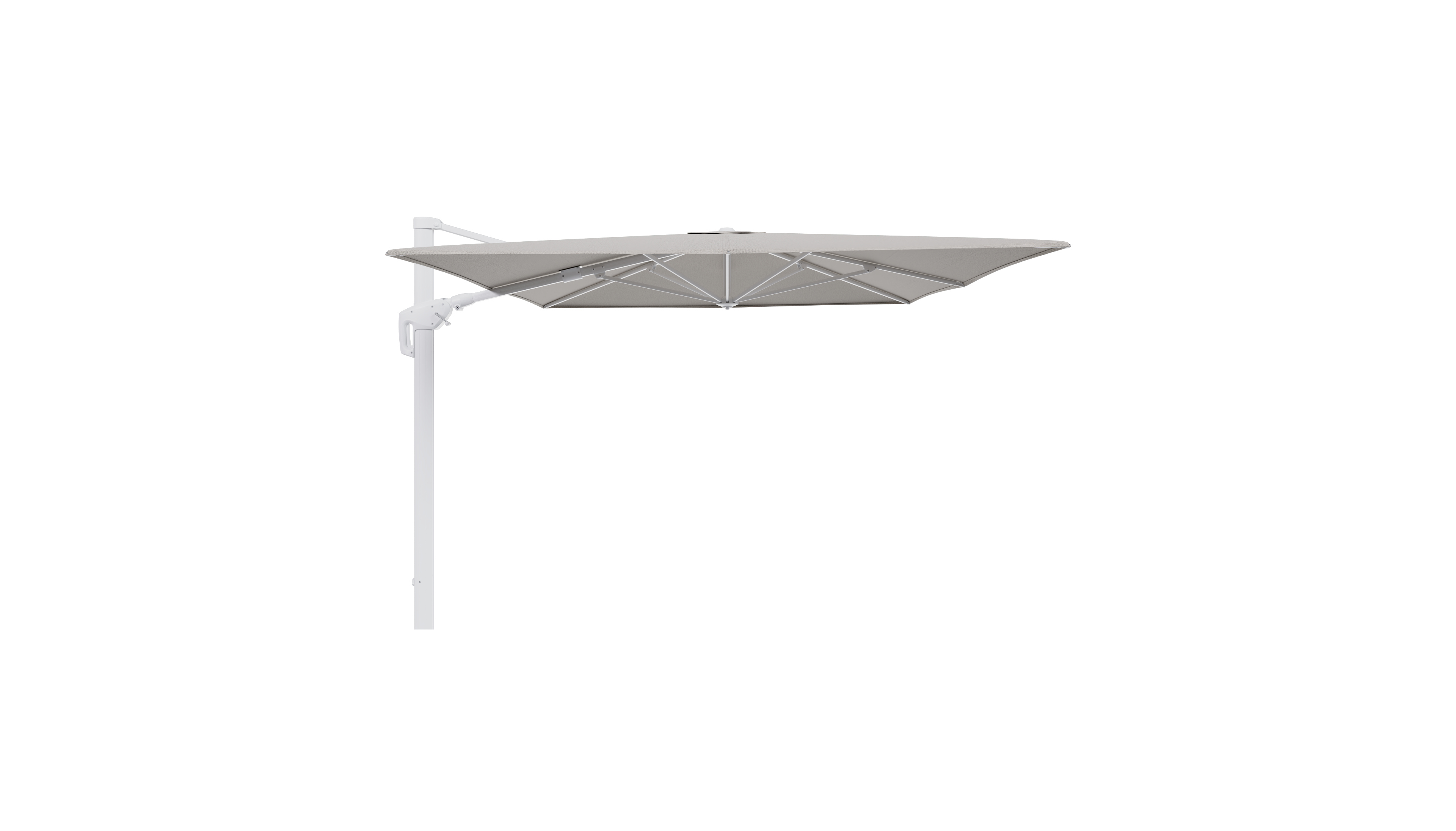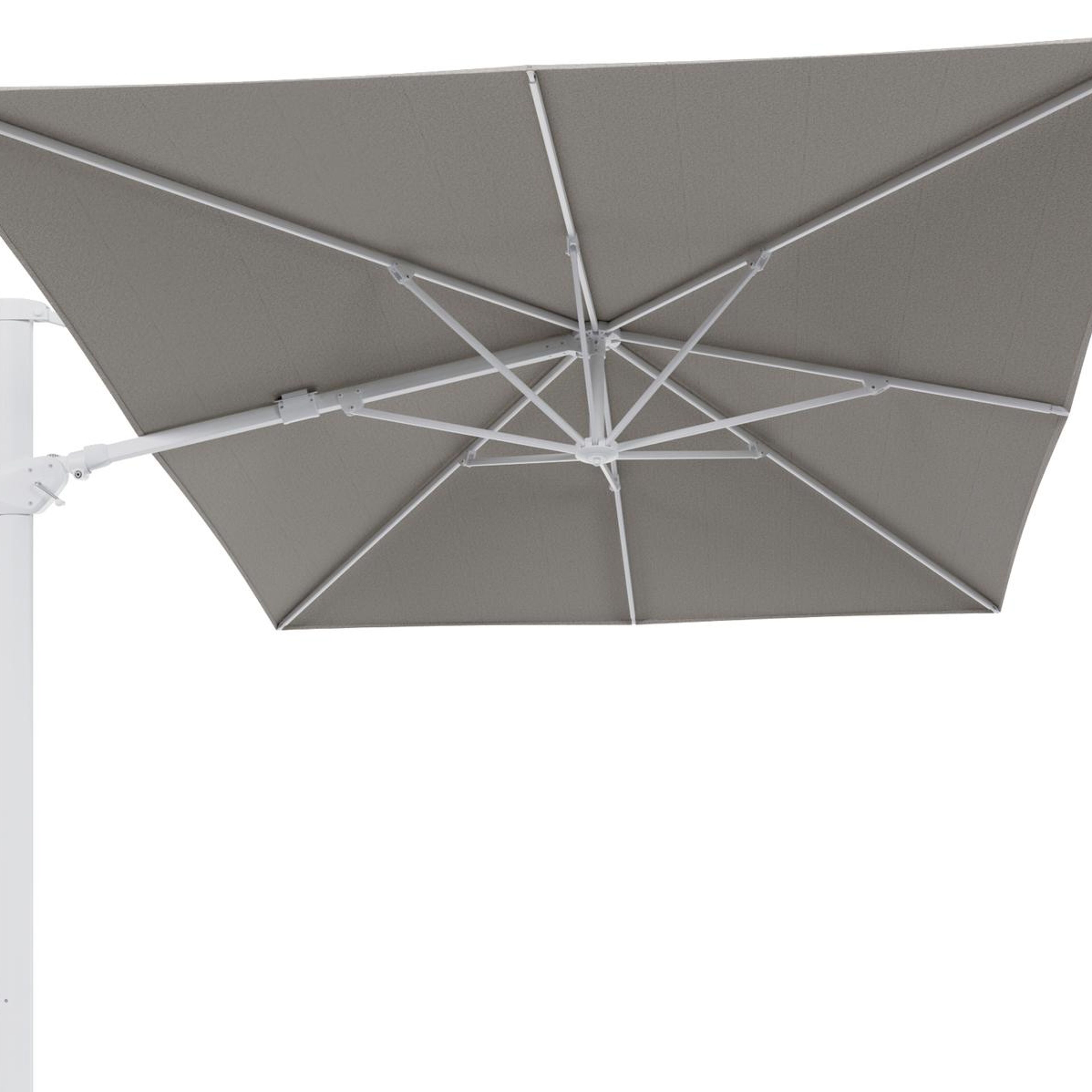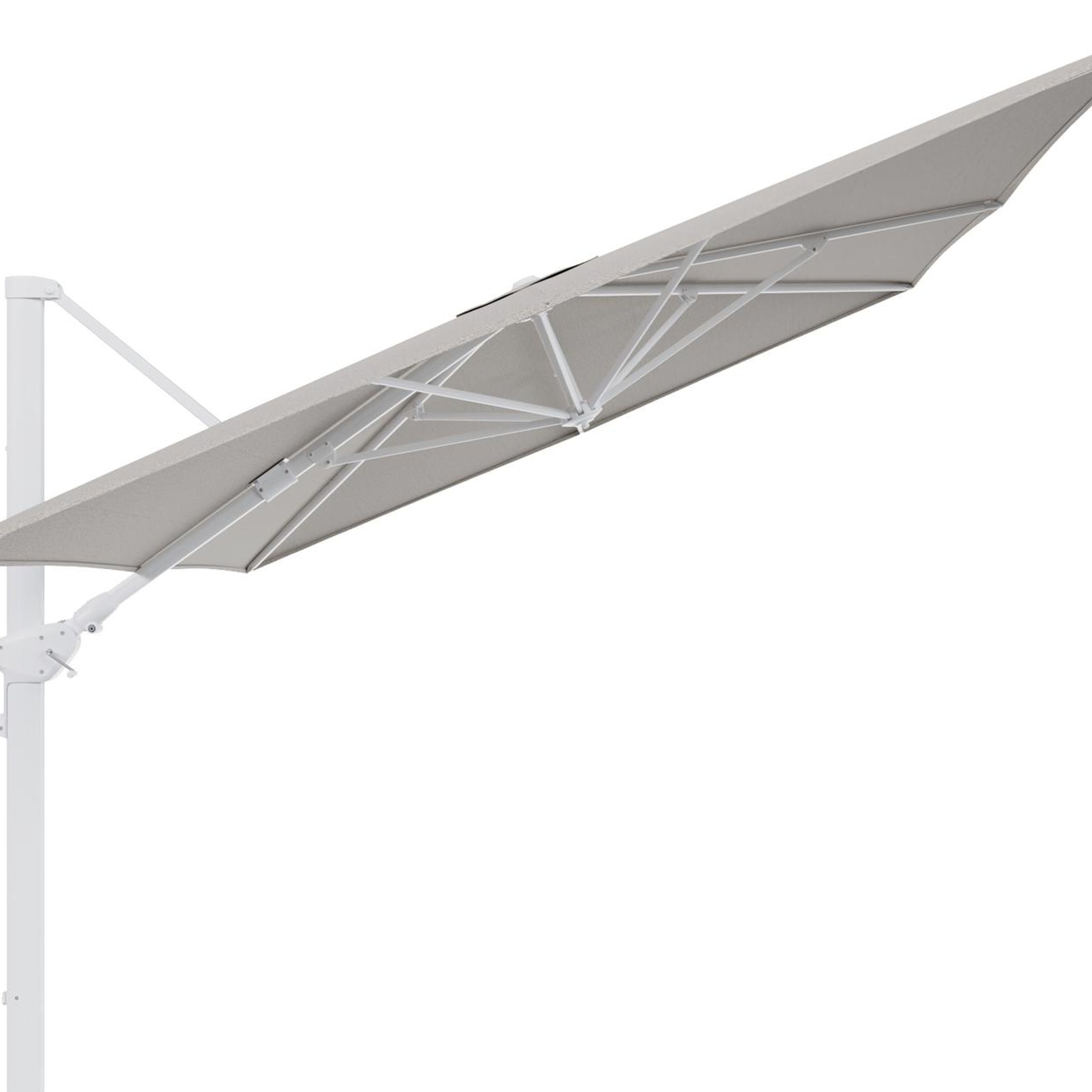 Parasol pendant Minore avec fonction tilt en aluminium blanc et toile de parasol en All Weather Solica Firenze Sand - Lg.1 400 x Lg.2 300 cm (sans pied de parasol) | Exterioo mobilier de jardin