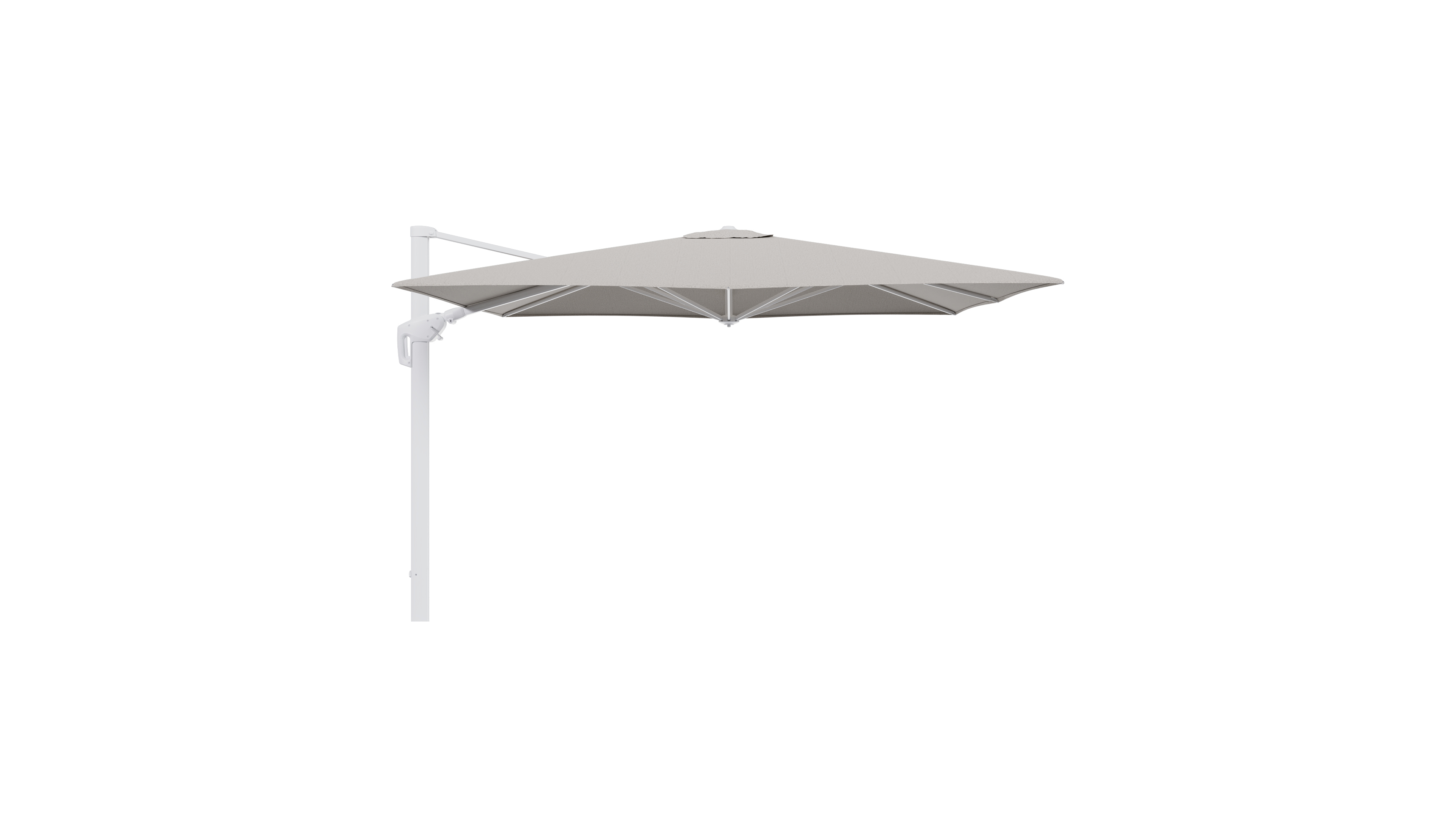 Parasol pendant Minore avec fonction tilt en aluminium blanc et toile de parasol en All Weather Sunbrella® Luxe Firenze Sand - Lg.1: 280 x Lg.2: 370 cm (sans pied de parasol | Exterioo mobilier de jardin
