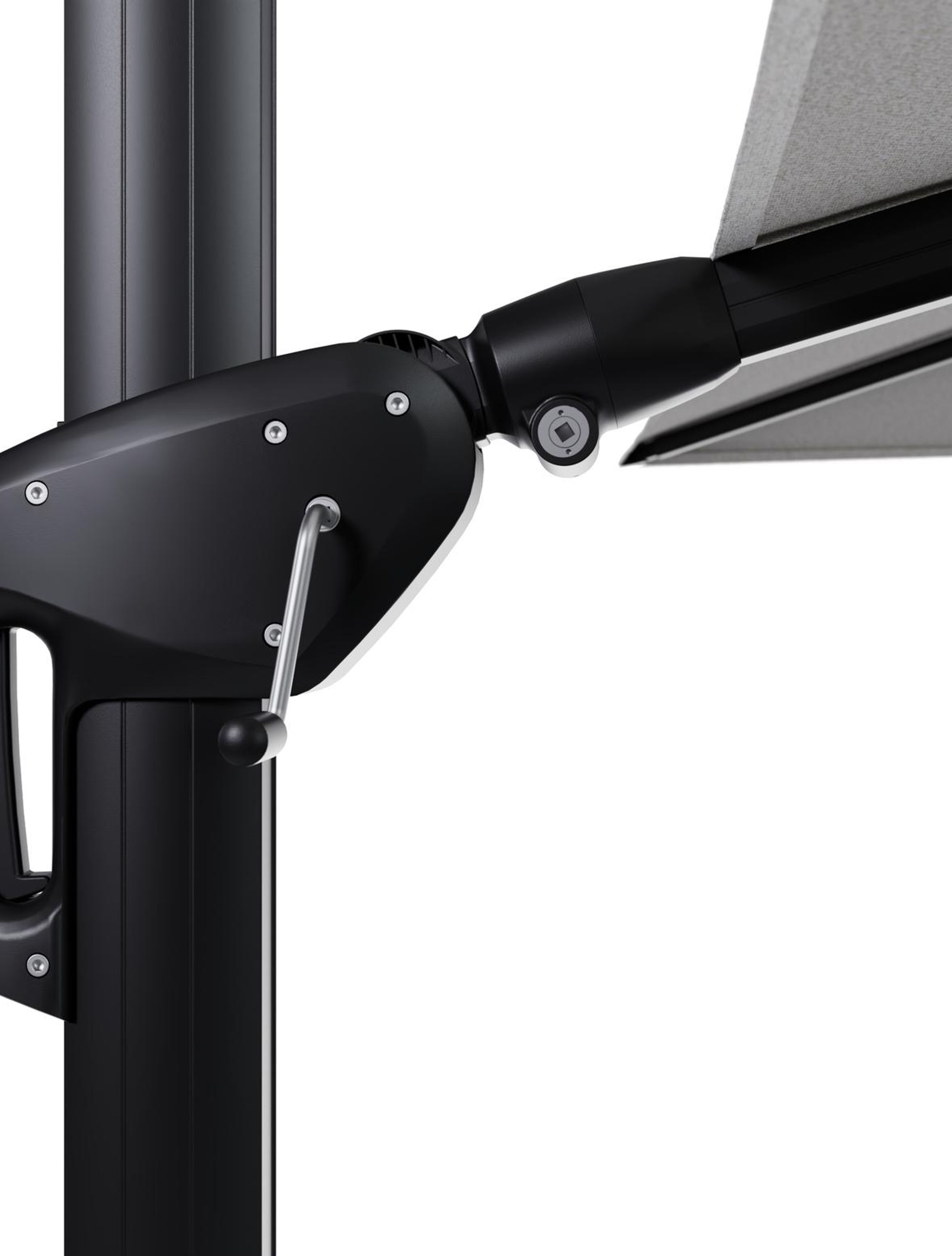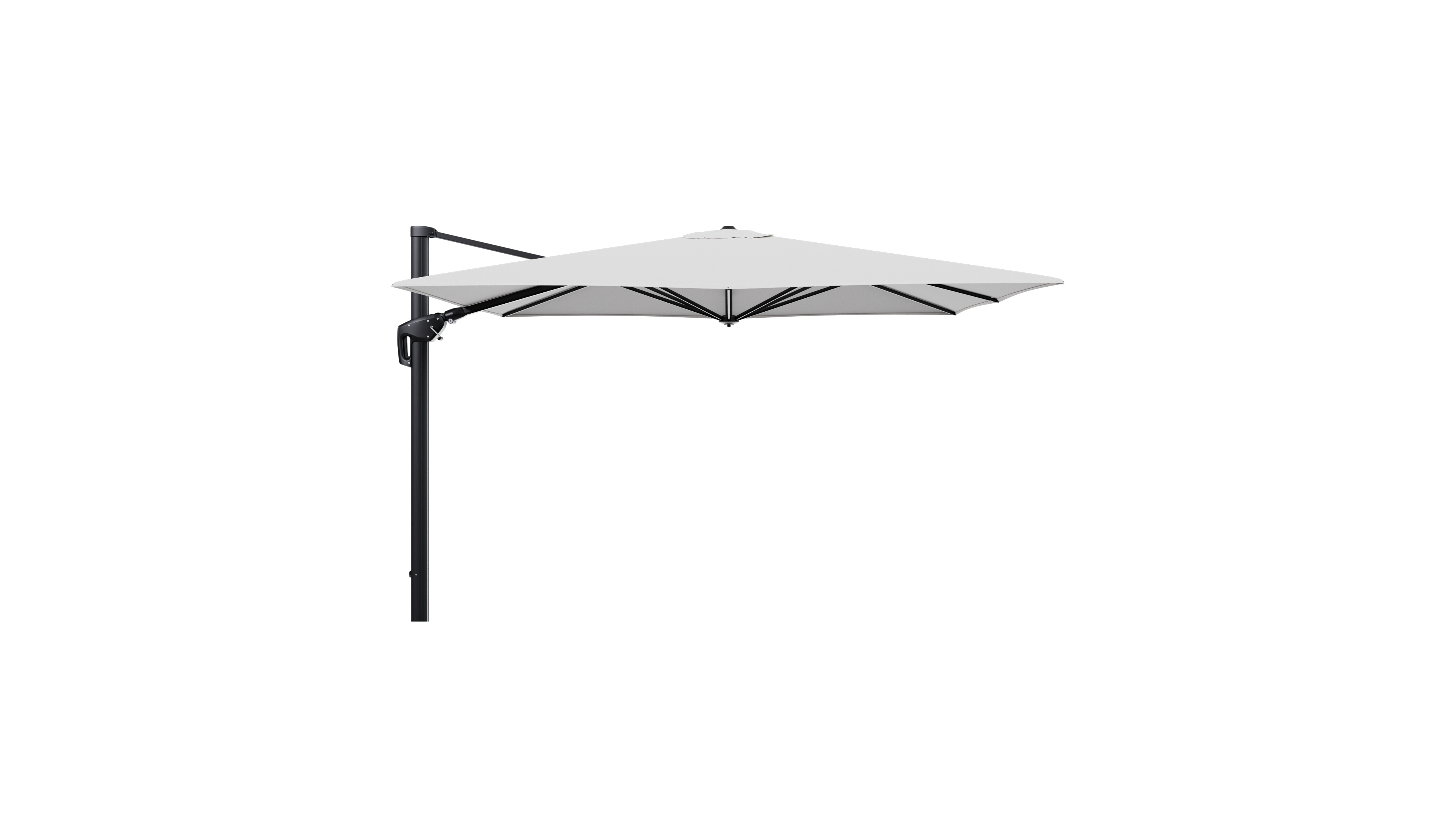 Parasol pendant Minore avec fonction tilt en aluminium noir et toile de parasol en All Weather Solica Ego Birch - Lg.1: 280 x Lg.2: 370 cm (sans pied de parasol | Exterioo mobilier de jardin