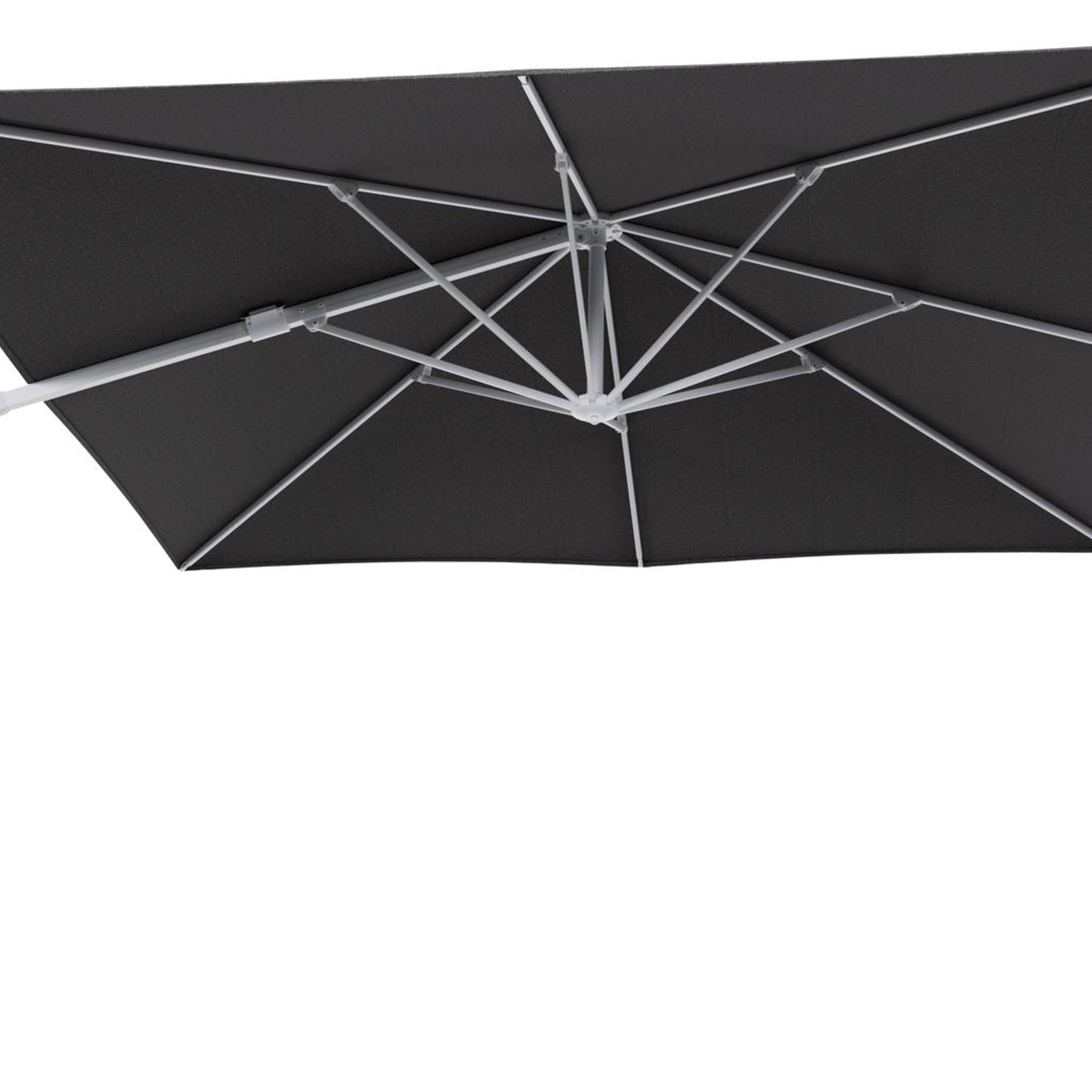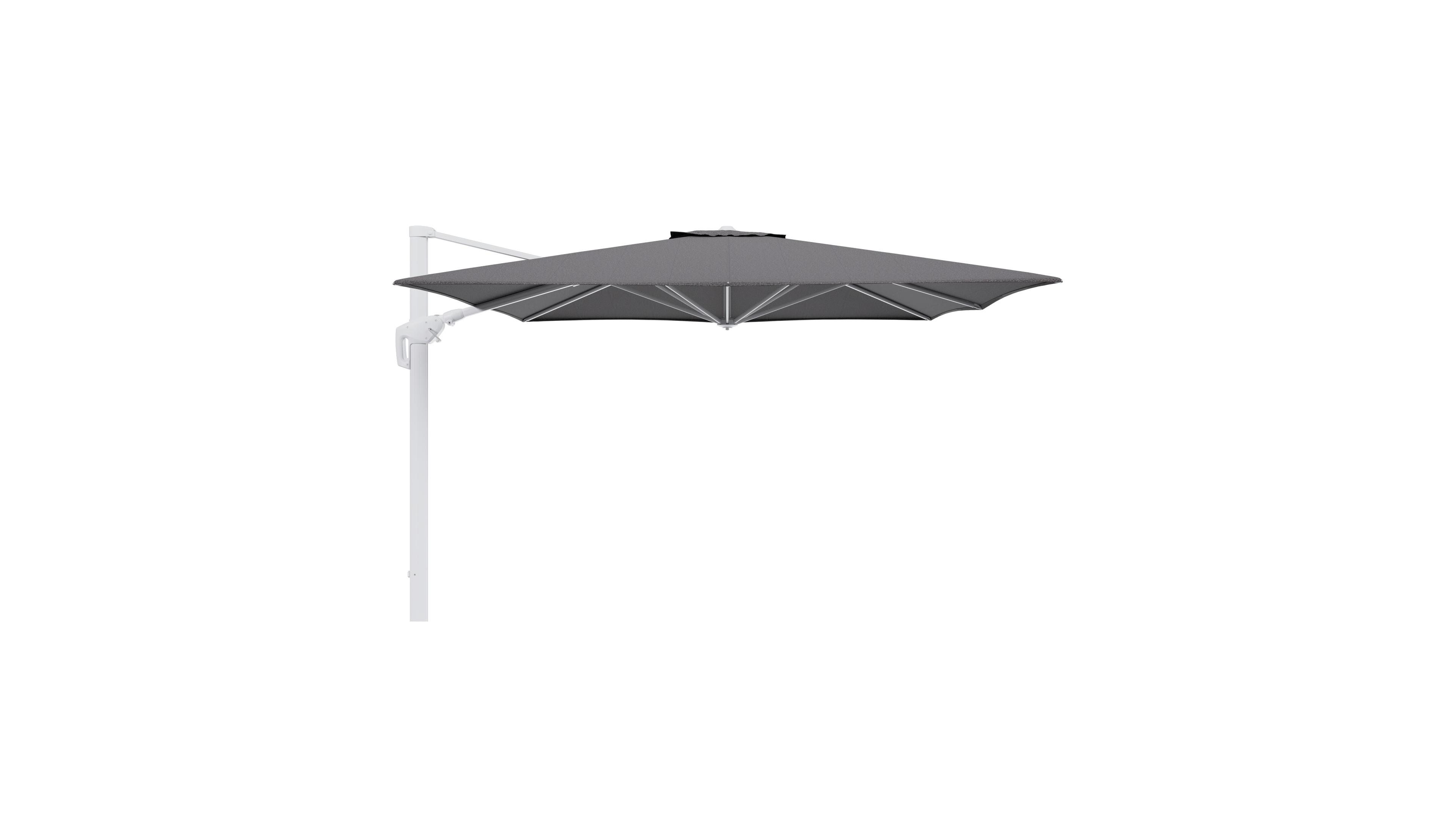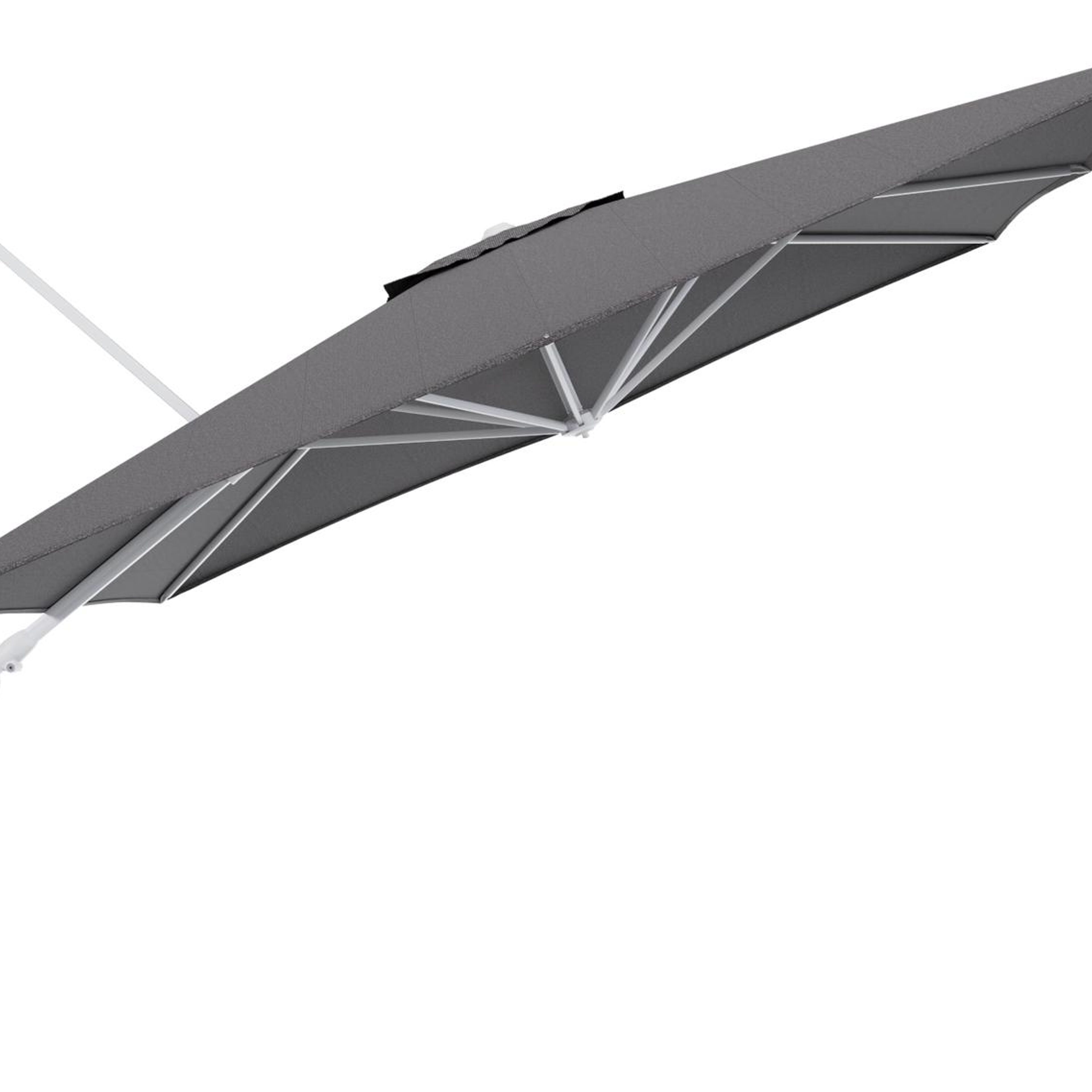 Parasol pendant Minore avec fonction tilt en aluminium blanc et toile de parasol en All Weather Solica Firenze Tunder - Lg.1: 350 x Lg.2: 350 cm (sans pied de parasol | Exterioo mobilier de jardin
