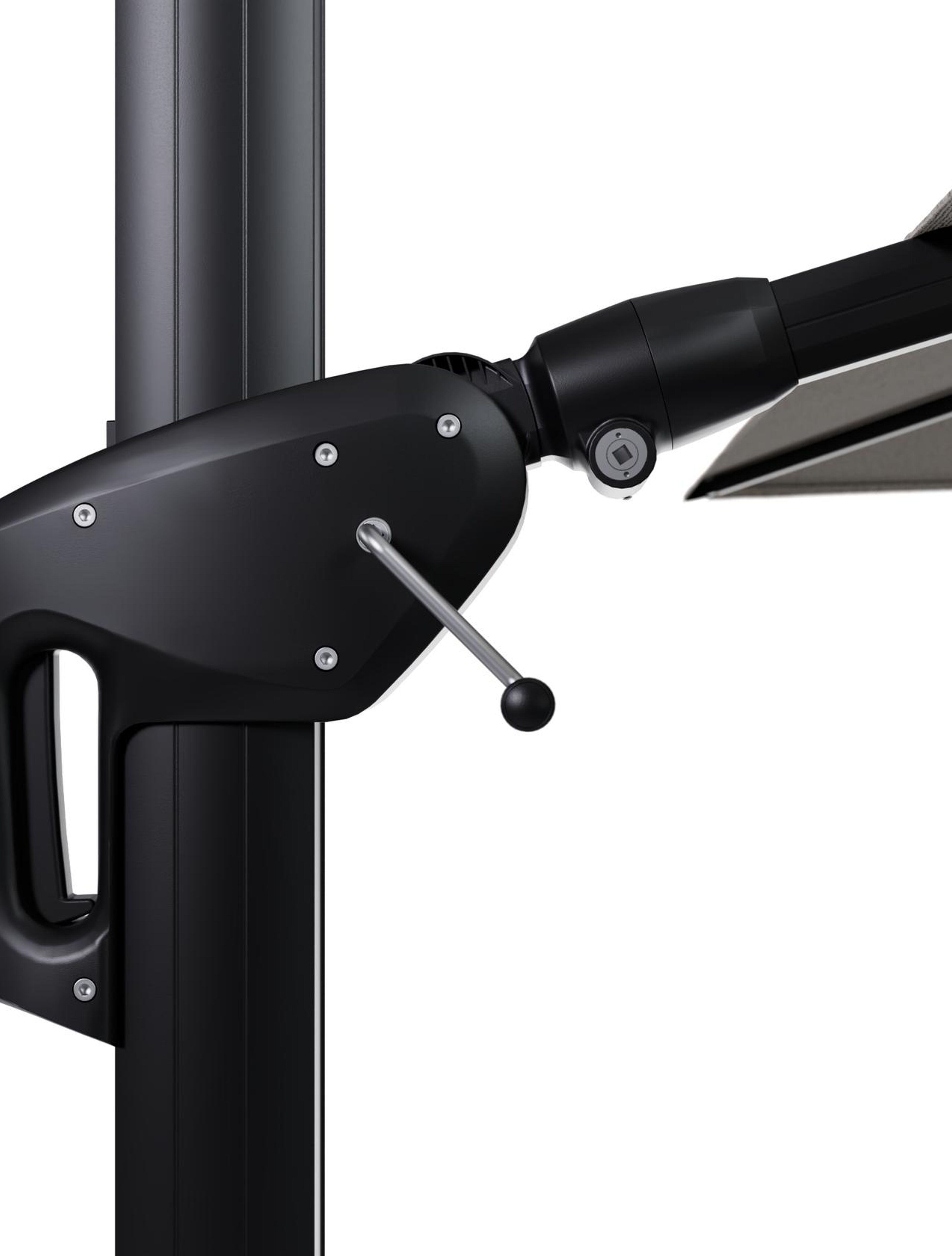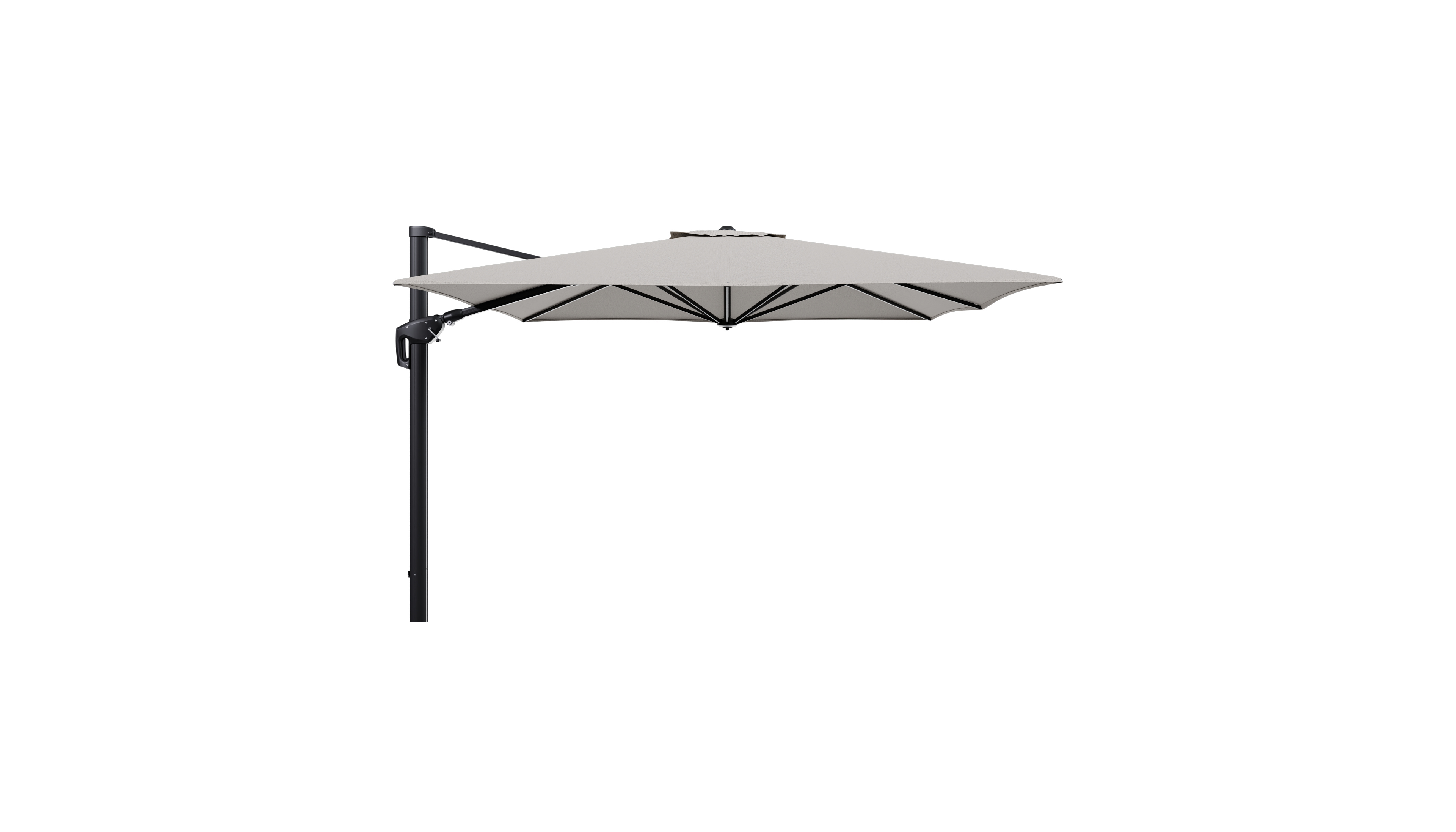 Parasol pendant Minore avec fonction tilt en aluminium noir et toile de parasol en All Weather Solica Firenze Sand - Lg.1: 350 x Lg.2: 350 cm (sans pied de parasol | Exterioo mobilier de jardin