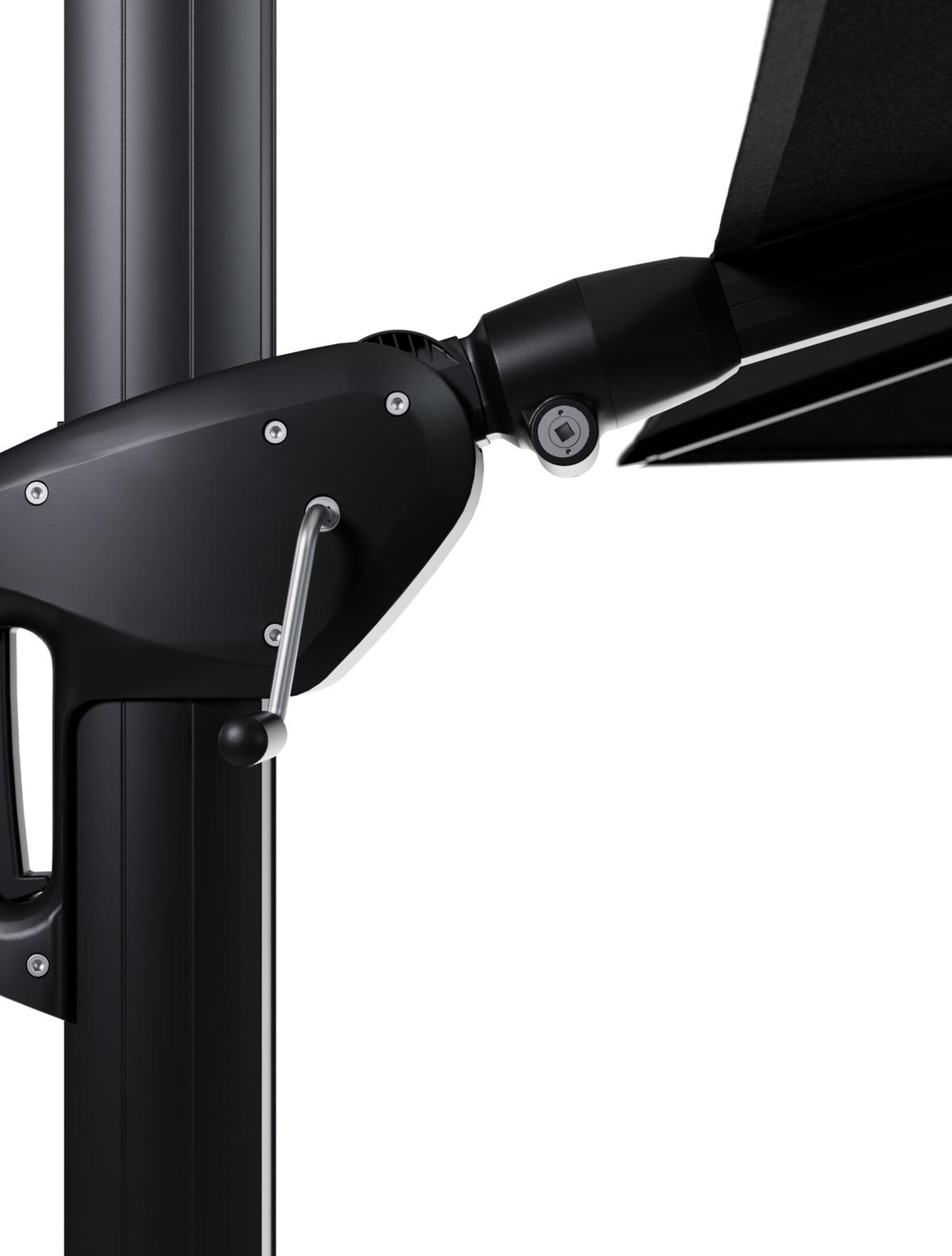 Pour le parasol pendant Minore, nous recommandons un pied de parasol Minore en aluminium de 260 kg. Cette base lourde assure une stabilité optimale, même lorsque le parasol capte davantage de vent.