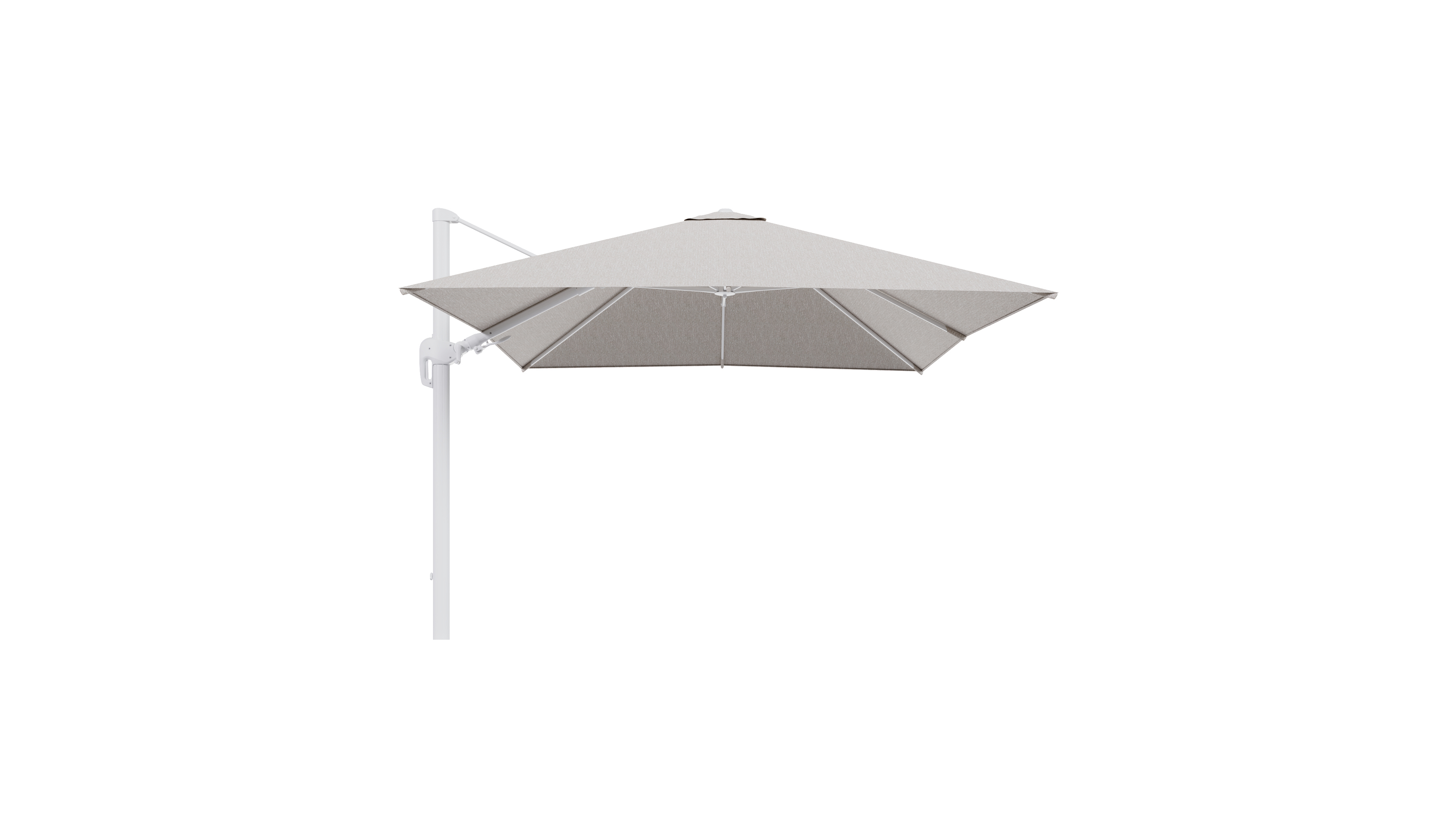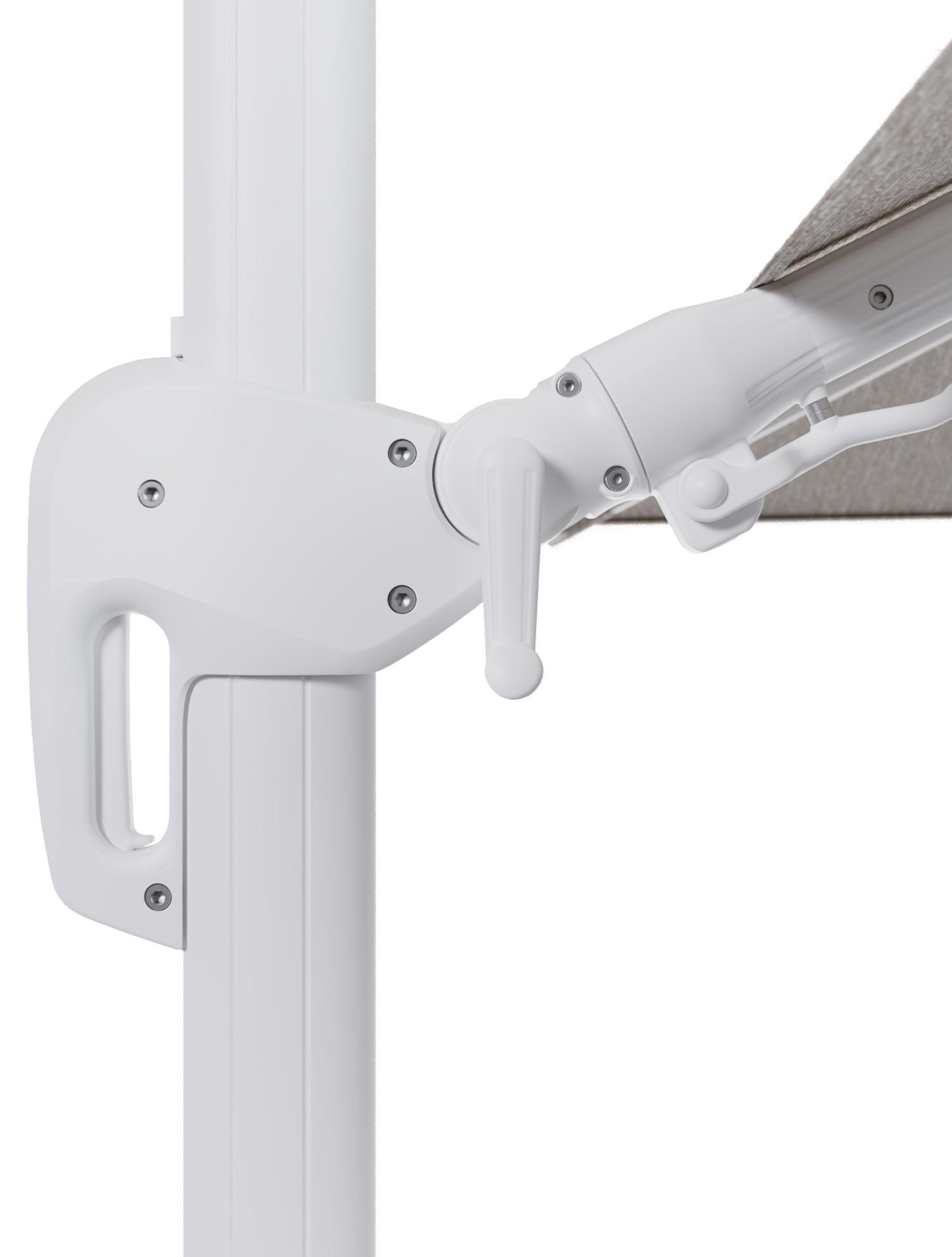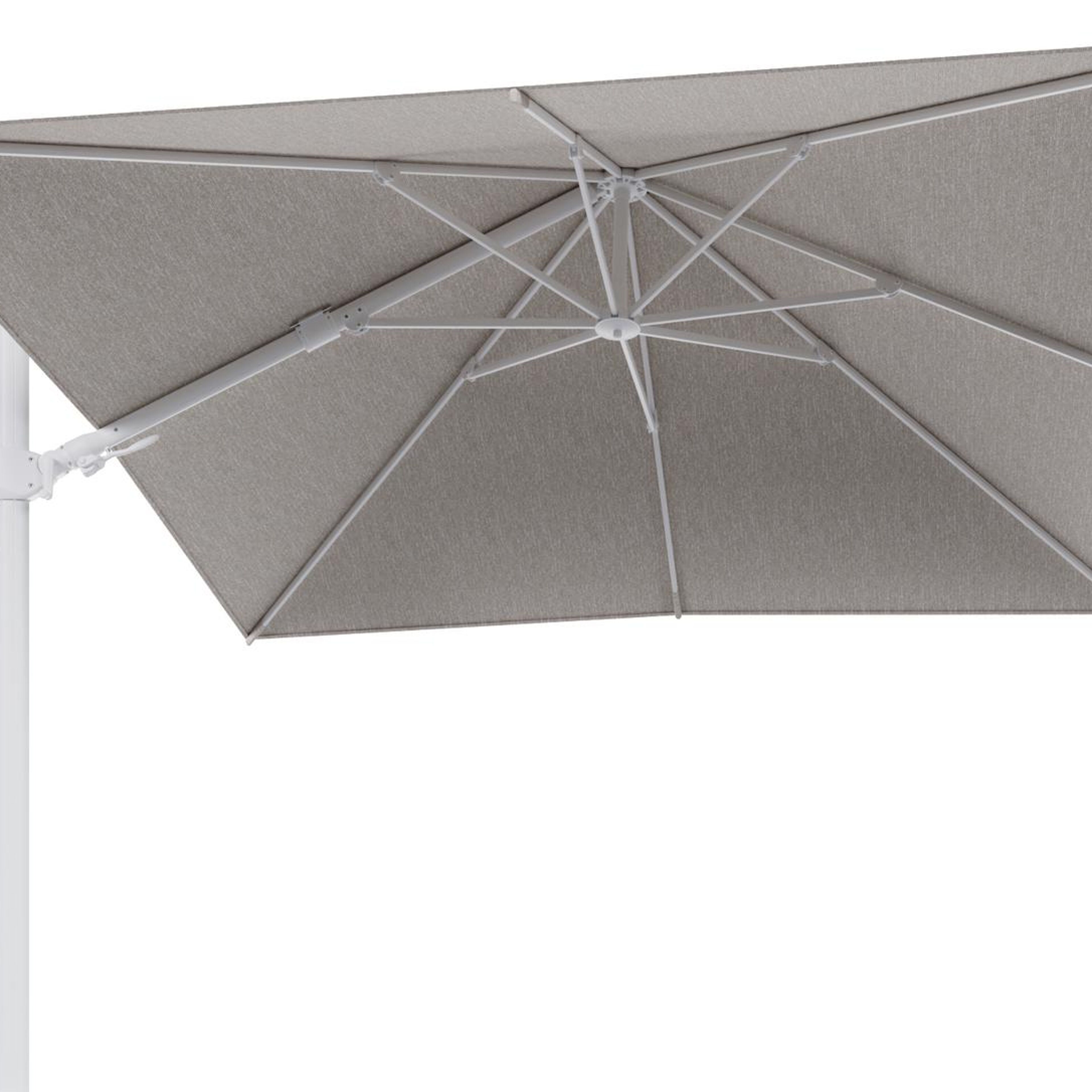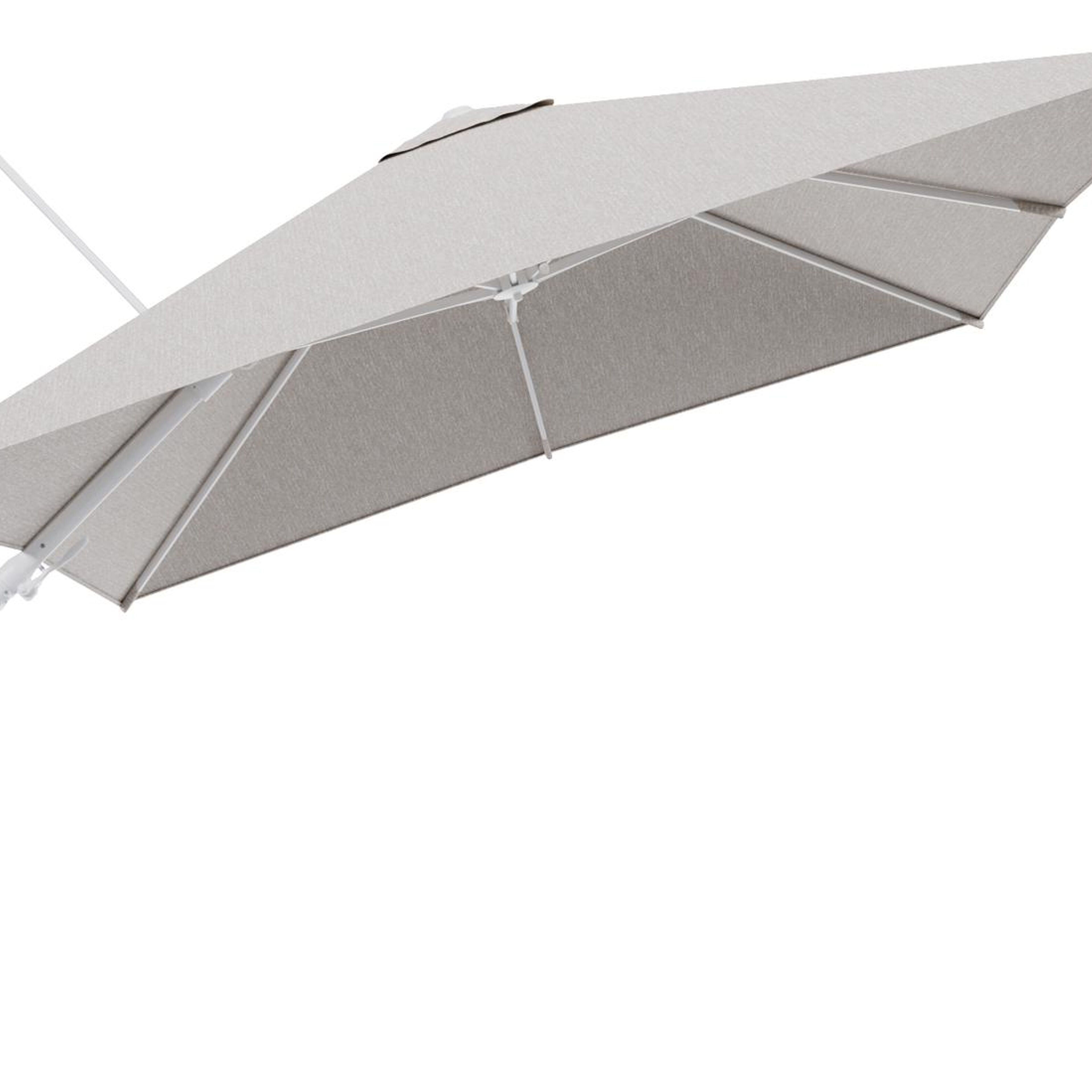 Parasol pendant Rufina avec fonction tilt en aluminium blanc et toile de parasol en All Weather Sunbrella® Luxe Tundra Sand - Lg.1 300 x Lg.2 300 cm (sans pied de parasol | Exterioo mobilier de jardin