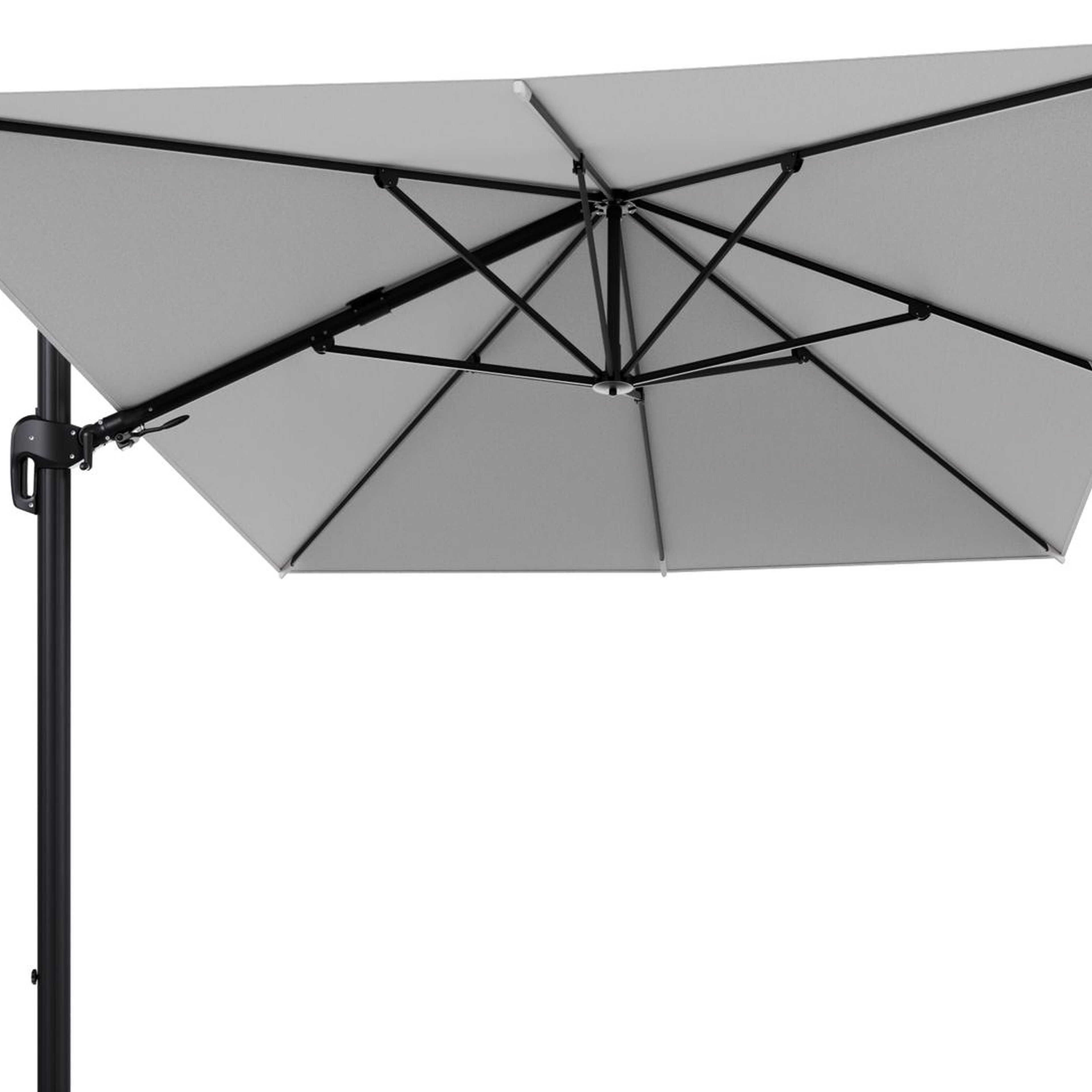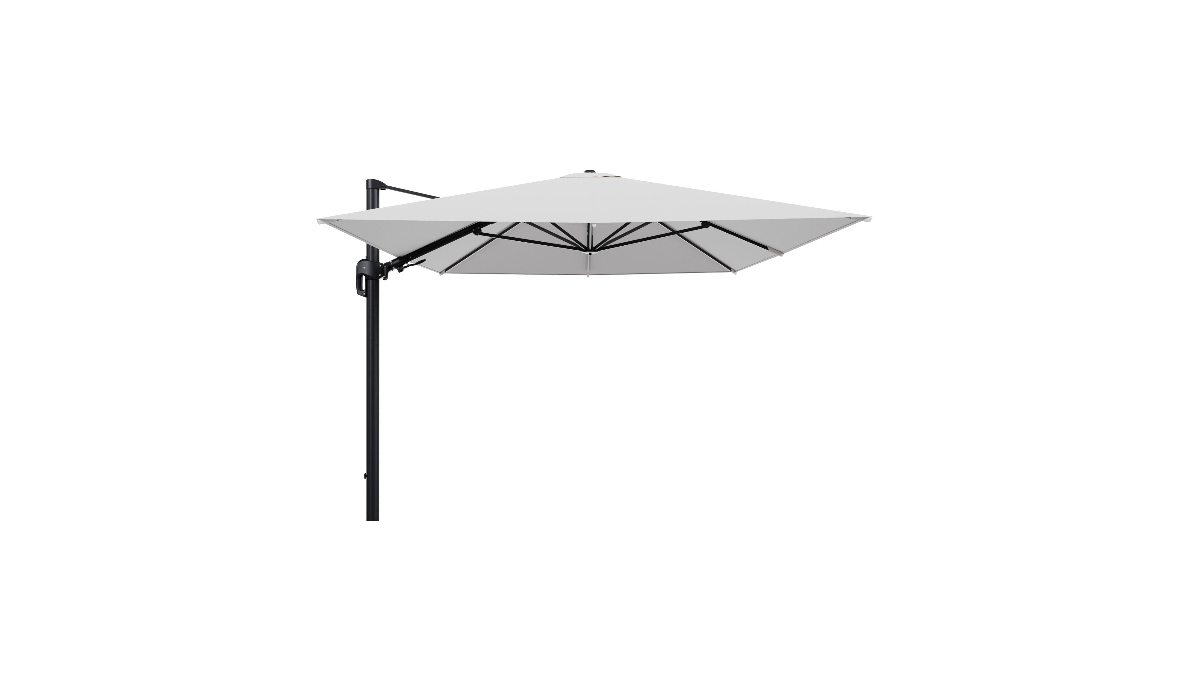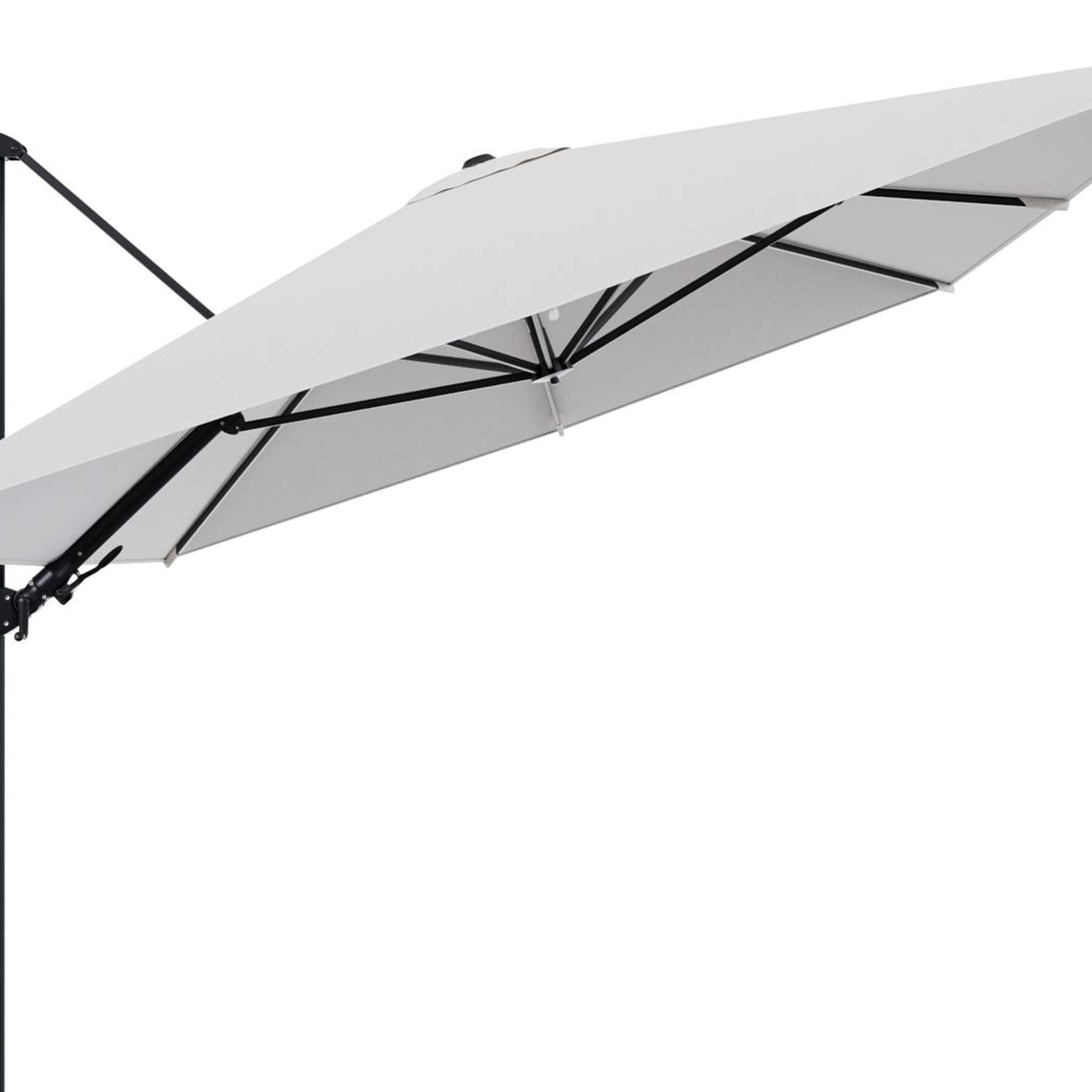Parasol pendant Rufina avec fonction tilt en aluminium noir et toile de parasol en All Weather Solica Ego Birch - Lg.1 400 x Lg.2 300 cm (sans pied de parasol | Exterioo mobilier de jardin