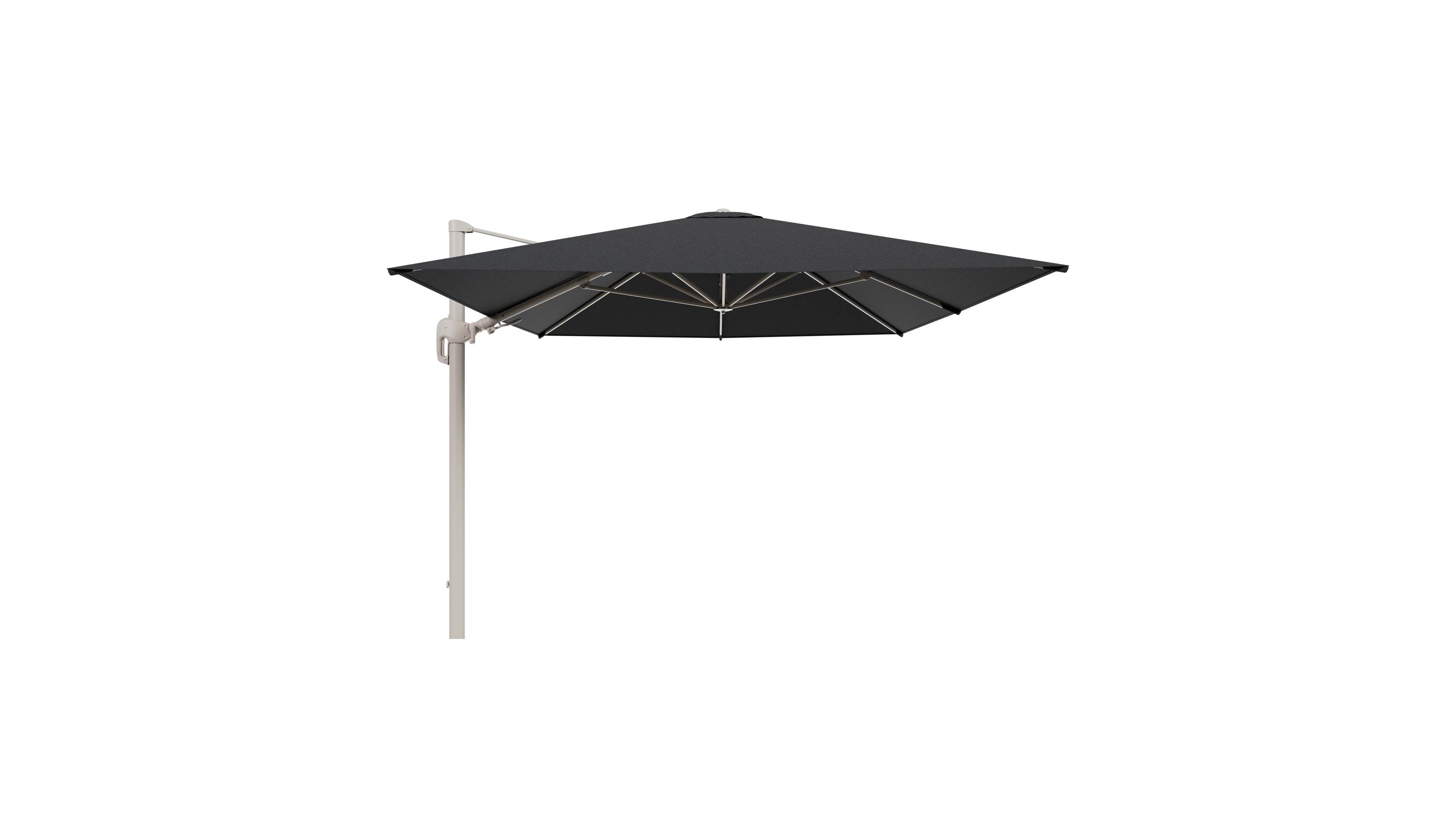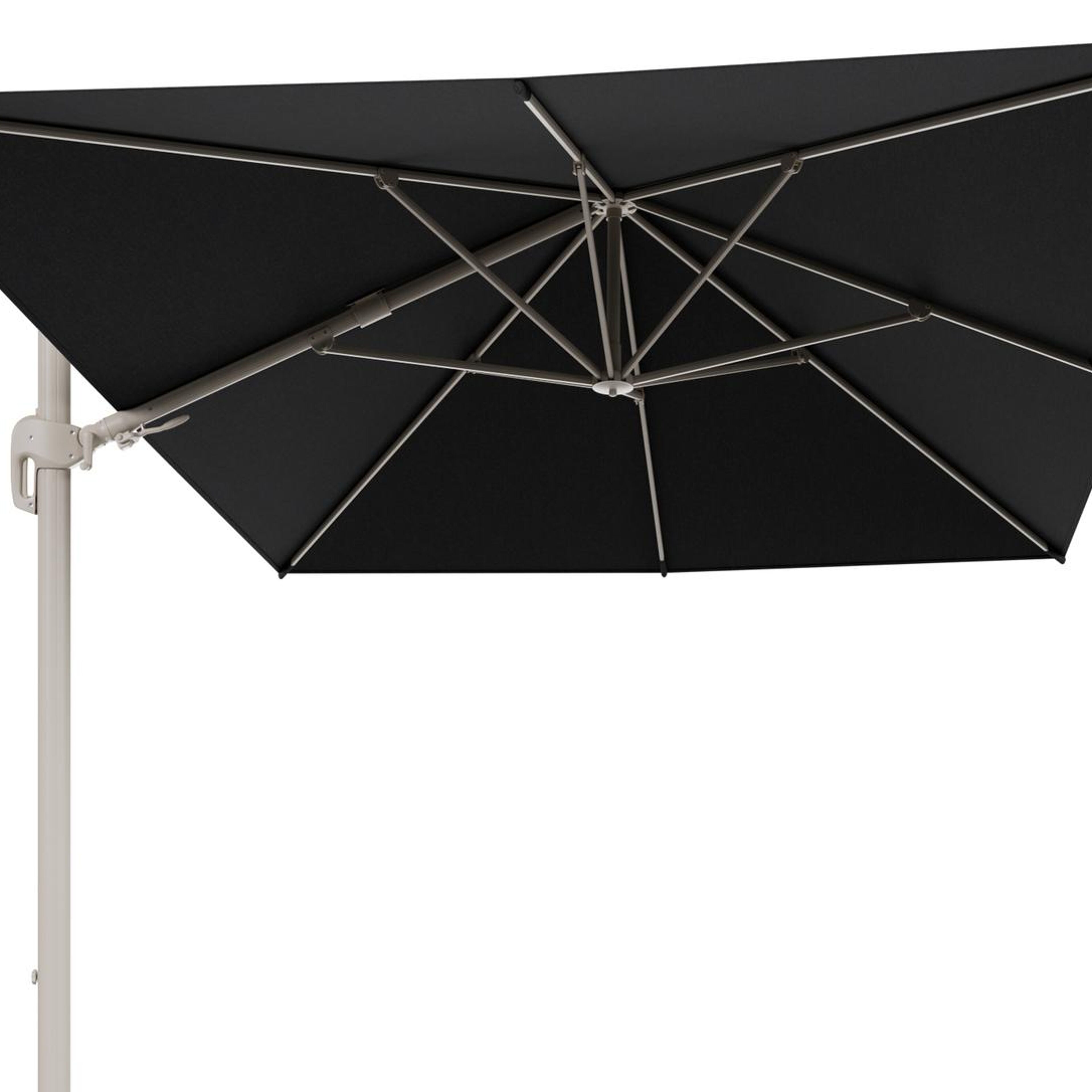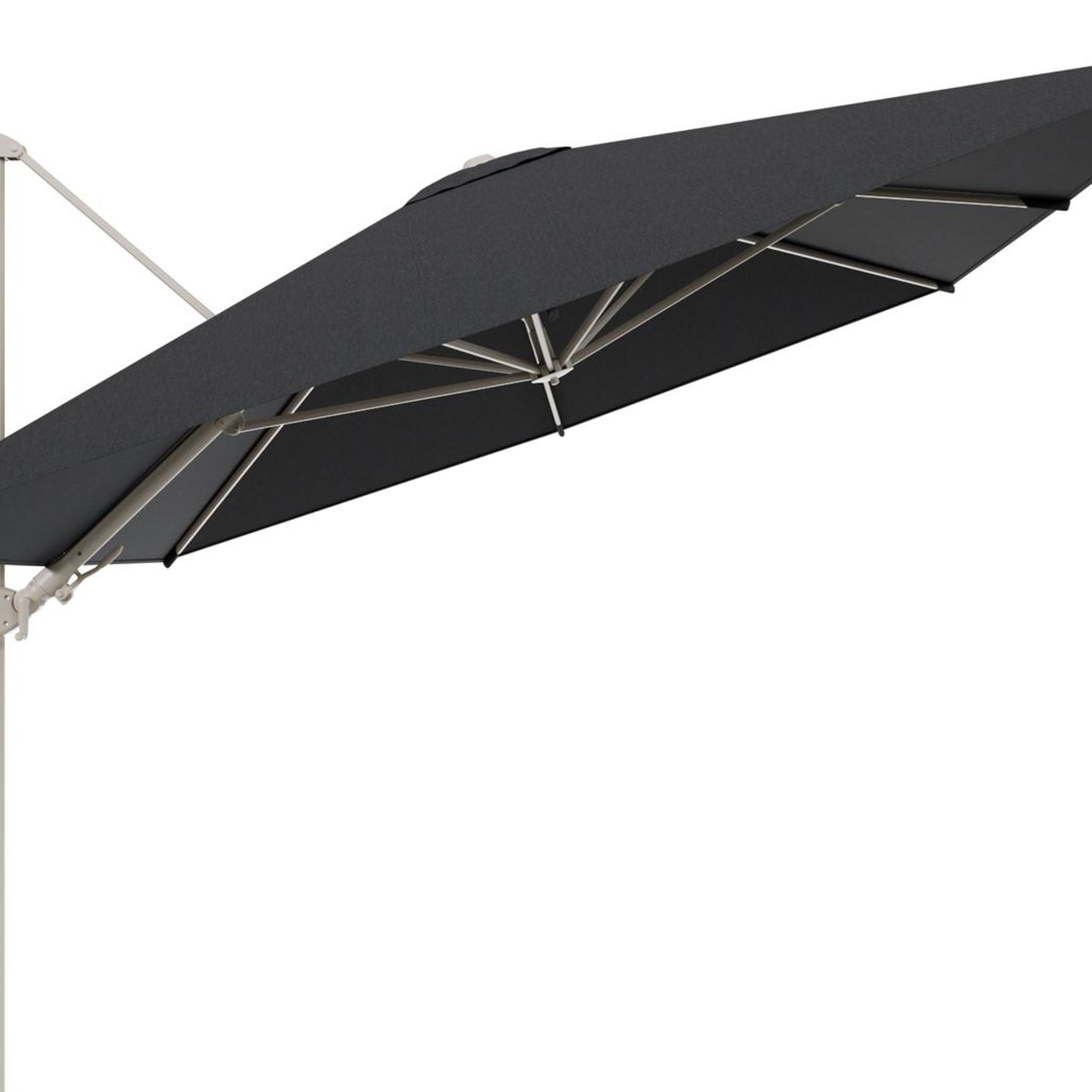 Parasol pendant Rufina avec fonction tilt en aluminium beige et toile de parasol en All Weather Sunbrella® Luxe Chartres Sooty - Lg.1 400 x Lg.2 300 cm (sans pied de parasol | Exterioo mobilier de jardin